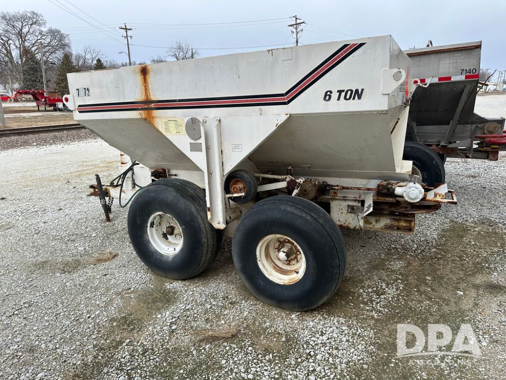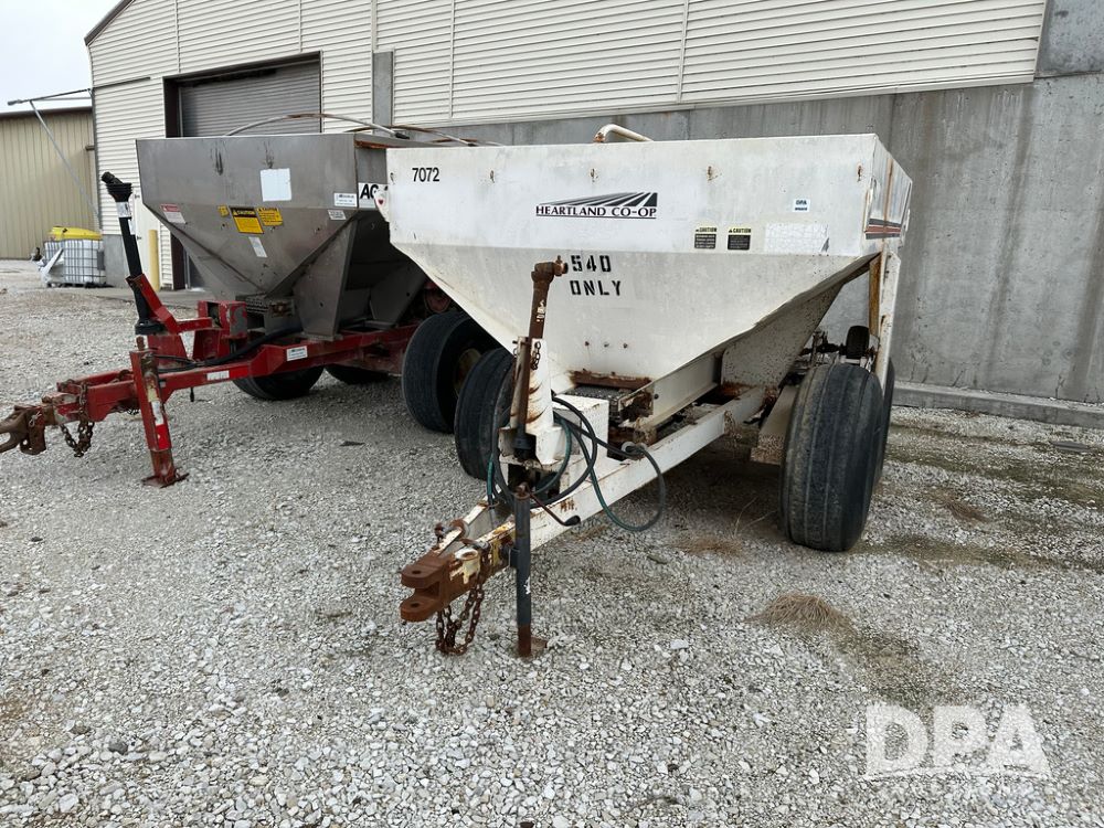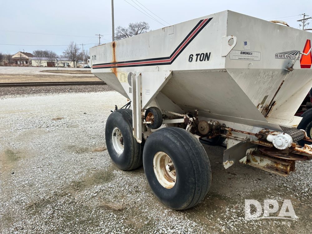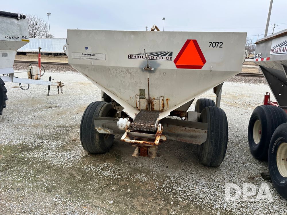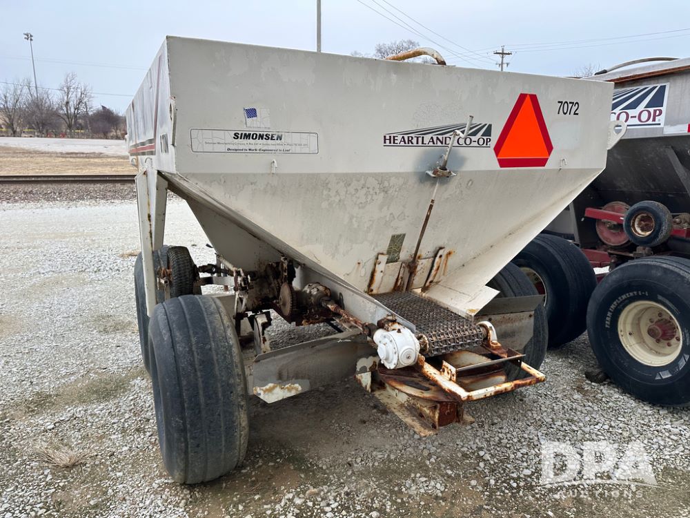 Simonsen Spreader Buggy (DPA5029 Unit 7072), 6 ton stainless steel spreader buggy, 2 speed ground drive web chain, single PTO drive rear spinner pan, 16.5L-16.1 tires.