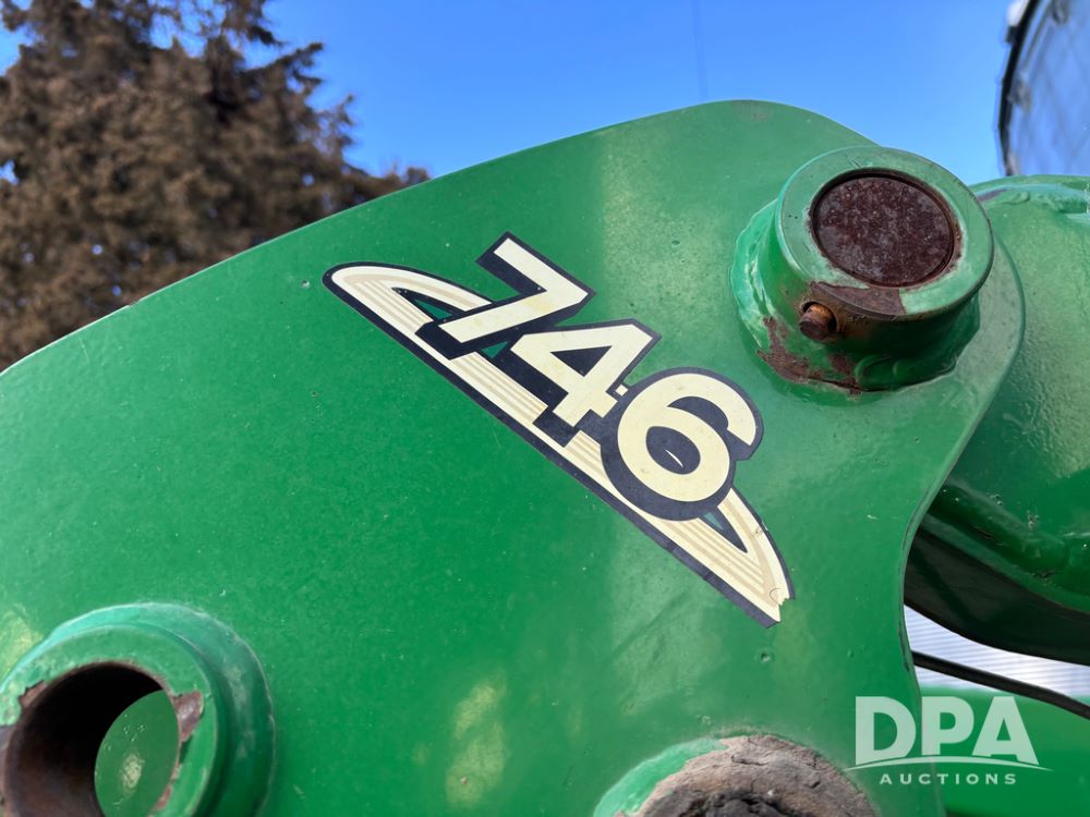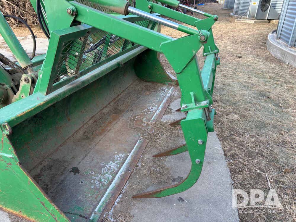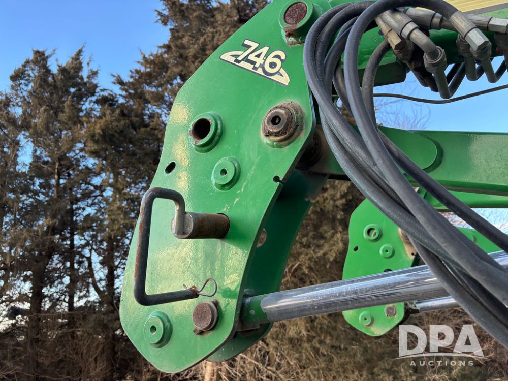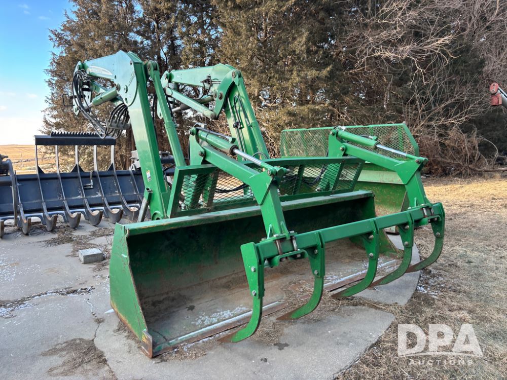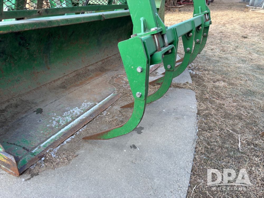 John Deere 746 Loader (DR13088), front mount hydraulic loader, 9' hydraulic grapple bucket, 8' commodity bucket, has mounts for John Deere 7930 tractor.