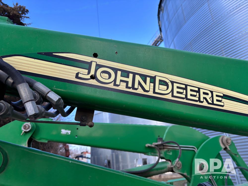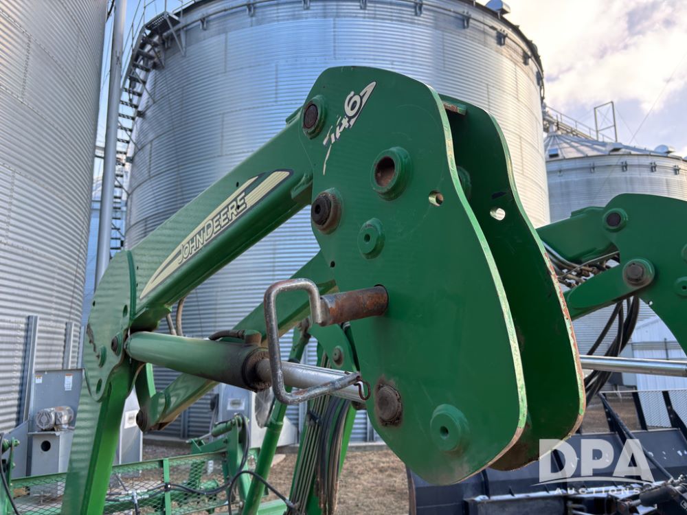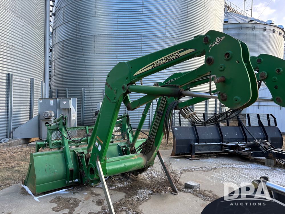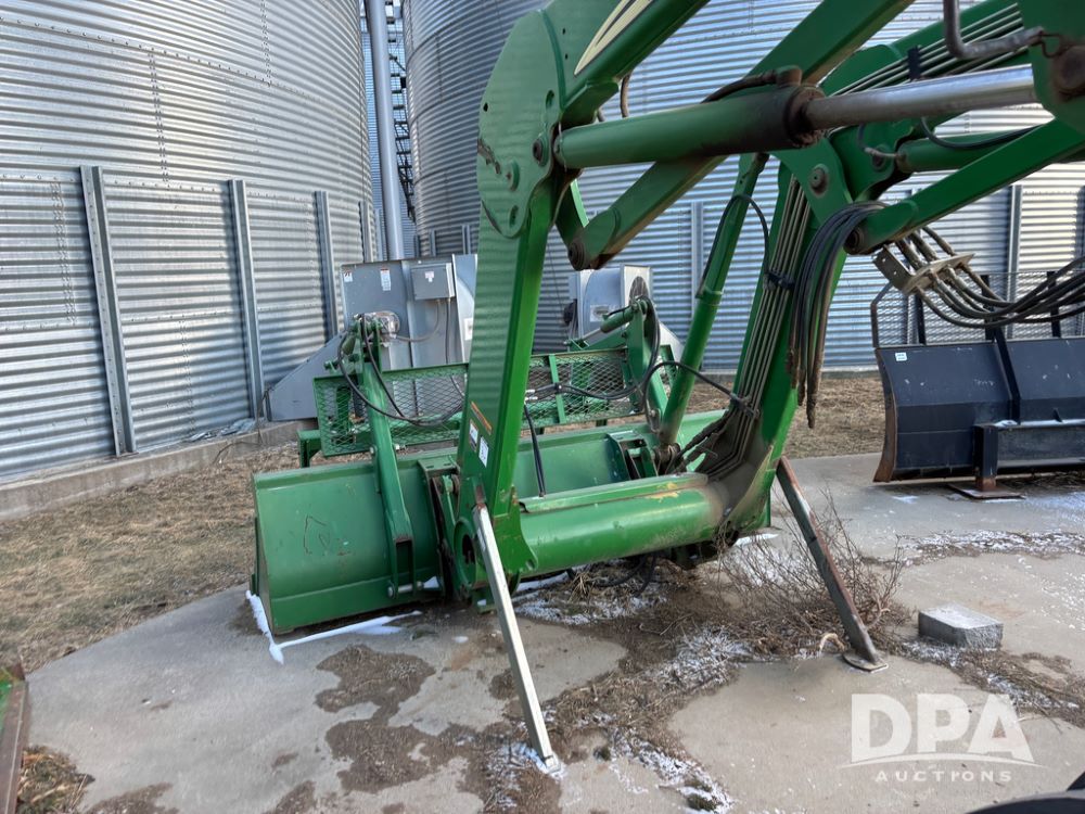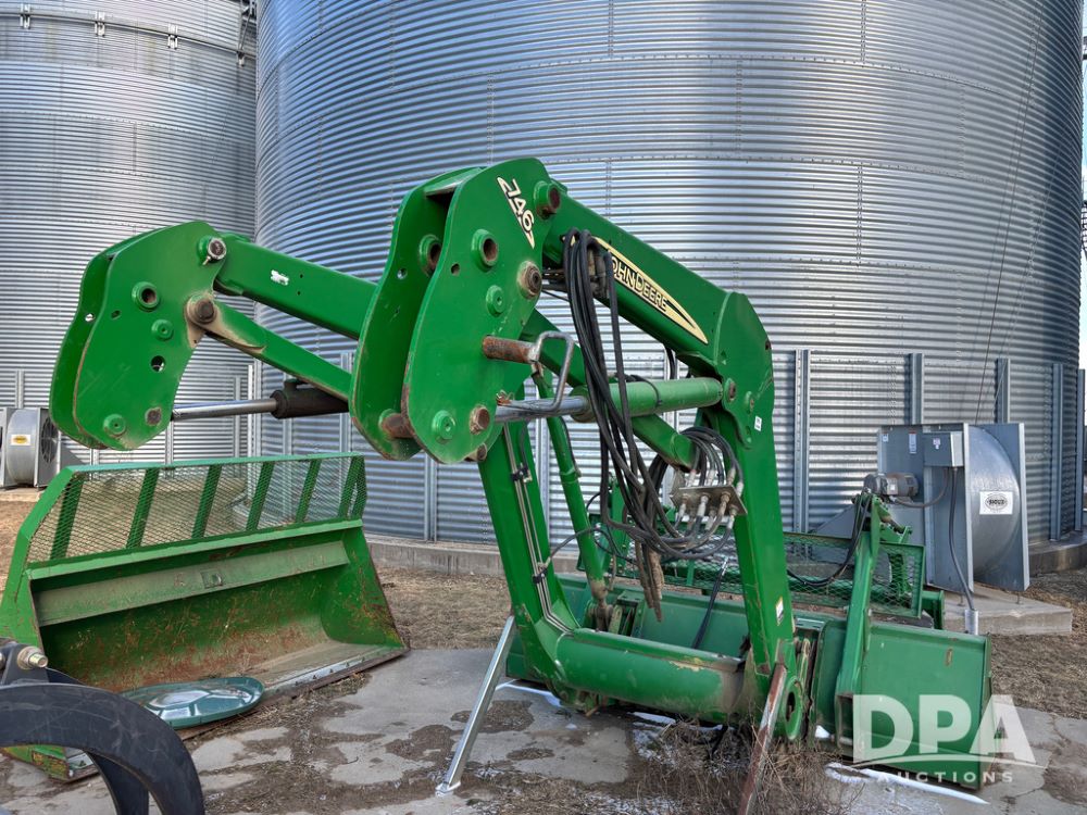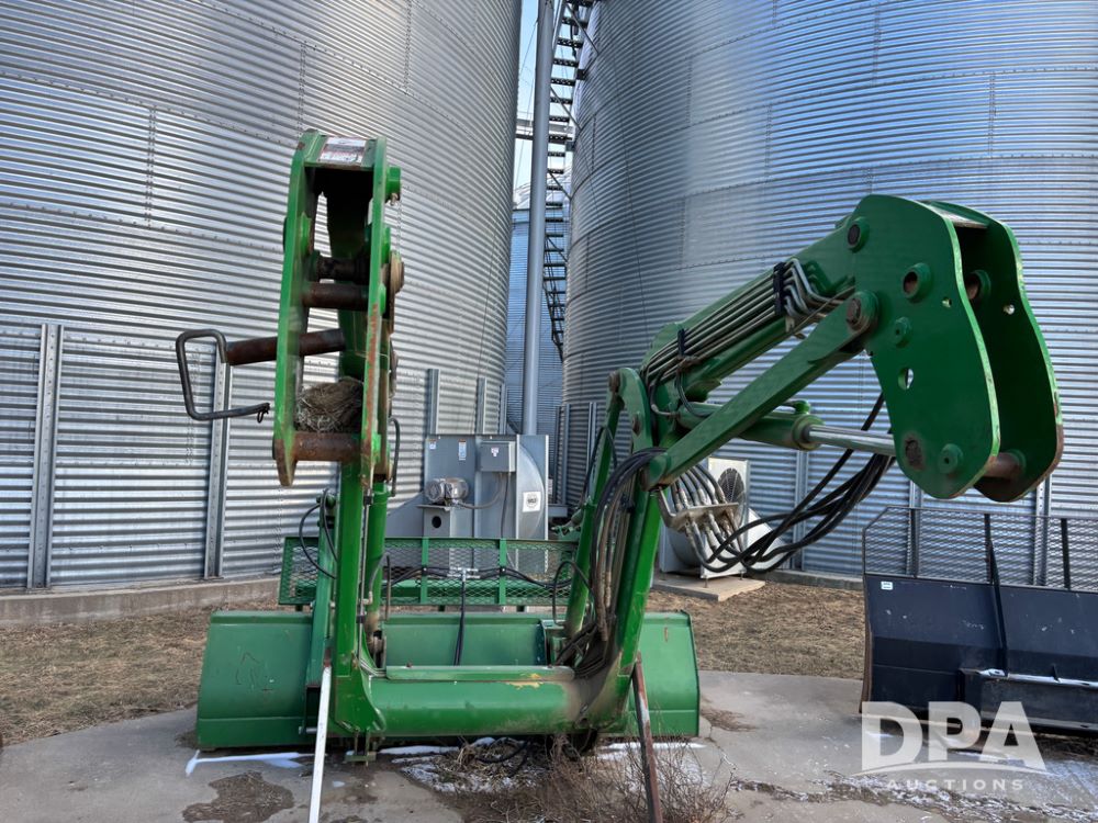 John Deere 746 Loader (DR13088), front mount hydraulic loader, 9' hydraulic grapple bucket, 8' commodity bucket, has mounts for John Deere 7930 tractor.