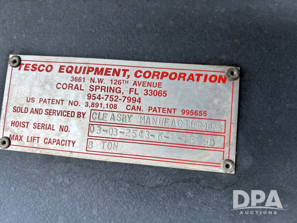 Tesco Hydraulic Truck Bed (DR13101), 18' steel deck hydraulic truck bed, 8 ton capacity, hydraulic tilt and scissor, dual rear hydraulic outriggers, hand control spool valve, hydraulic pump and reservoir.