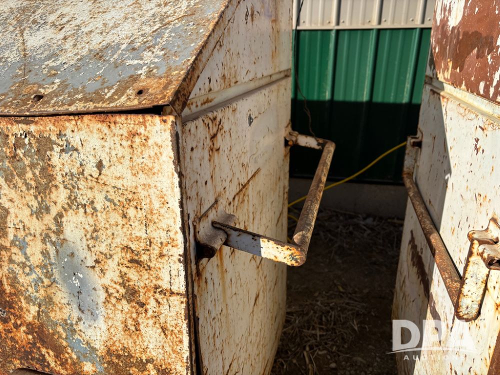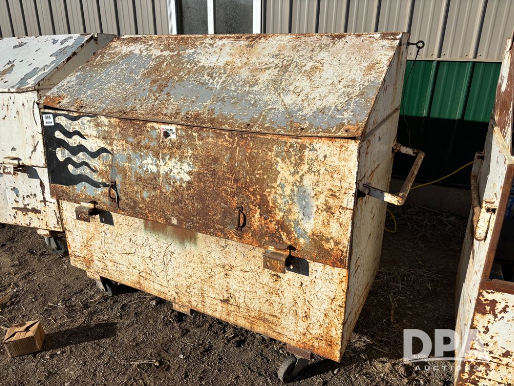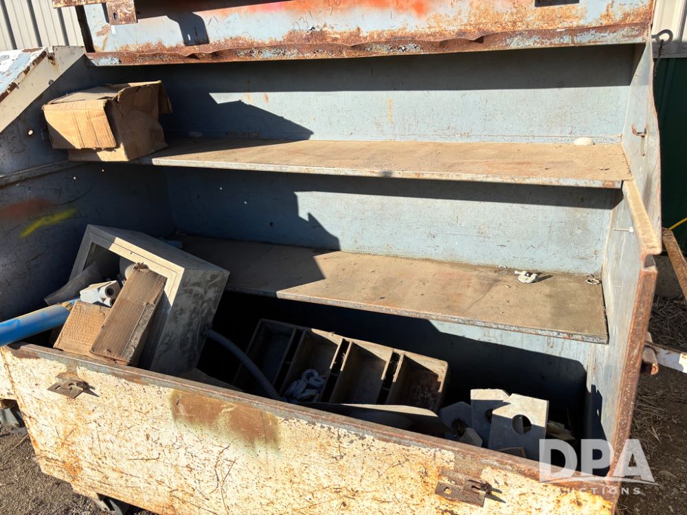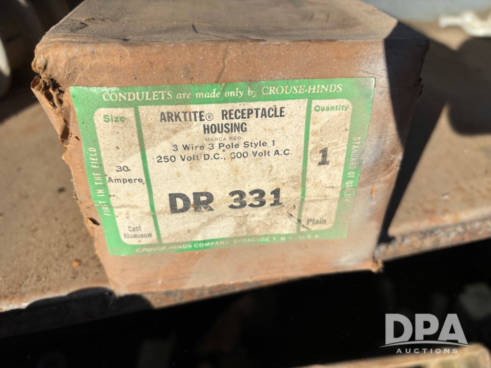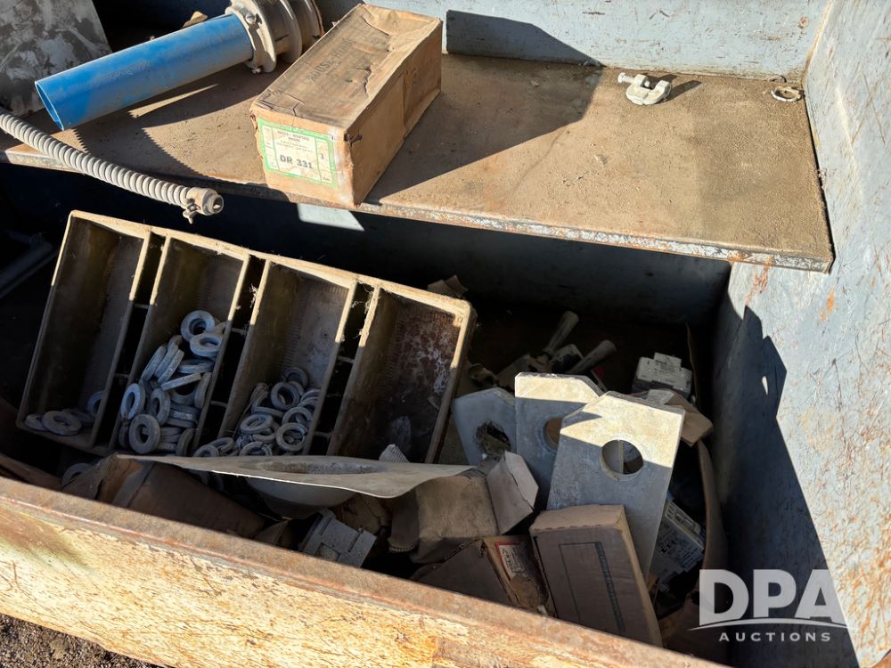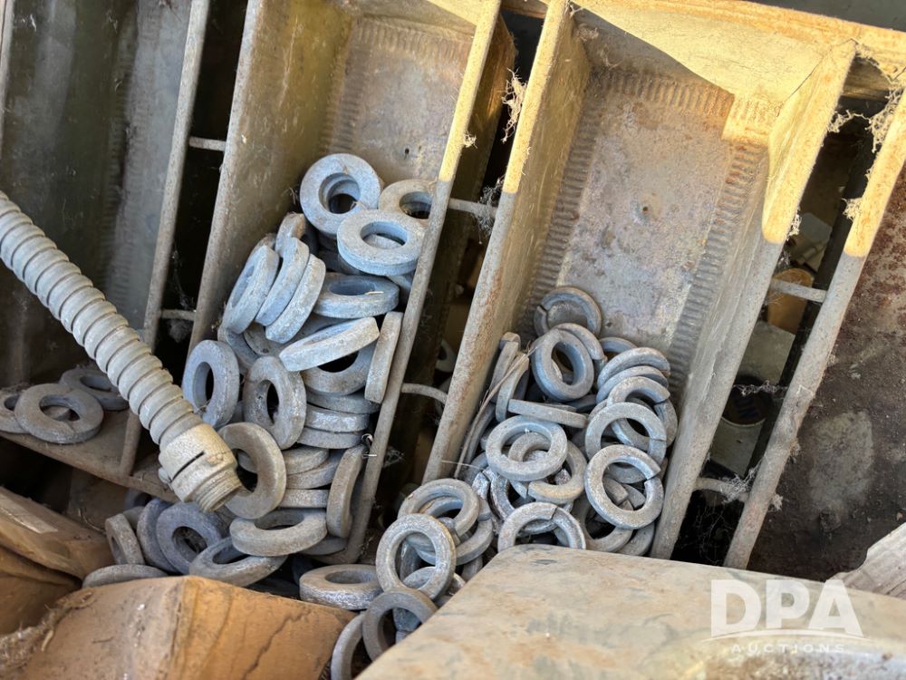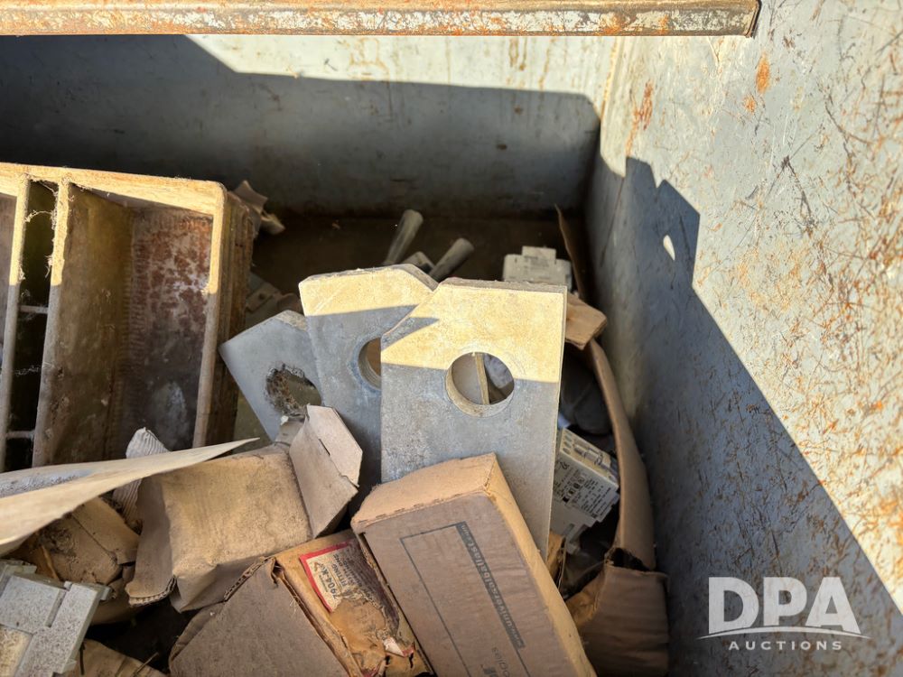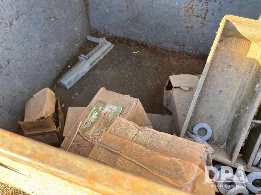 Job Box Of New Parts (DR13119), enclosed caster wheel job box full of electrical equipment, receptacle housings and galvanized washers and brackets.