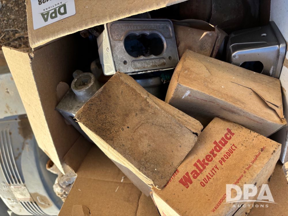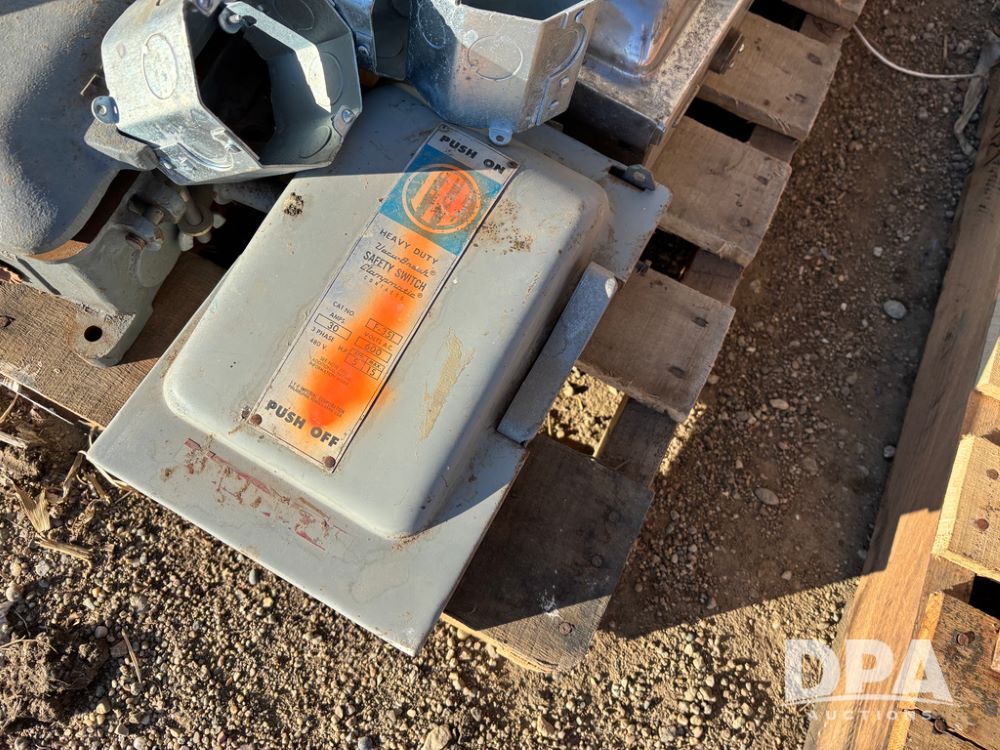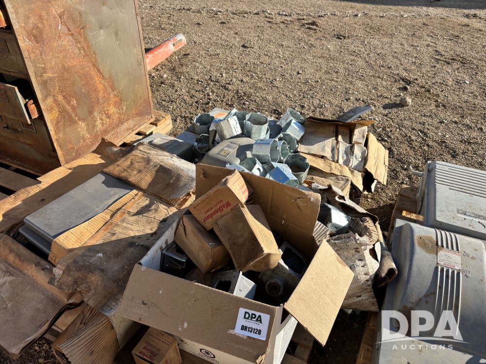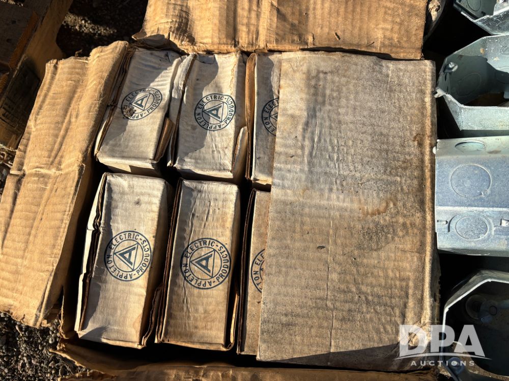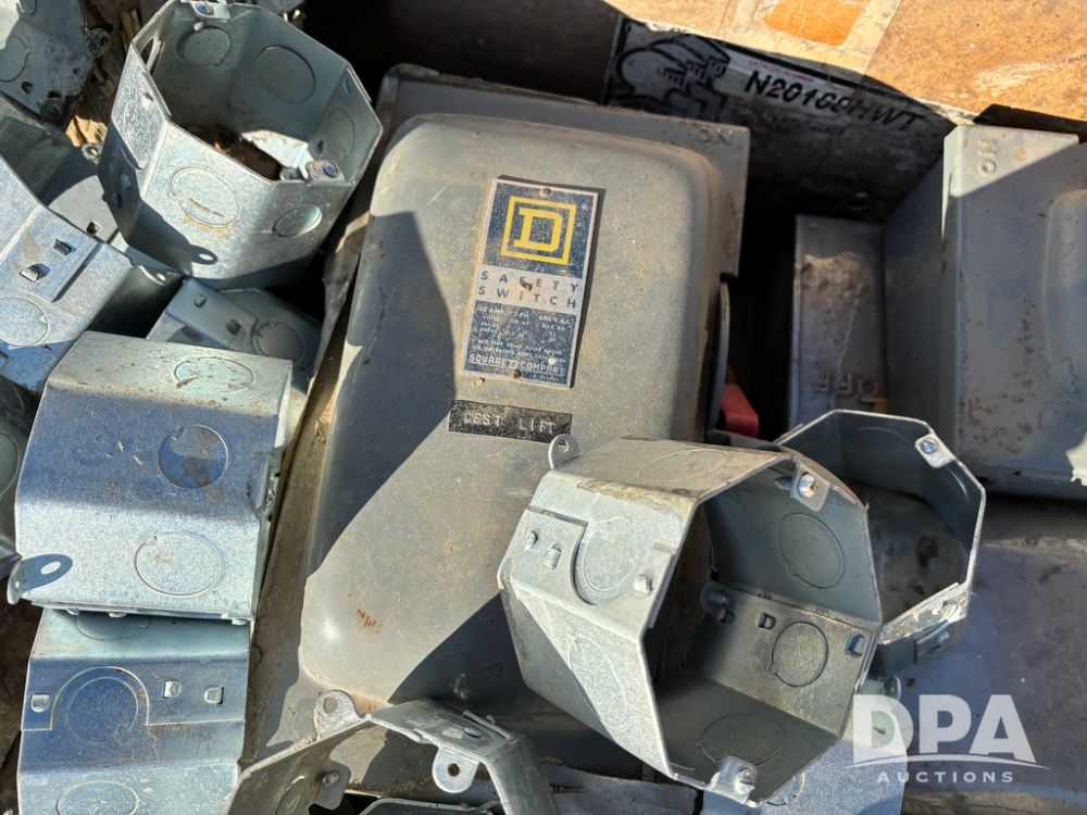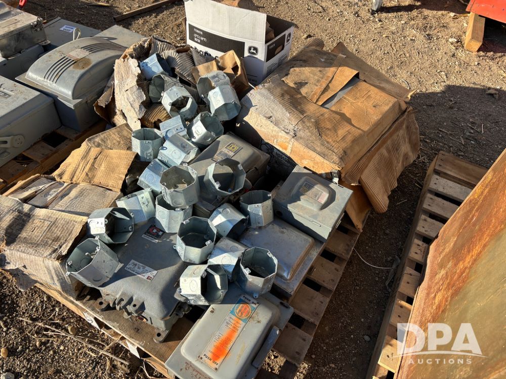 Pallet of Electrical Parts (DR13128), pallet lot has new and used starter and electrical boxes, steel octagon wall boxes.