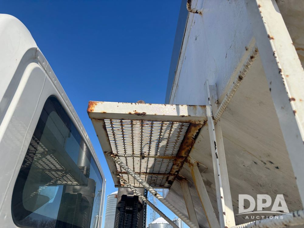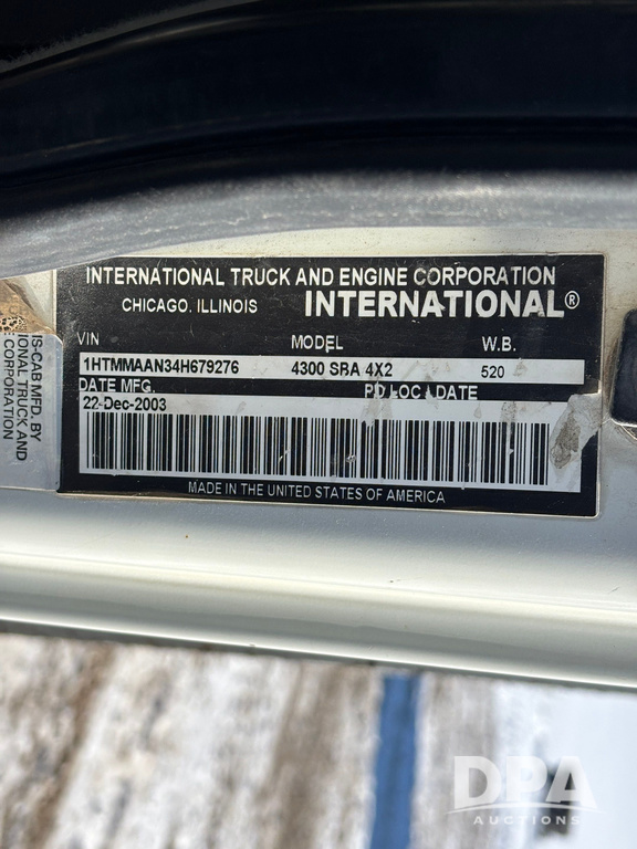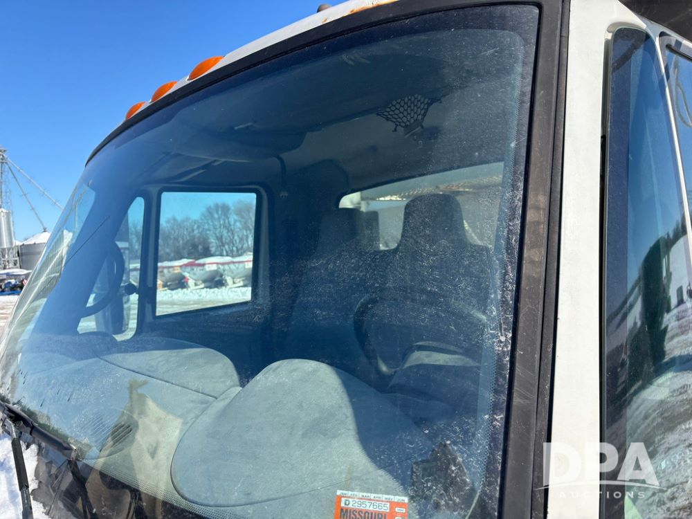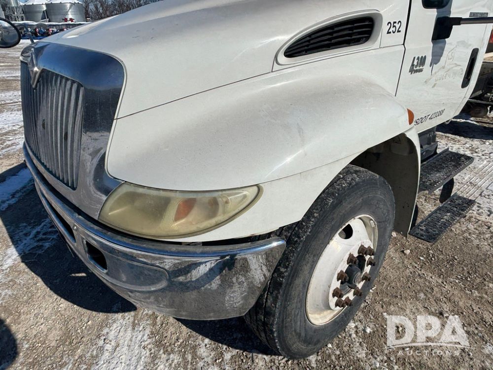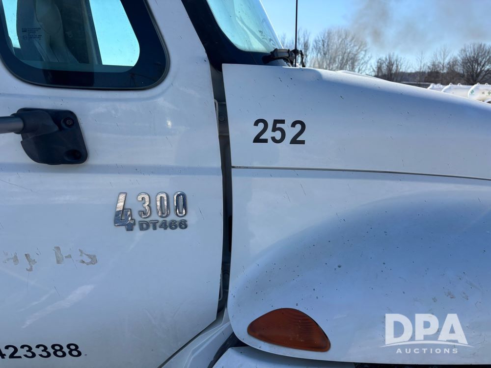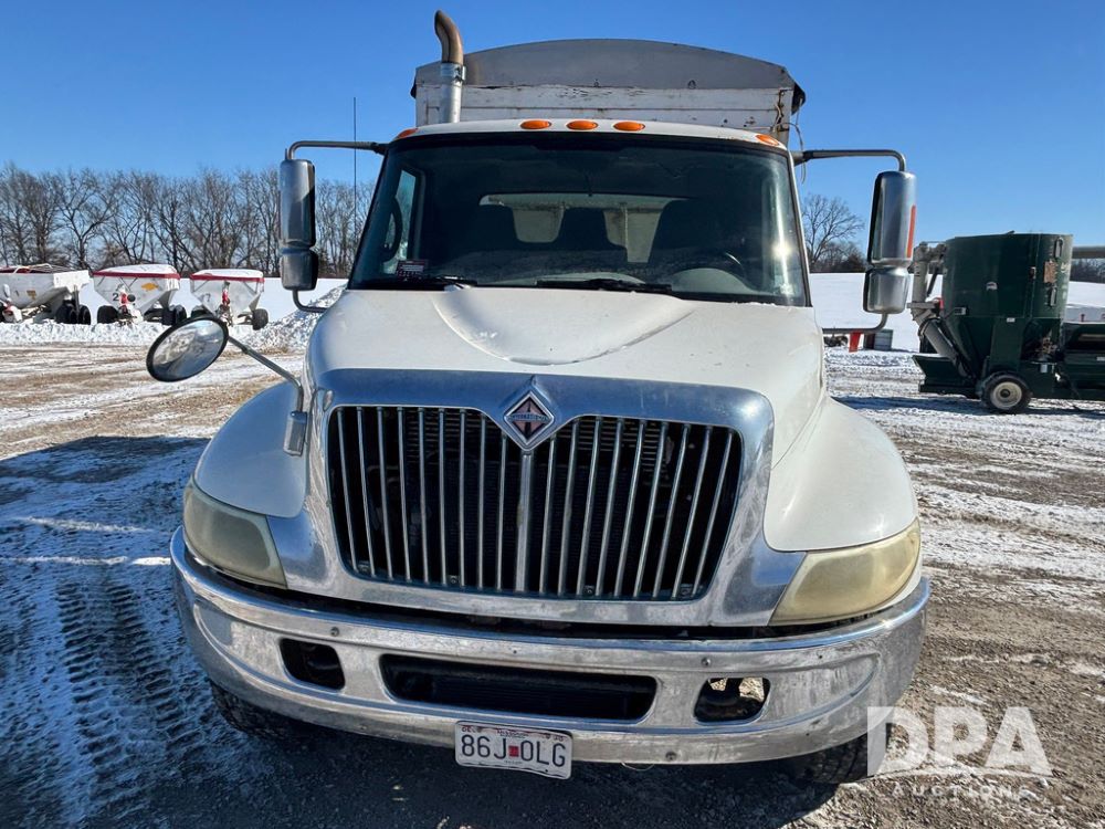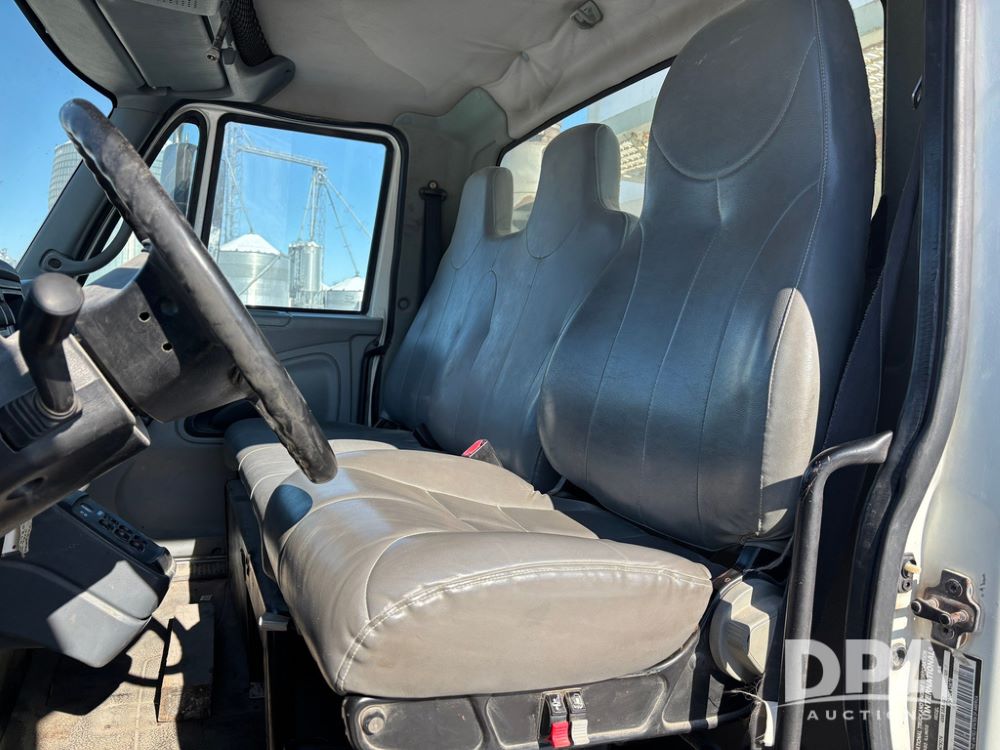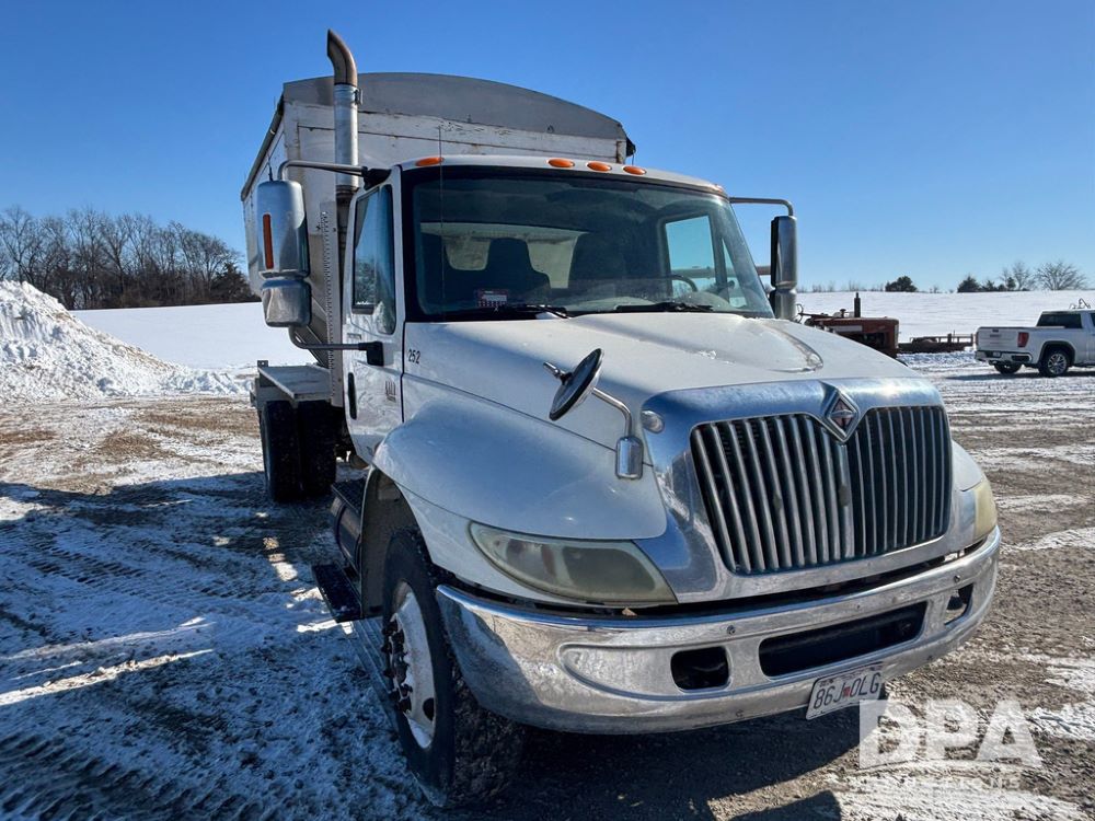 2004 IHC 4300 Dry Tender Truck (GP12639, Unit 252), DT466 diesel engine, Allison automatic transmission, air conditioning, heat, Am/Fm radio, cruise control, single axle, spring suspension, Willmar 10 ton dry tender box, rear discharge auger, all hydraulic, roll over tarp, 295/75R22.5 tires, shows 461,393 miles.