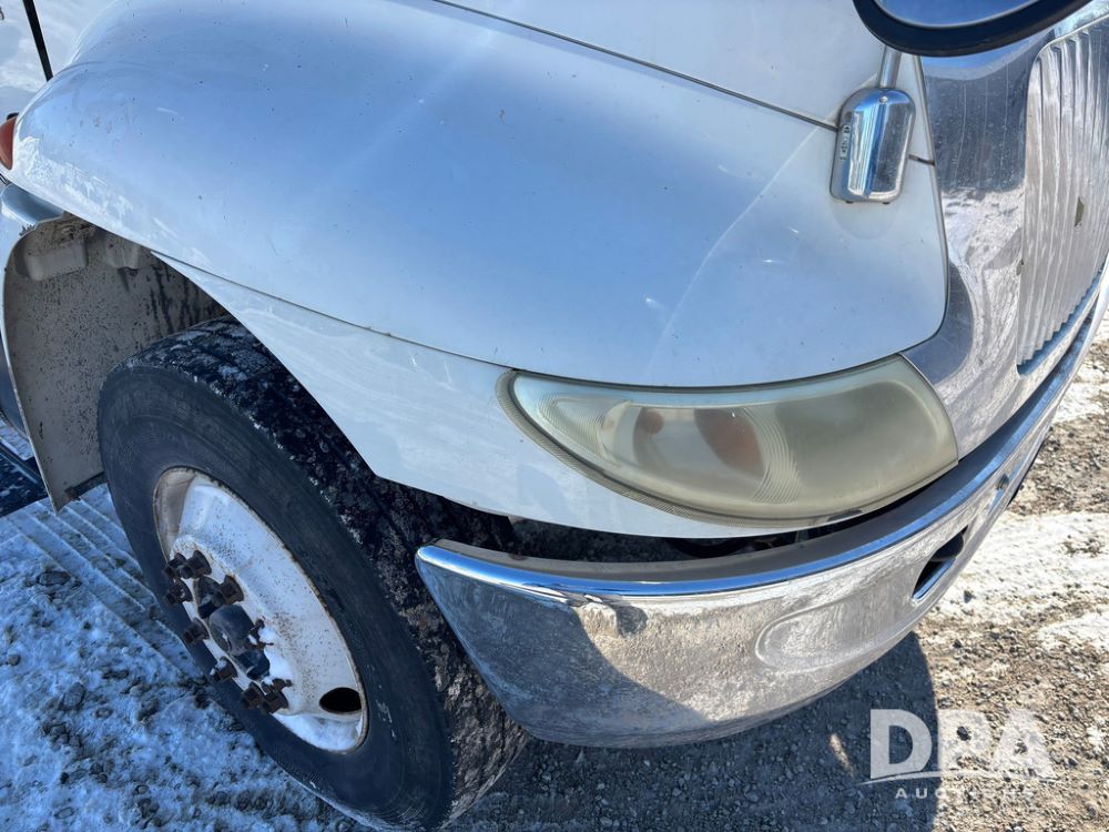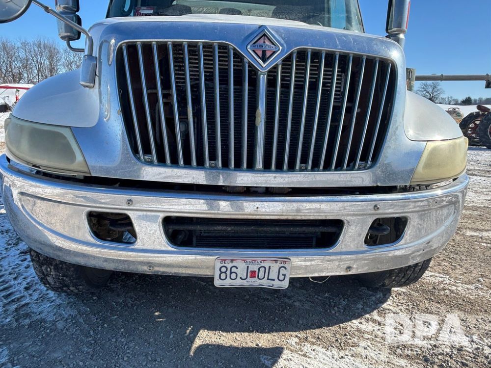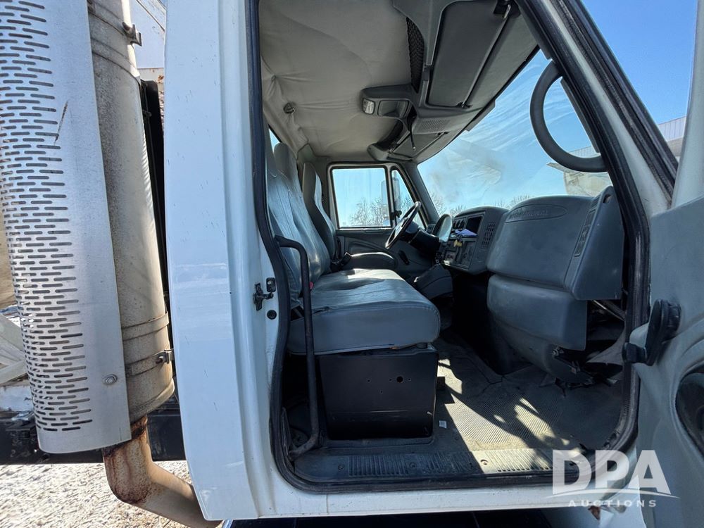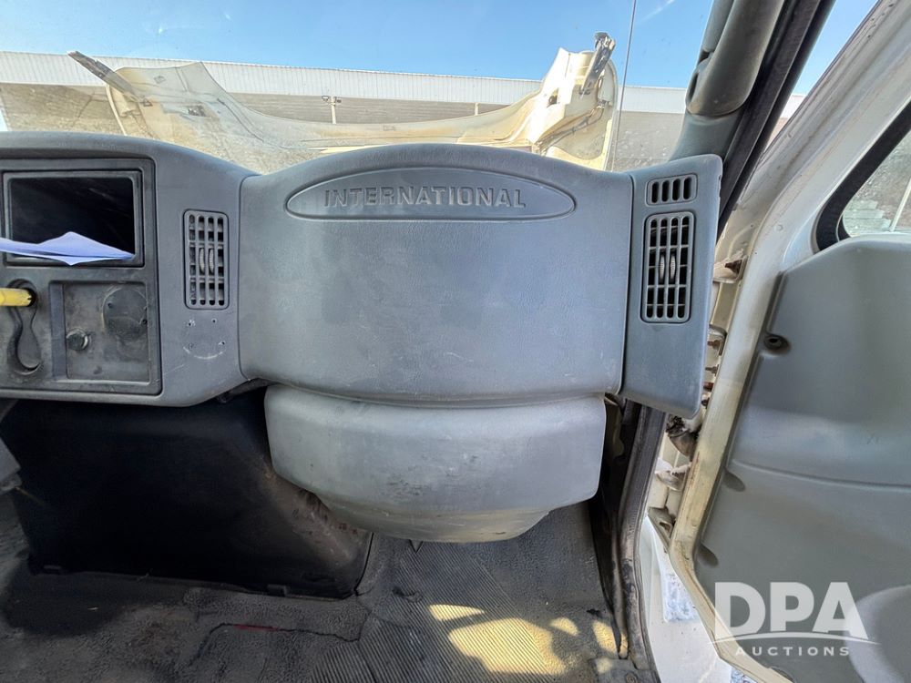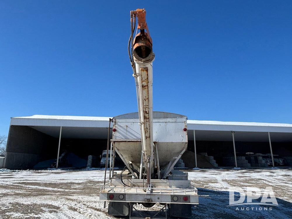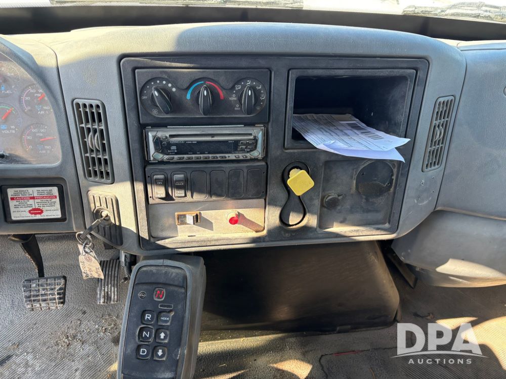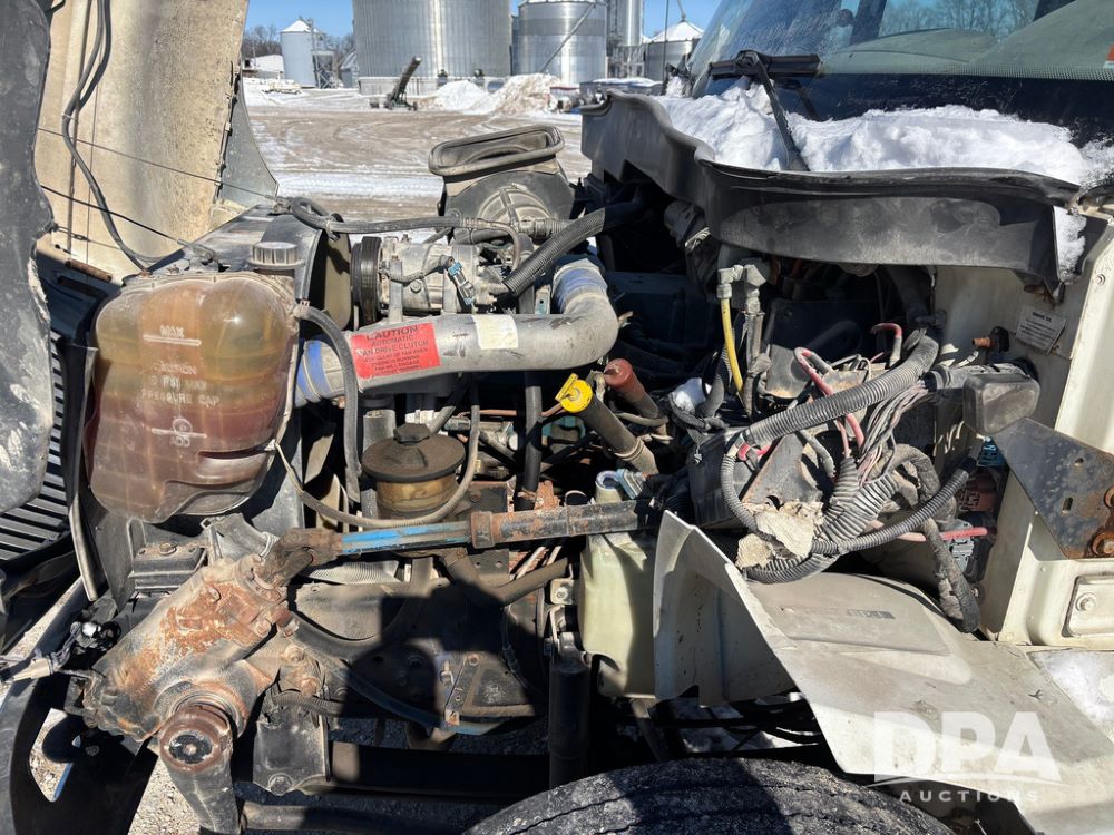 2004 IHC 4300 Dry Tender Truck (GP12639, Unit 252), DT466 diesel engine, Allison automatic transmission, air conditioning, heat, Am/Fm radio, cruise control, single axle, spring suspension, Willmar 10 ton dry tender box, rear discharge auger, all hydraulic, roll over tarp, 295/75R22.5 tires, shows 461,393 miles.