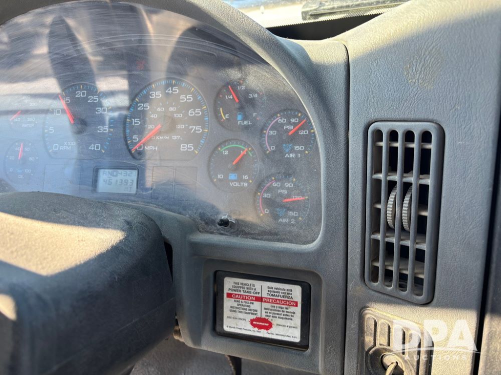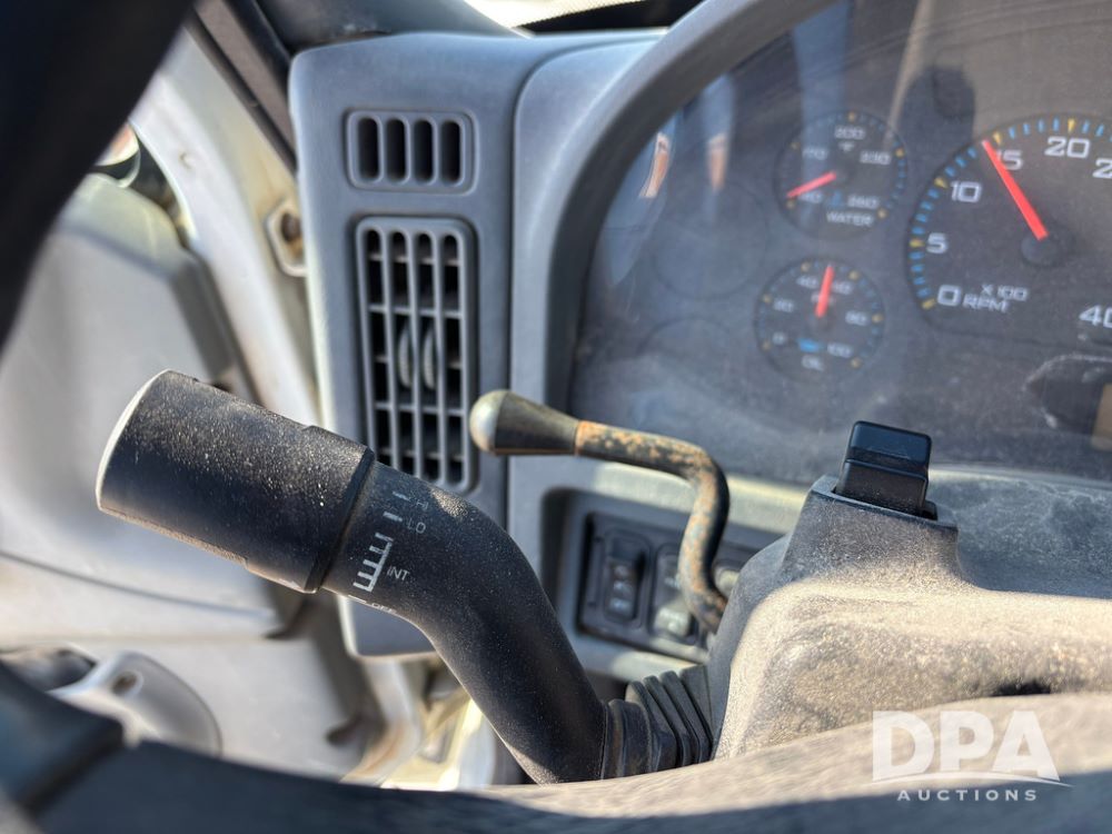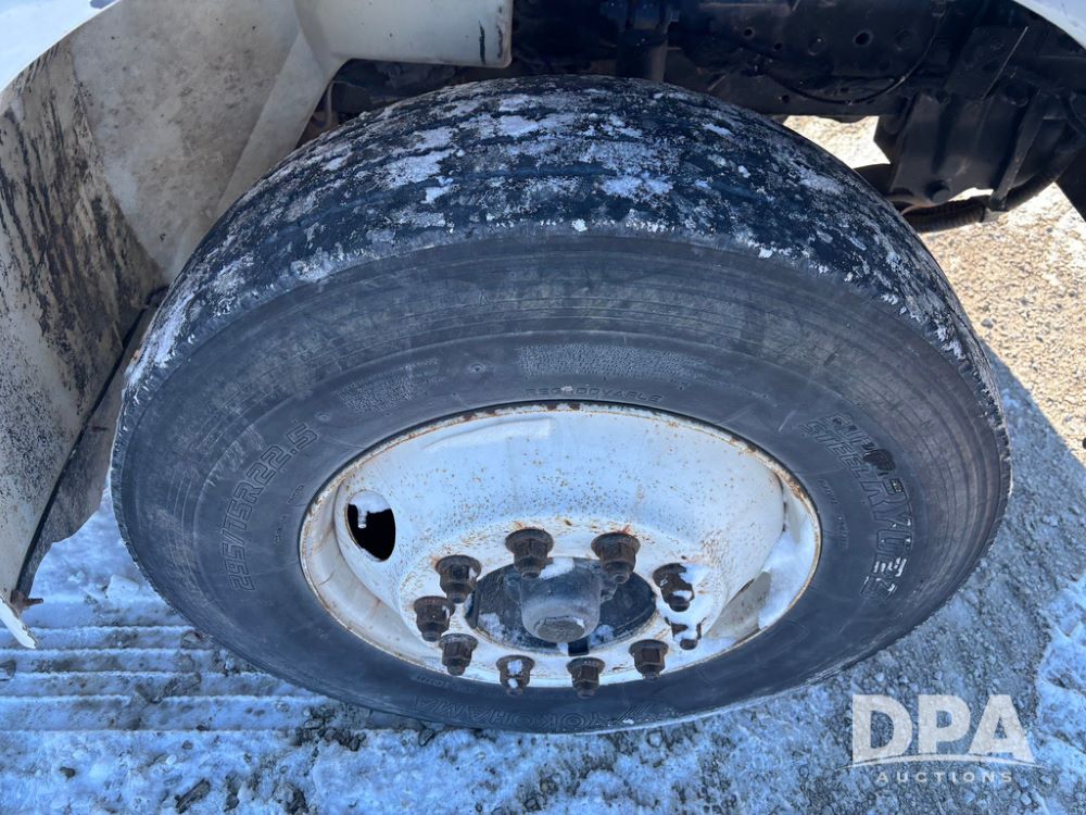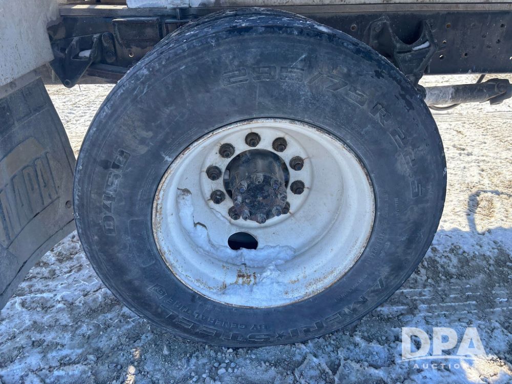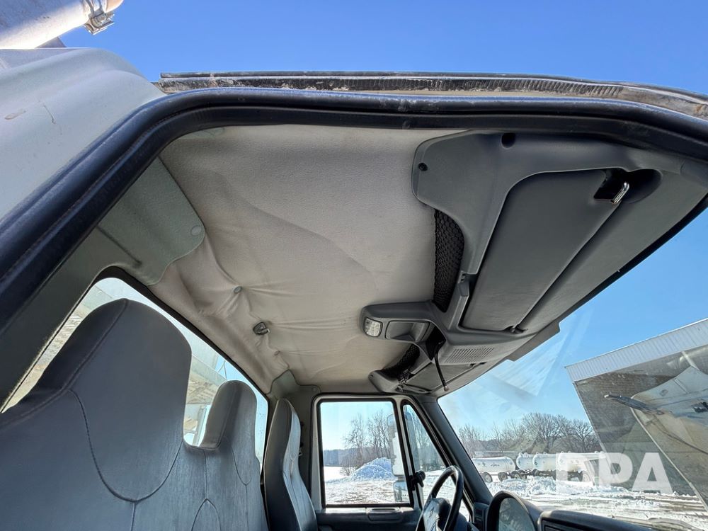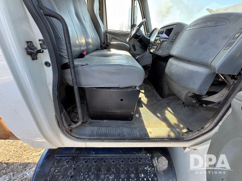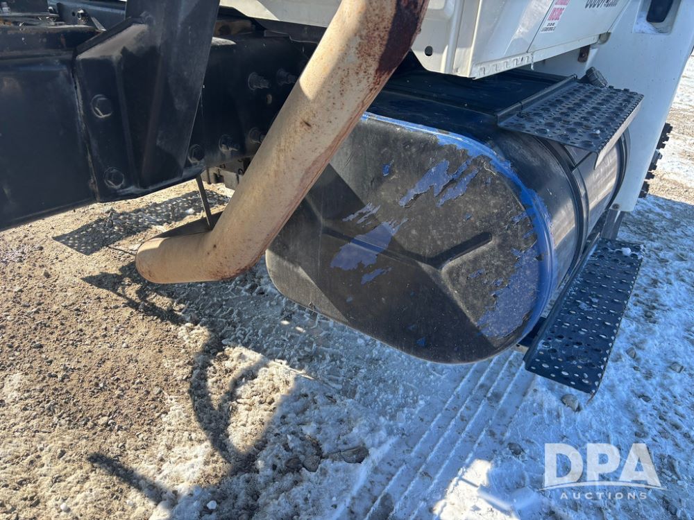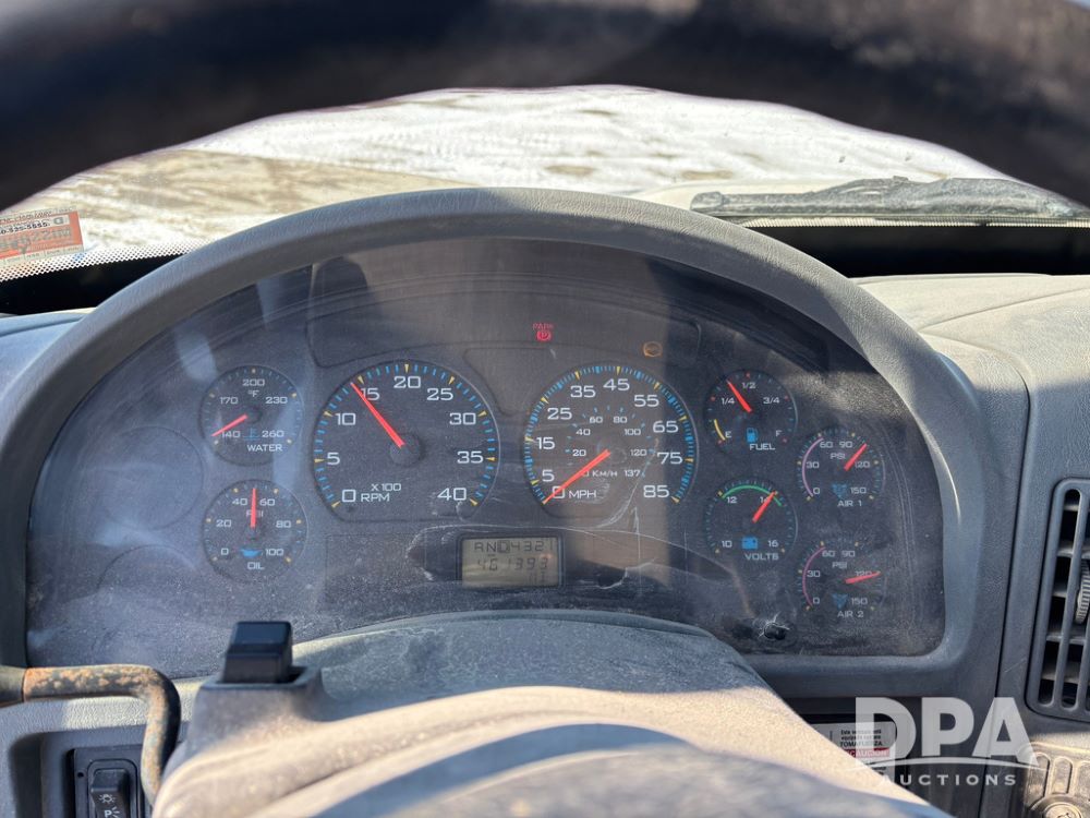 2004 IHC 4300 Dry Tender Truck (GP12639, Unit 252), DT466 diesel engine, Allison automatic transmission, air conditioning, heat, Am/Fm radio, cruise control, single axle, spring suspension, Willmar 10 ton dry tender box, rear discharge auger, all hydraulic, roll over tarp, 295/75R22.5 tires, shows 461,393 miles.