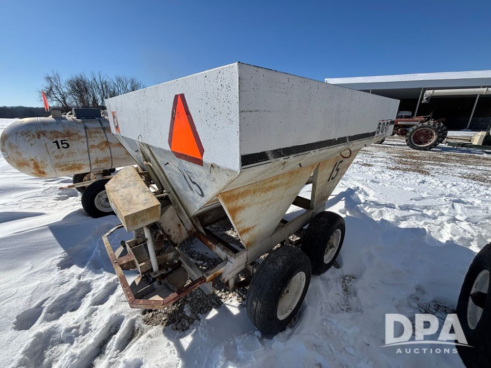 Willmar 500 Dry Spreader (GP12651, Unit 15), Willmar 500 dry spreader, twin spinner, PTO, tandem axle, 11L-15 flotation tires.