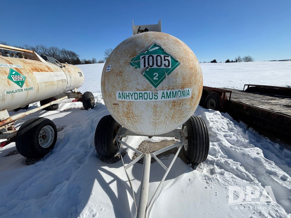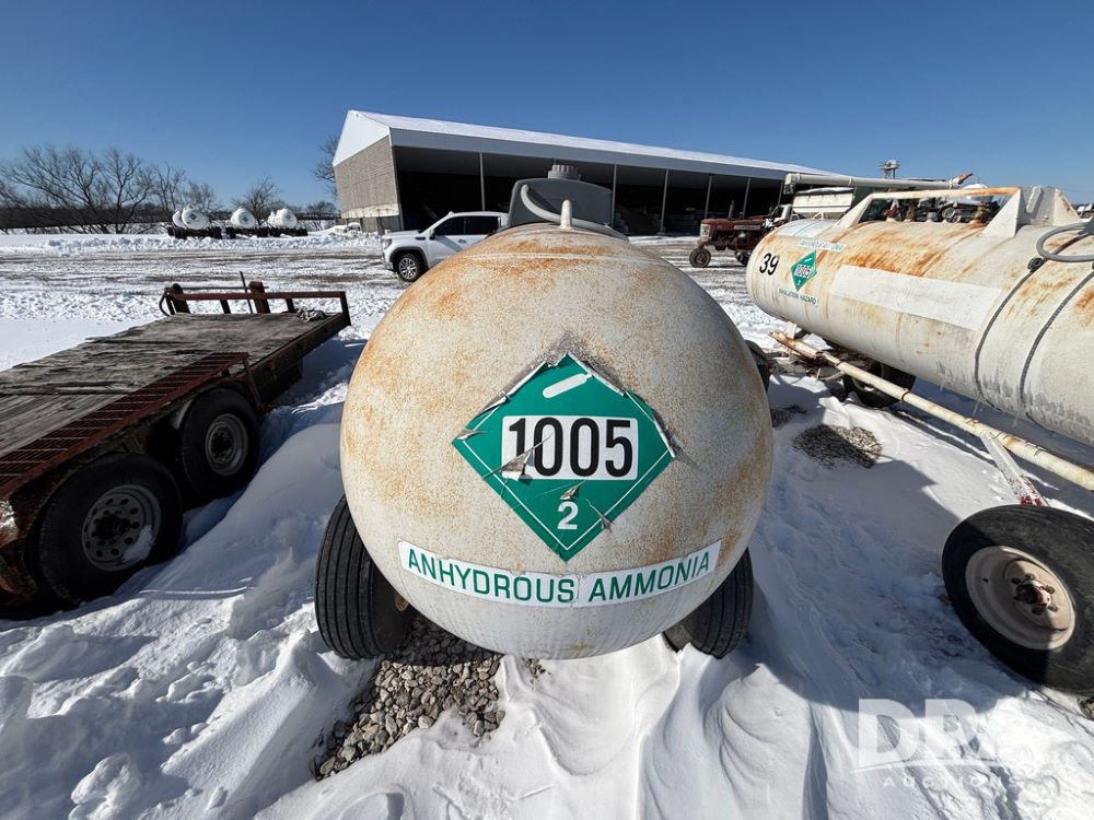 NH3 Nurse Tank (GP12654, Unit 7), 1000 gallon NH3 nurse tank, center fill, poly water tank, 5th wheel running gear, 11L-15 flotation tires.