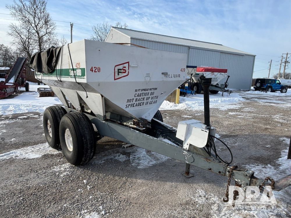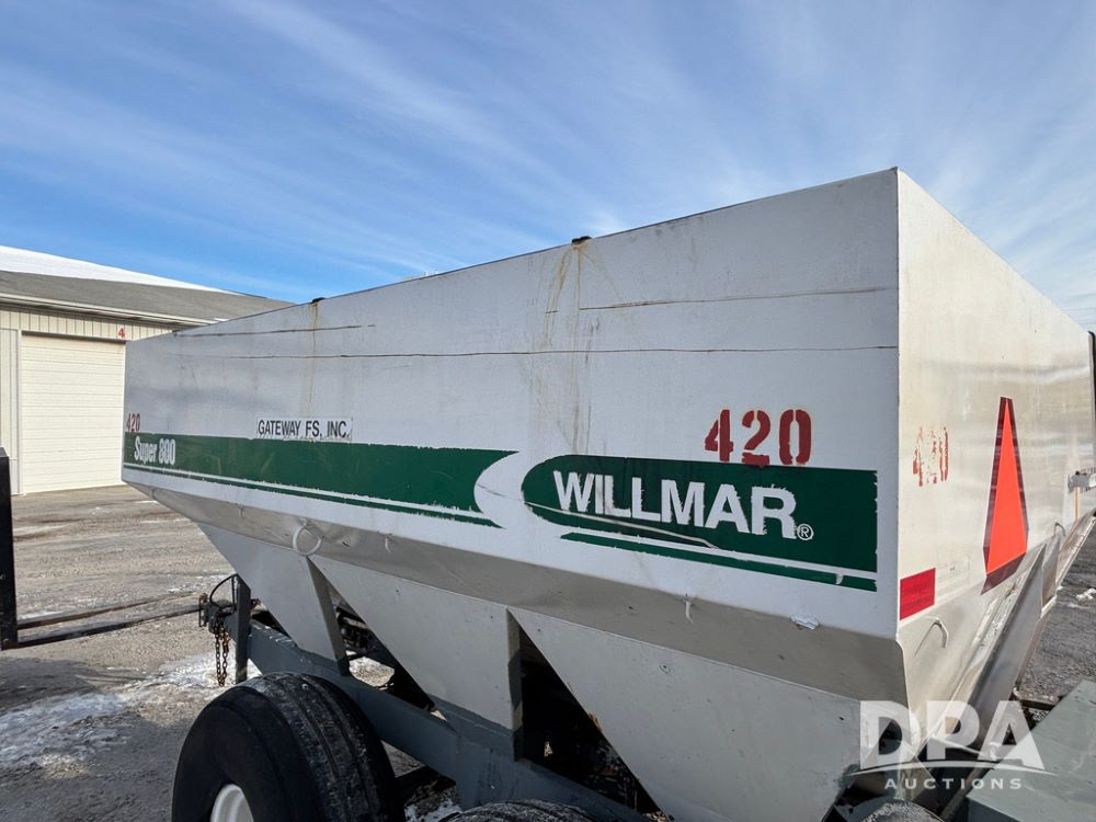 2004 Willmar Super 800 Dry Spreader (GP12684, Unit 420), 2004 Willmar Super 800 dry spreader, twin spinner, PTO, tarp, tandem axle, 19L-16.1SL flotation tires.