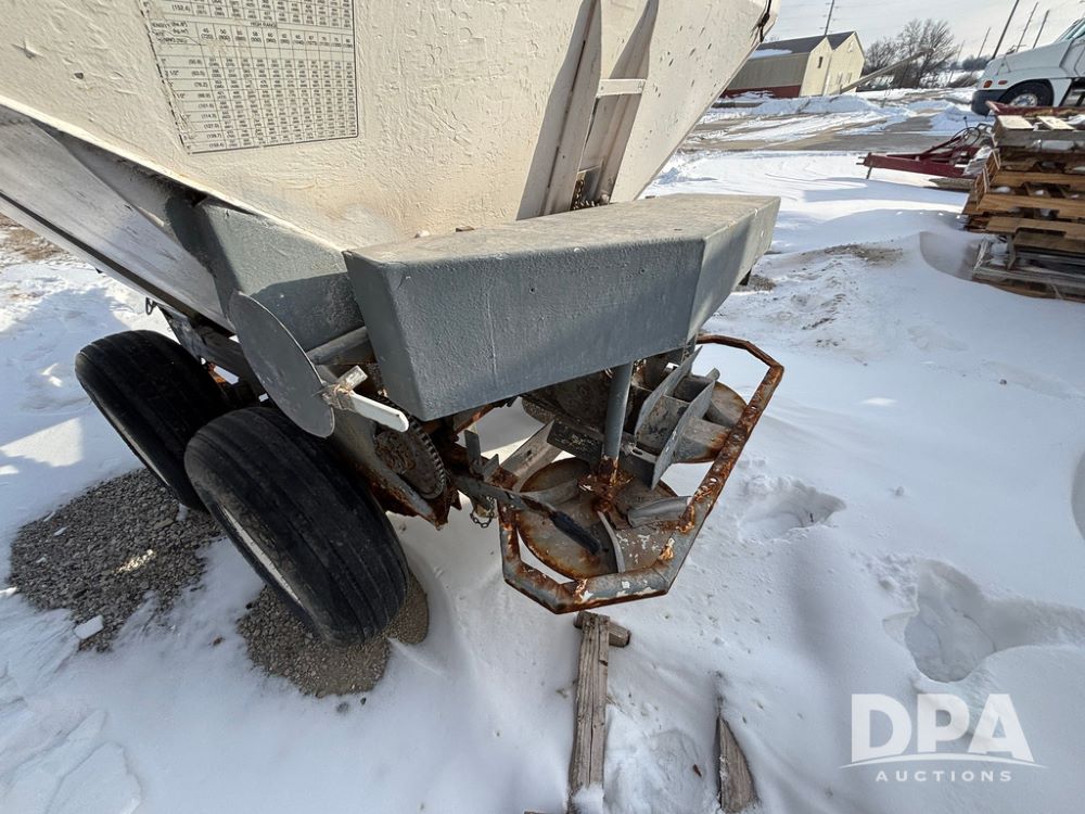 1996 Willmar Dry Spreader (GP12685, Unit 499), 1996 Willmar 5 ton dry spreader, twin spinner, PTO, tarp, tandem axle, 11L-15 flotation tires.