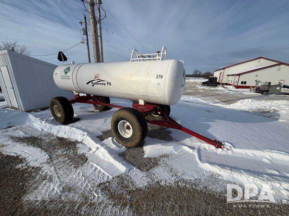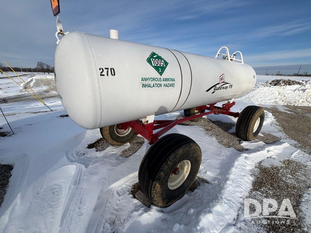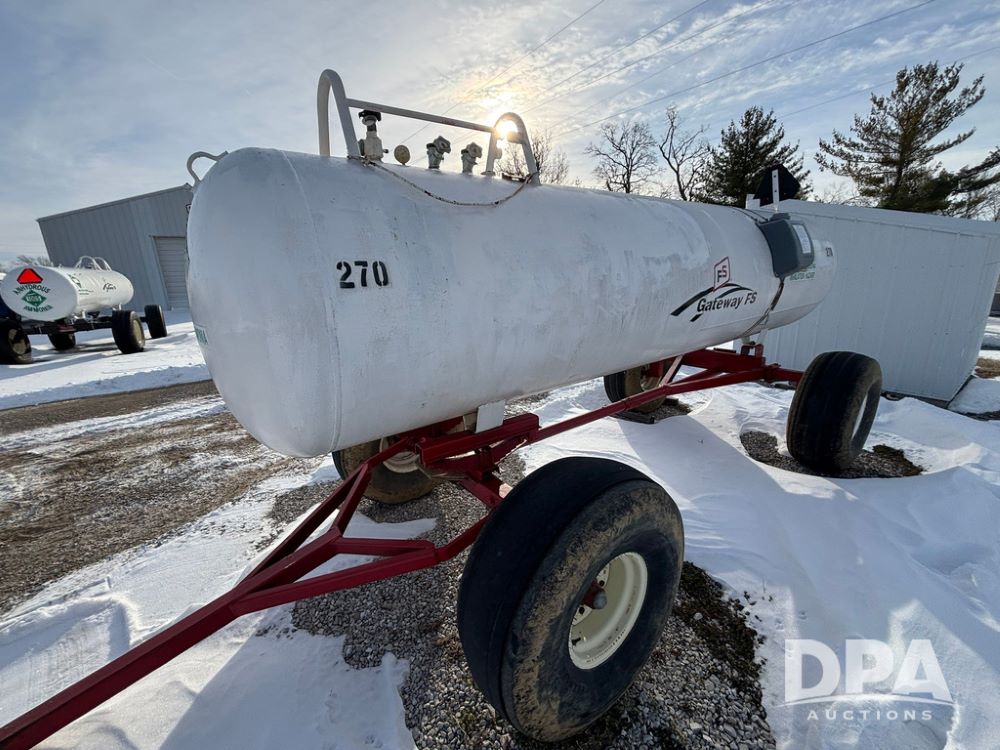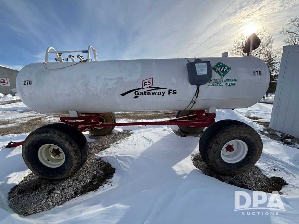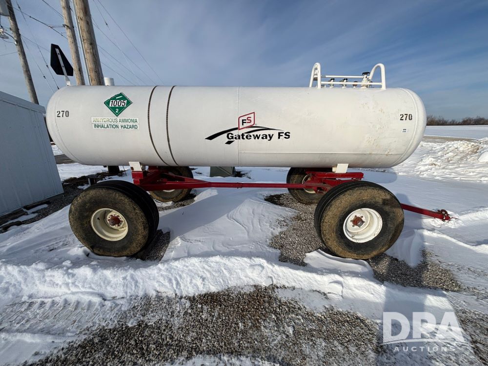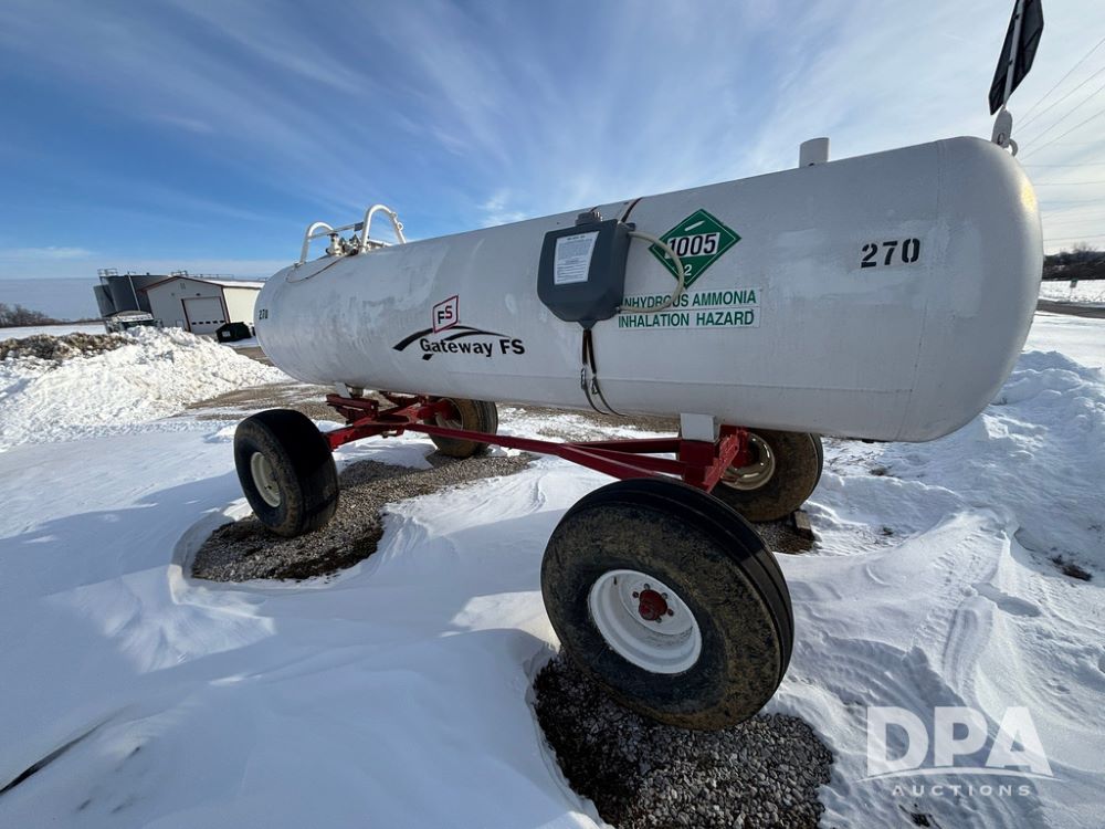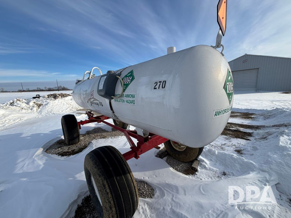 NH3 Nurse Tank (GP12687, Unit 270), 1450 gallon NH3 nurse tank, top front fill, poly water tank, data plate, 2012 B&B 5th wheel running gear, 16.5L-16.1 flotation tires.