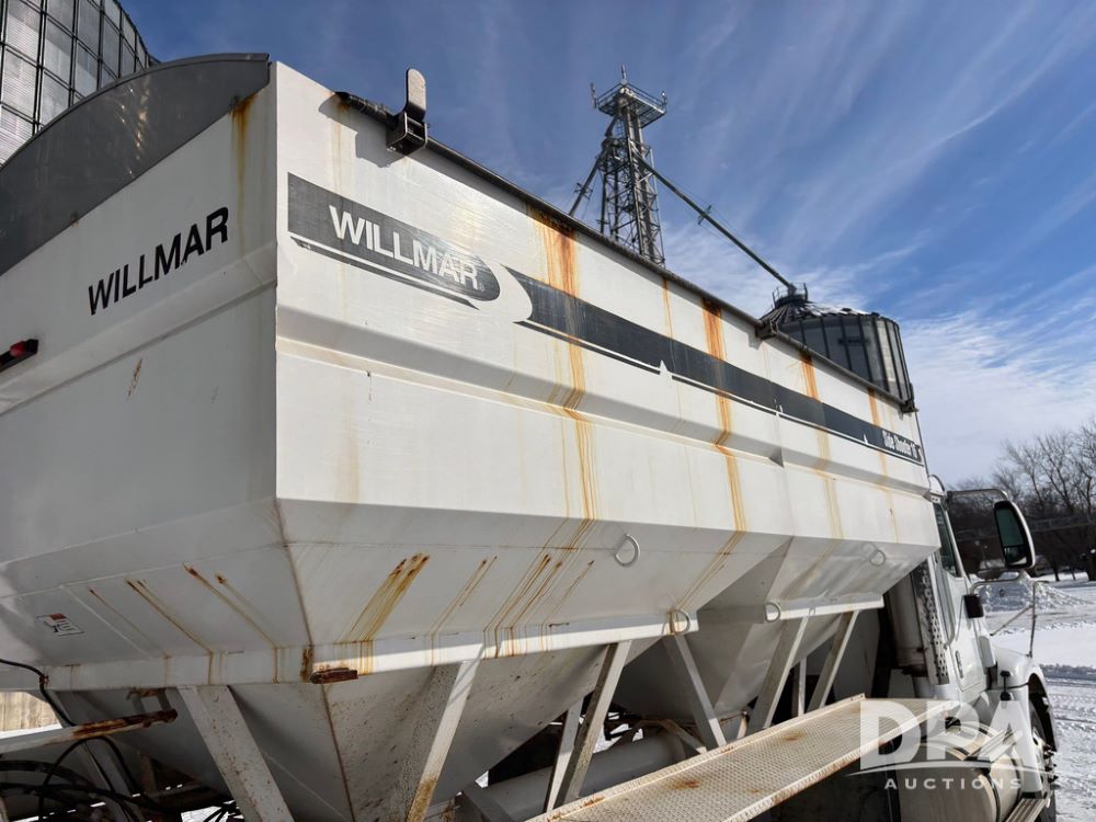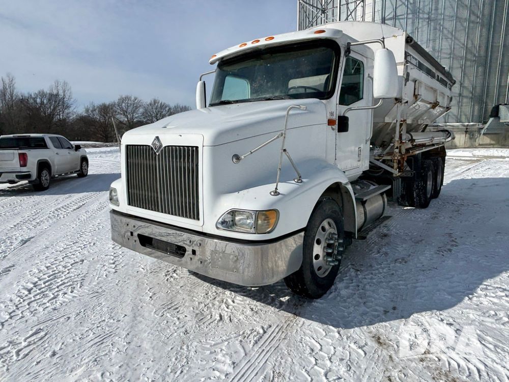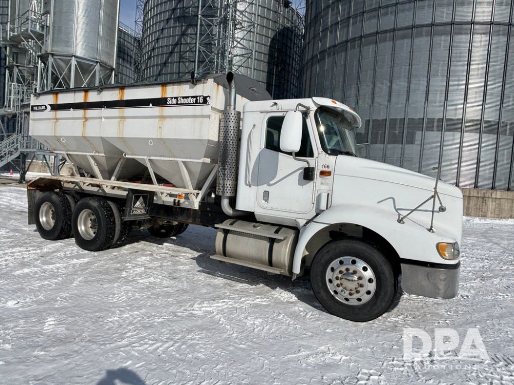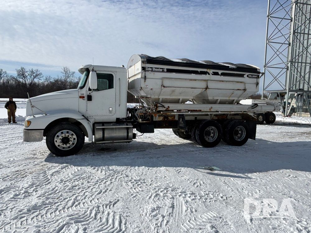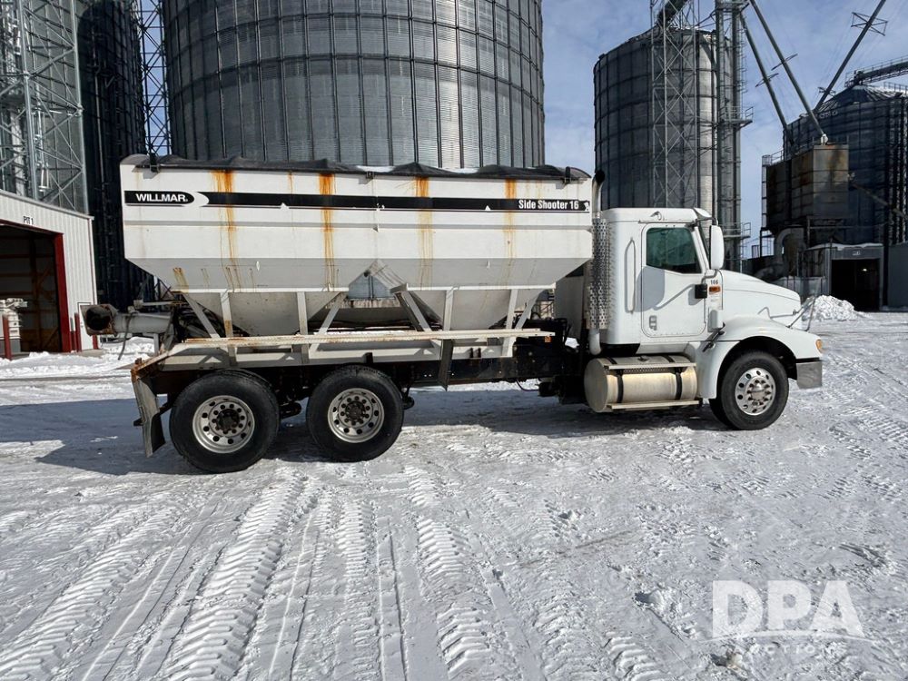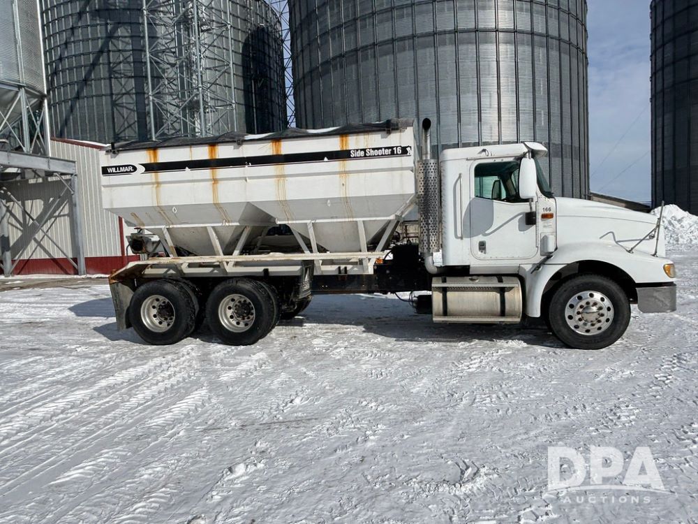 2005 IHC 9200i Dry Tender Truck (GP12689, Unit 166), Cummins ISM diesel engine, Eaton Fuller 10 speed transmission, air conditioning, heat, Am/Fm CD radio, cruise control, engine brake, tandem axle, full screw, air ride suspension, Willmar 16 ton dry tender box (S/N W16SS0EV001142), side discharge auger, all hydraulic, roll over tarp, 11R22.5 tires, aluminum rims, shows 813,335 miles.