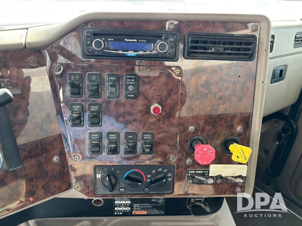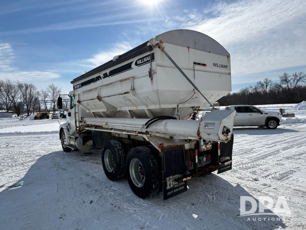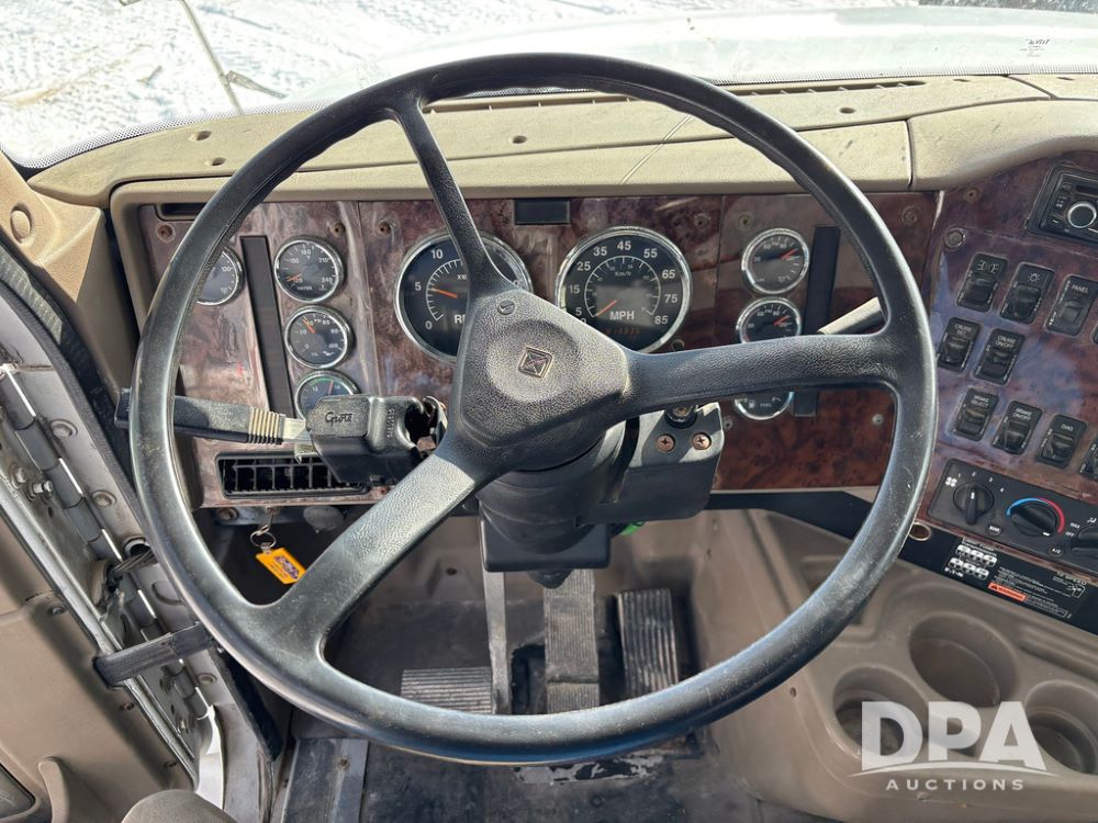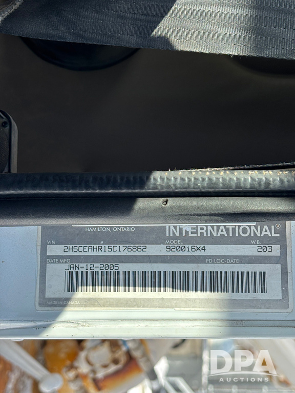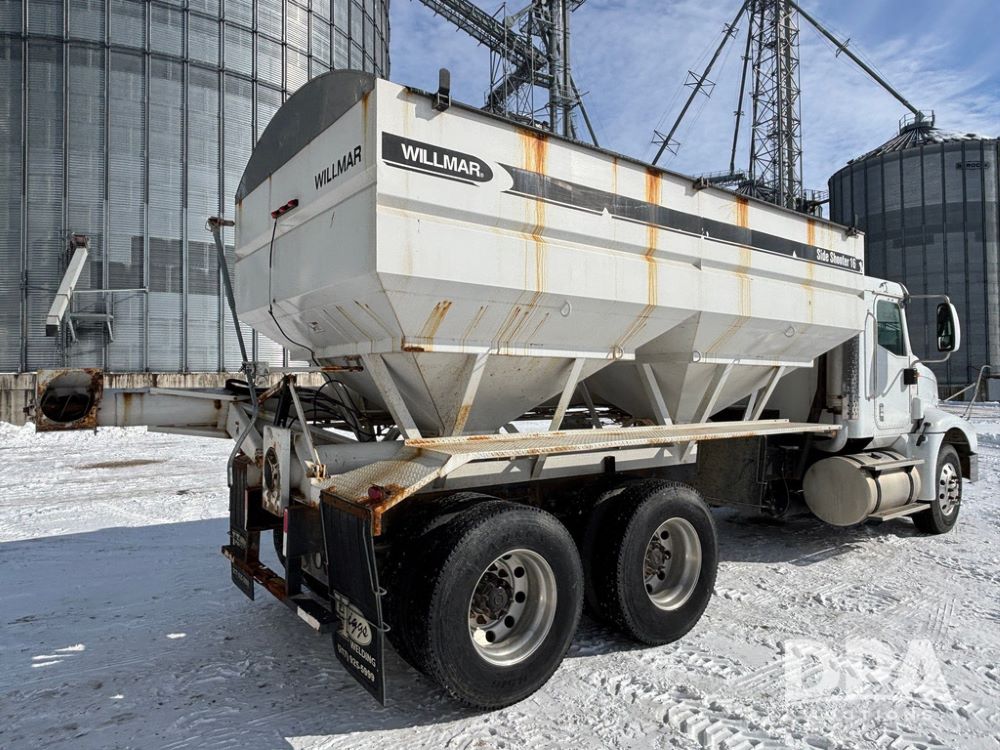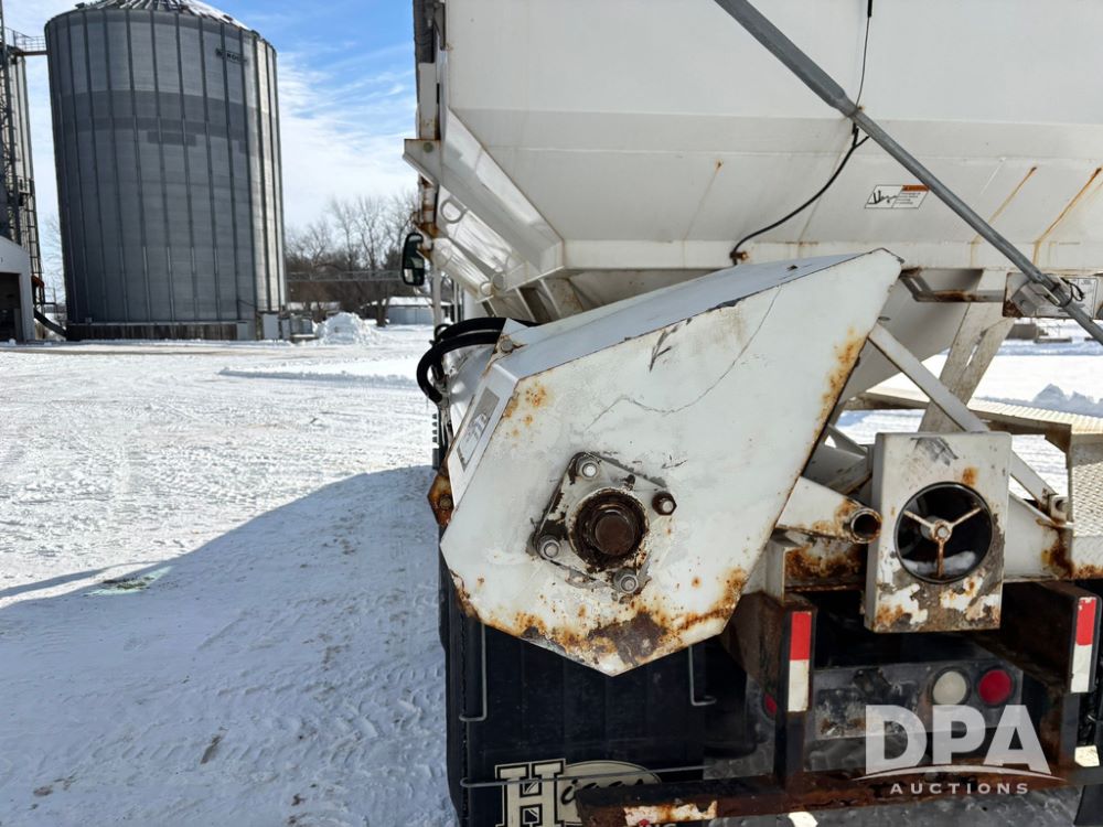 2005 IHC 9200i Dry Tender Truck (GP12689, Unit 166), Cummins ISM diesel engine, Eaton Fuller 10 speed transmission, air conditioning, heat, Am/Fm CD radio, cruise control, engine brake, tandem axle, full screw, air ride suspension, Willmar 16 ton dry tender box (S/N W16SS0EV001142), side discharge auger, all hydraulic, roll over tarp, 11R22.5 tires, aluminum rims, shows 813,335 miles.