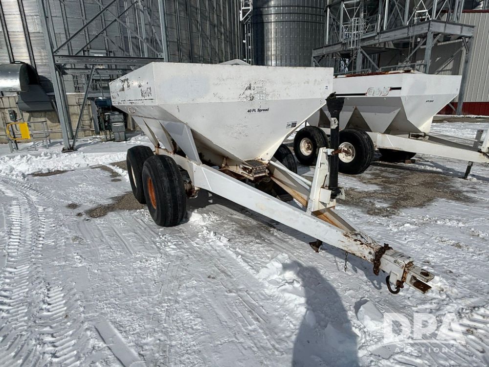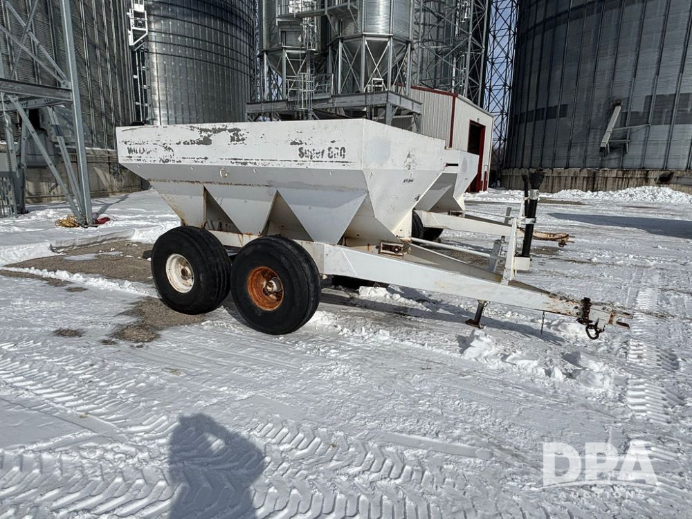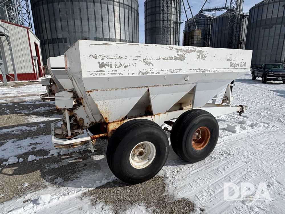 Willmar 600 Dry Spreader (GP12690, Unit O-15), Willmar 600 dry spreader, twin spinner, PTO, tandem axle, 16.5L-16.1SL flotation tires.