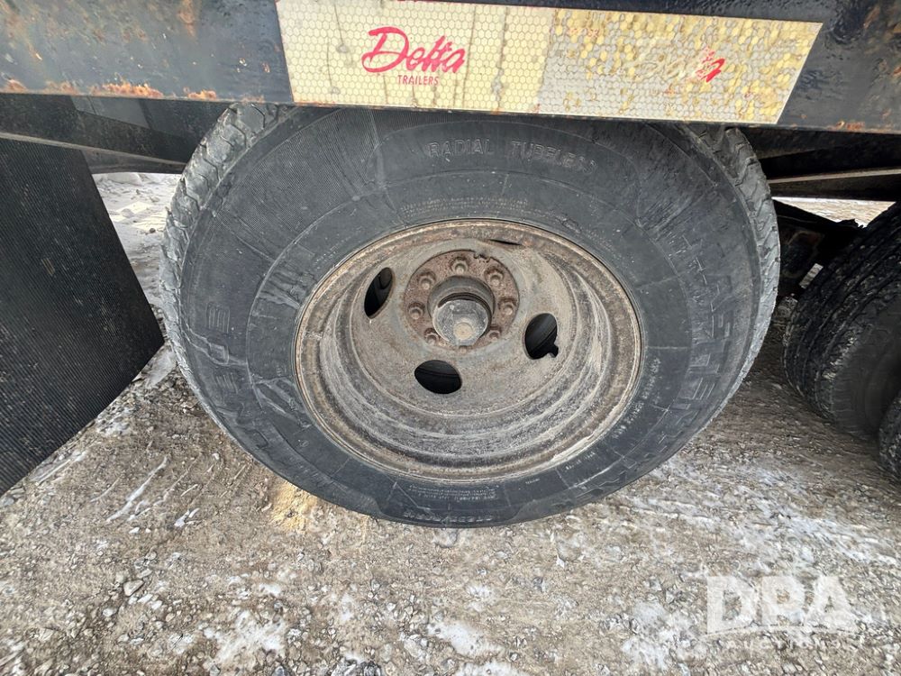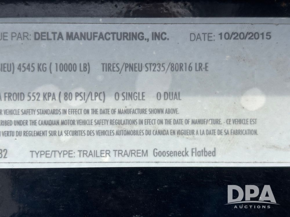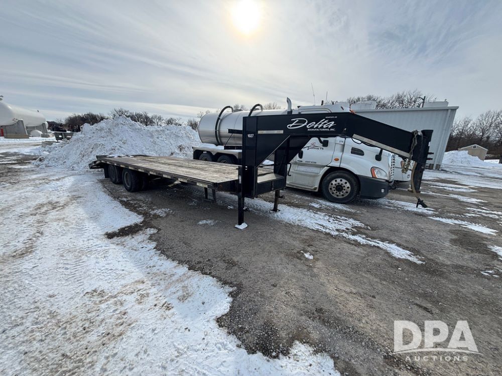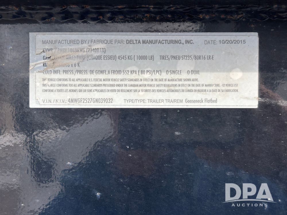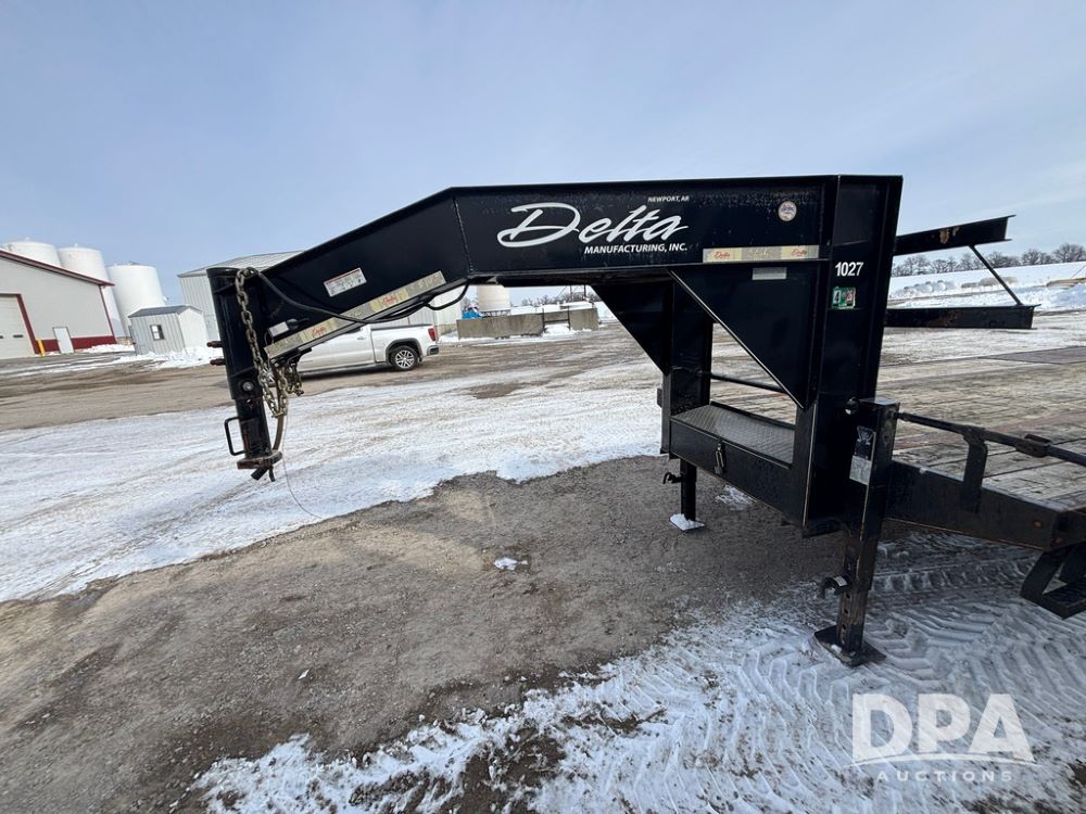 2016 Delta Gooseneck Trailer (GP12698, Unit 1027), 2016 Delta gooseneck trailer, wood deck, beaver tail, side winches, fold down ramps, tandem axle, dual wheels, ST235/80R16 tires.