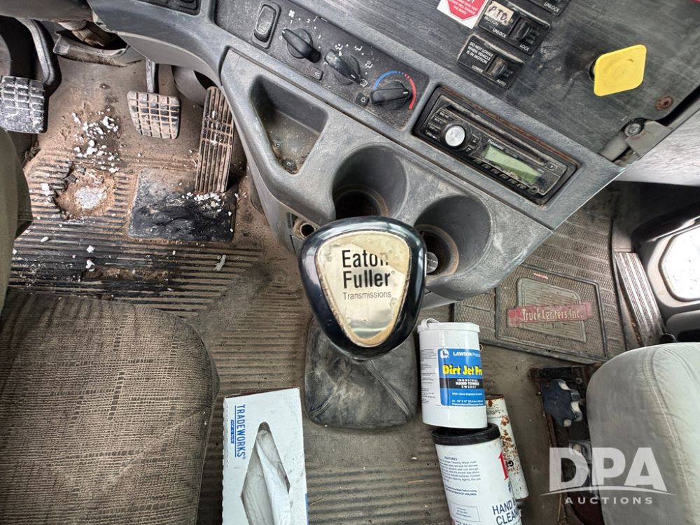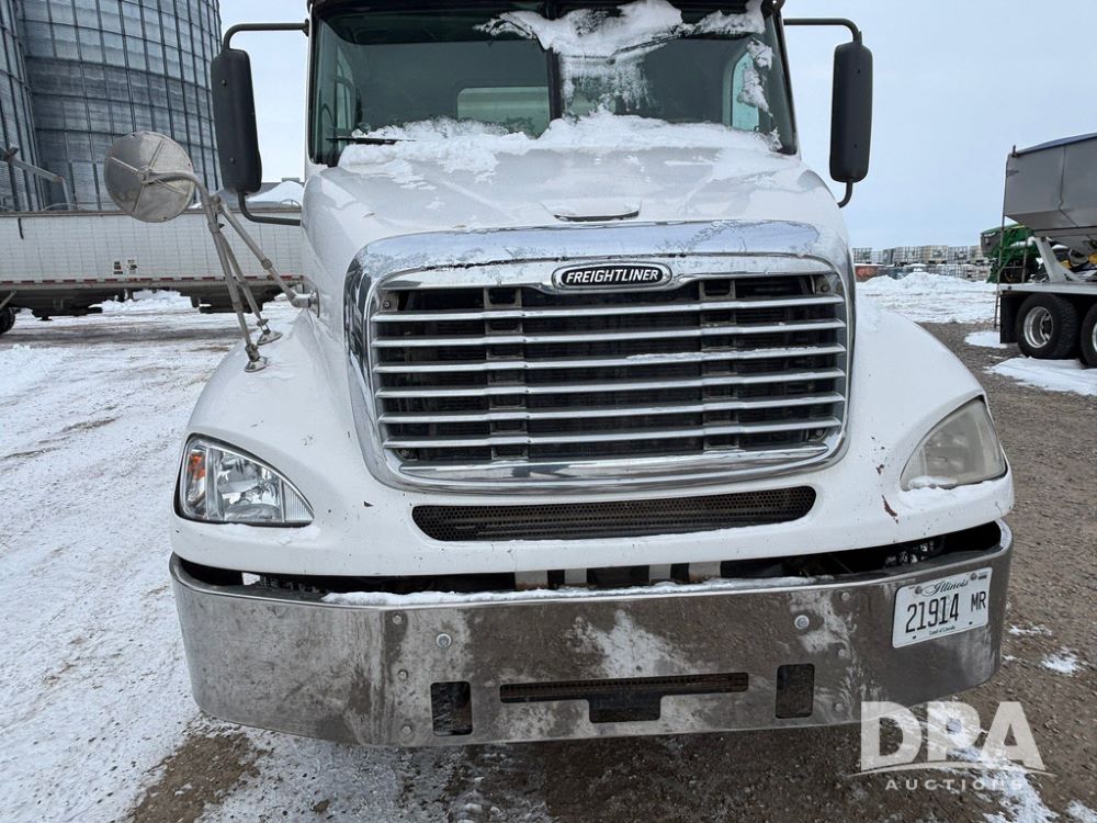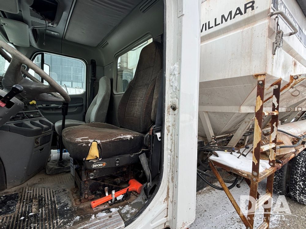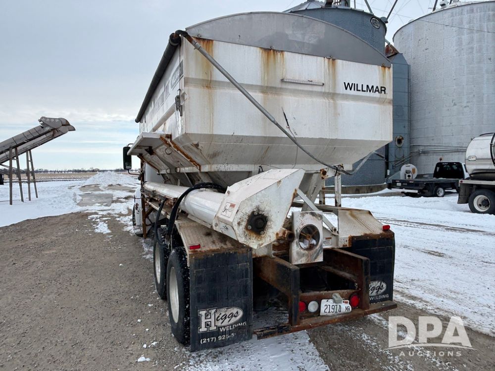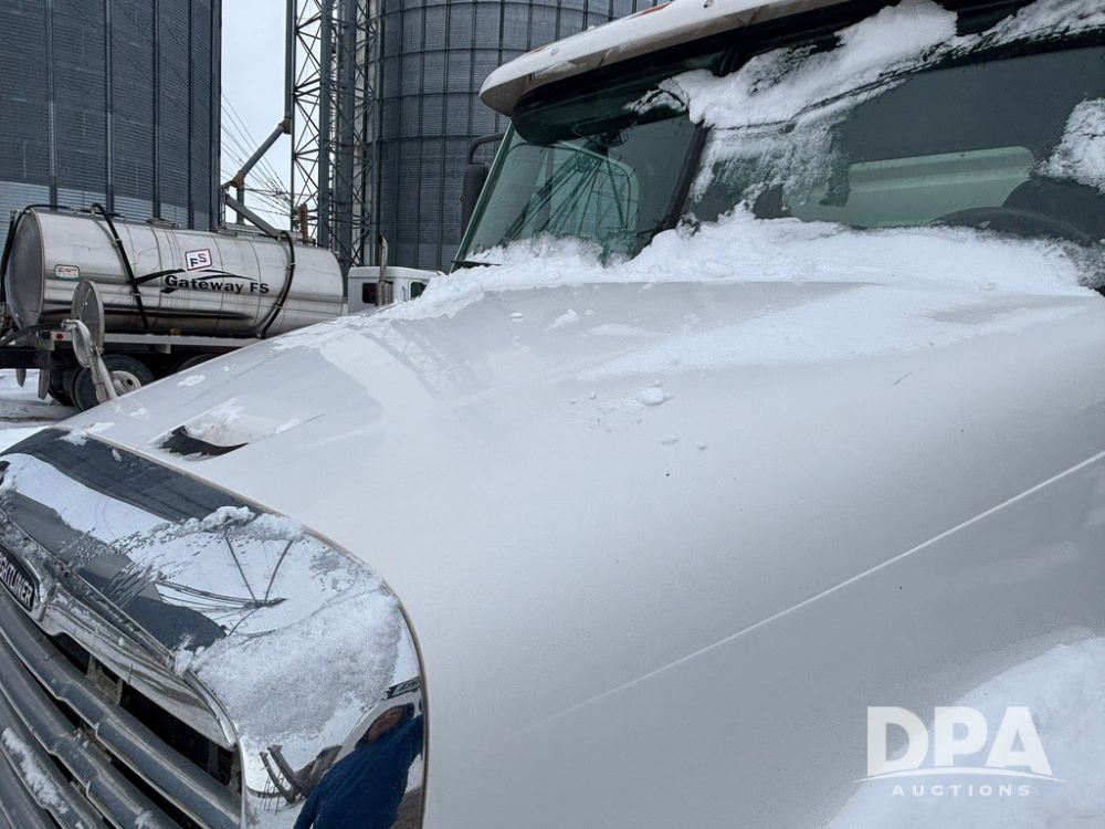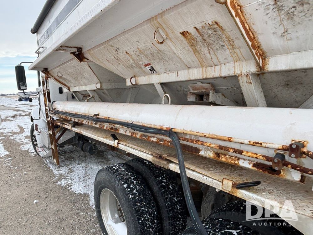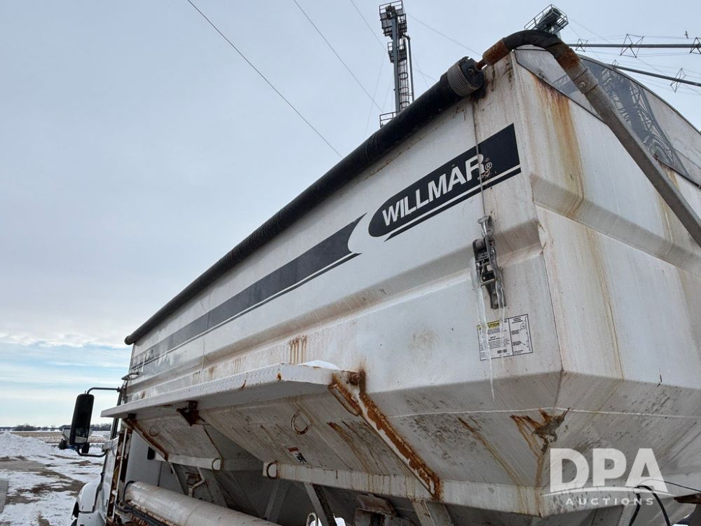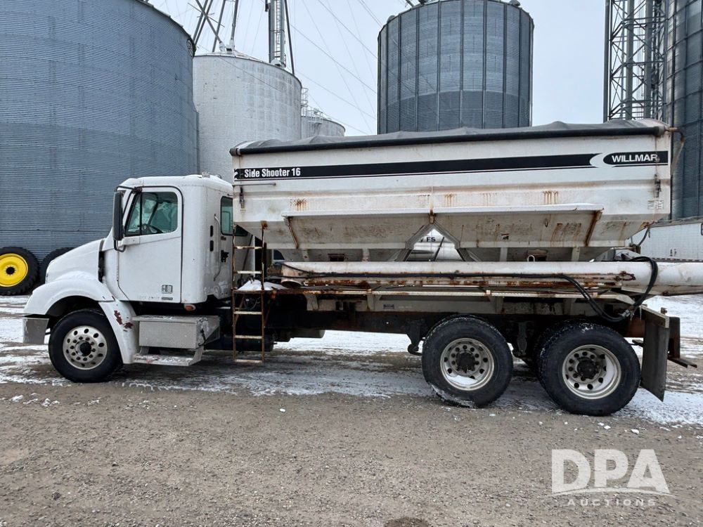2007 Freightliner Columbia Dry Tender Truck (GP12705, Unit 204), Mercedes-Benz diesel engine, Eaton Fuller 10 speed transmission, air conditioning, heat, Am/Fm CD radio, cruise control, engine brake, tandem axle, full screw, air ride suspension, Willmar 16 ton dry tender box (S/N W16SSVJM001010), side discharge auger, all hydraulic, roll over tarp, 295/75R22.5 tires, aluminum rims, shows 690,275 miles.