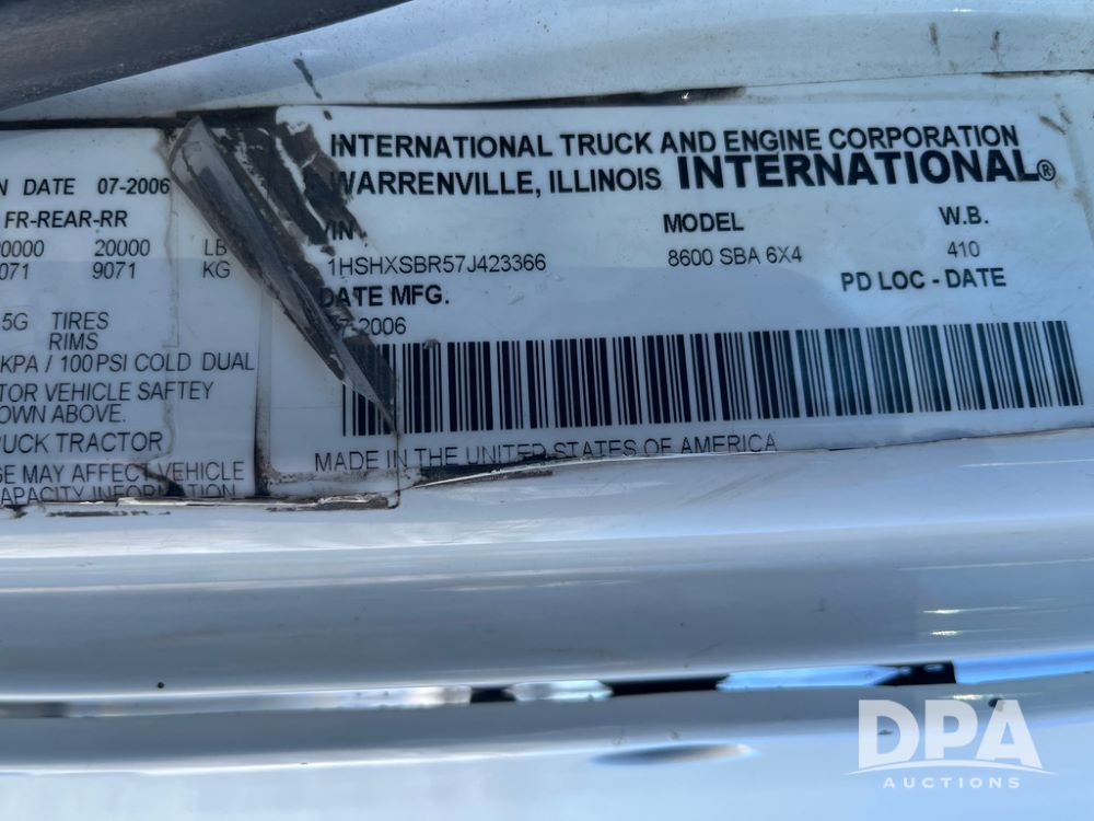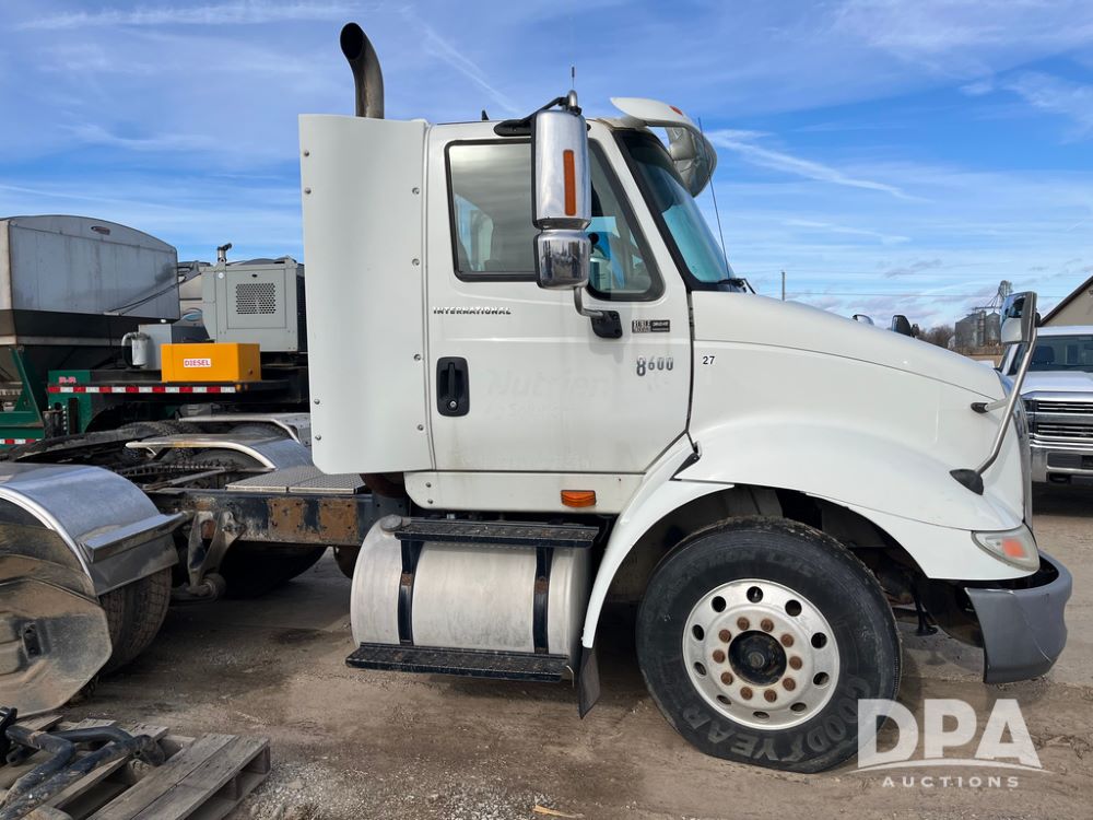 2007 IHC 8600 Day Cab Truck (PZ14366, Unit 39533), Cat diesel engine, Eaton Fuller 10 speed transmission, air conditioning, heat, Am/Fm CD radio, tandem axle, full screw, air ride suspension, 5th wheel, 295/75R22.5 tires, aluminum fronts, quarter fenders, shows 1,013,368 miles.
