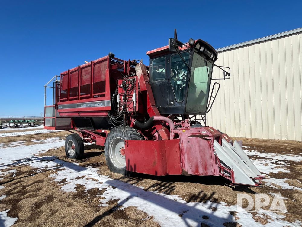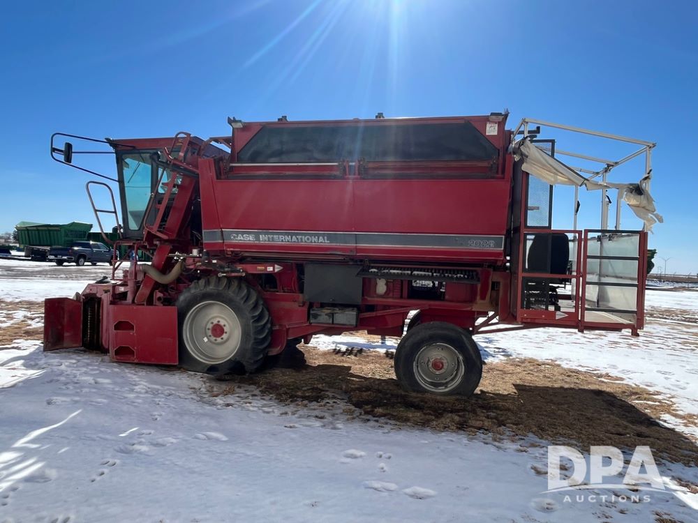 Case International 2022 Plot Picker (JN3797), cab, Case Model 2022Drum (S/N JJC0017523), 18.4-34 front tires, 11.25-24 rear tires, Garmin GPS, Rice Lake Event Sequential Protocol weight indicator, shows 2,615 engine hours.