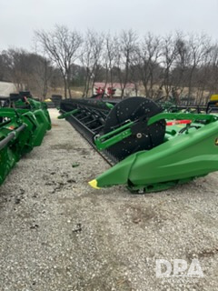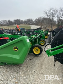 2024 John Deere HD45F Platform Head (PD5481).45 foot, hinged frame, dual knife drive, 4 inch knife stroke, 42 inch reel, hydraulic height and speed control, electrohydraulic, compatible with John Deere S and X Series combines.