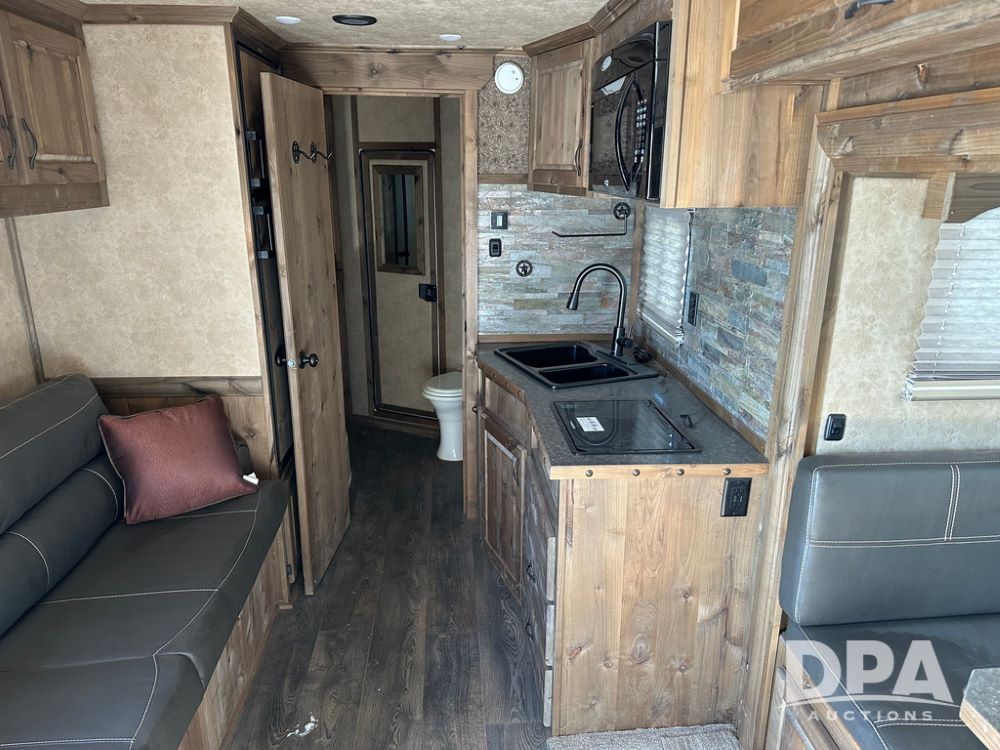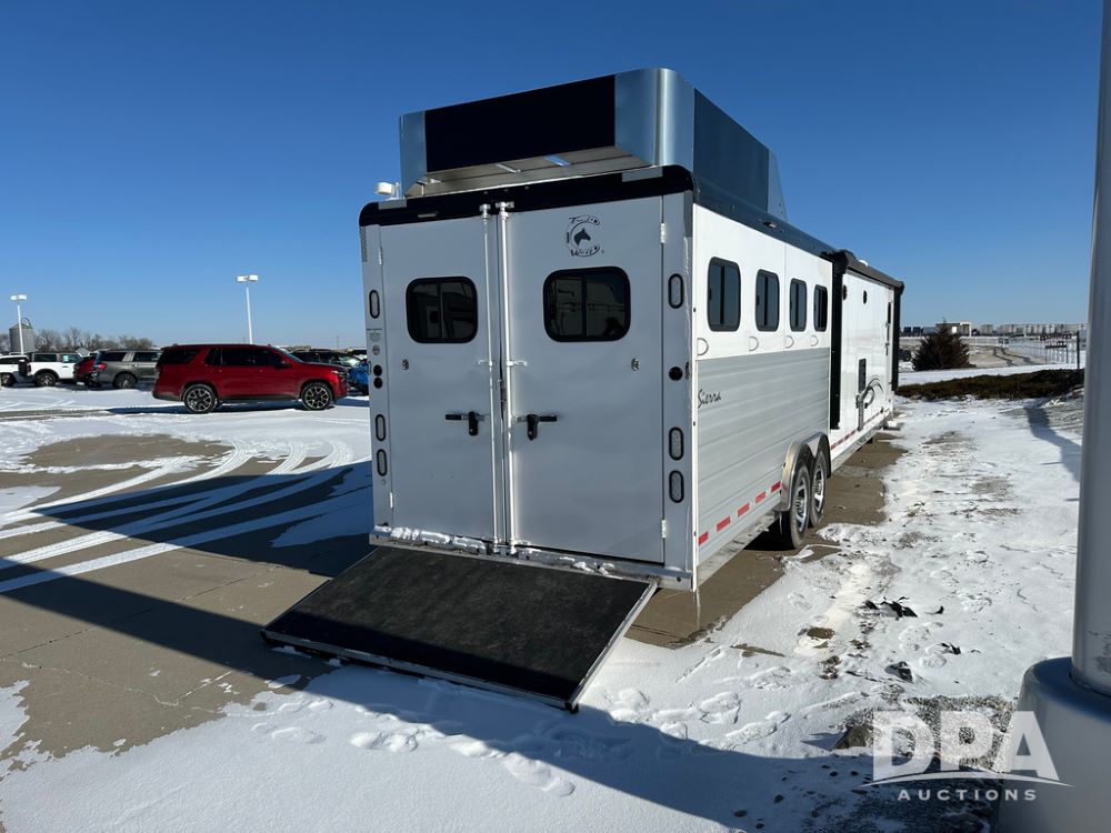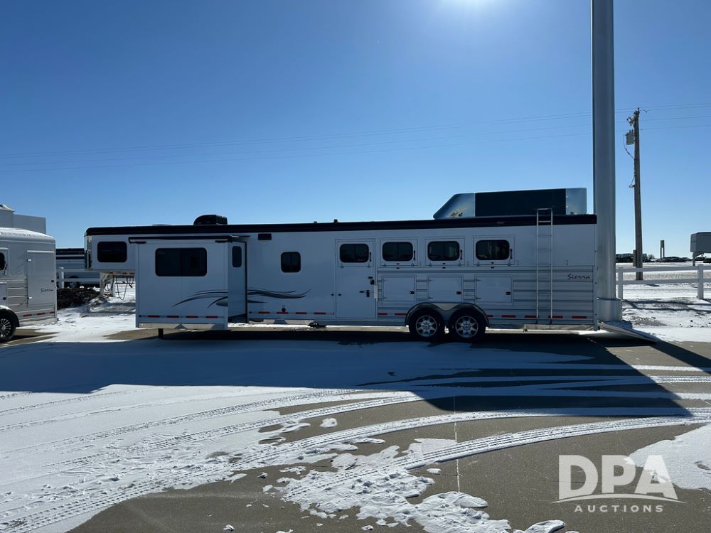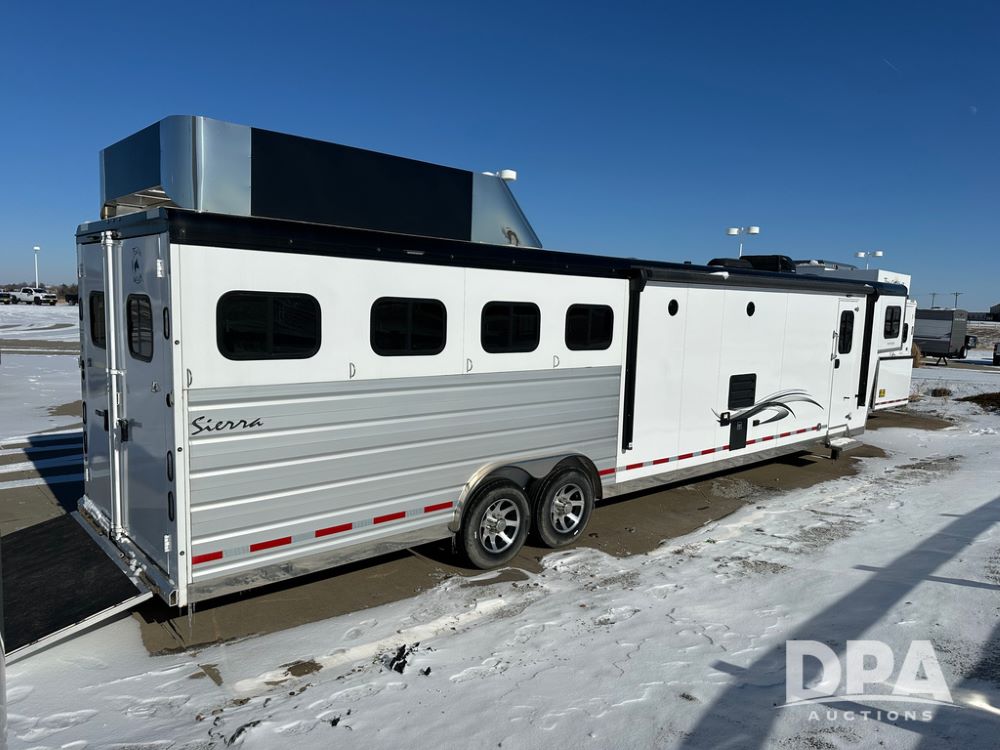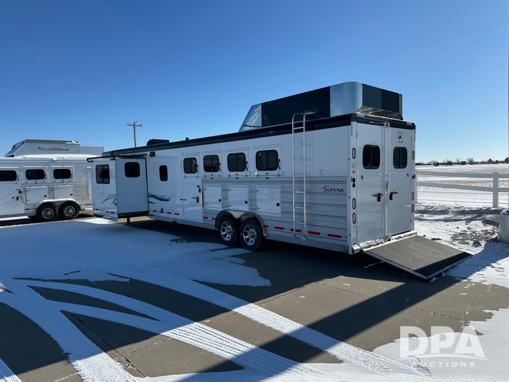 2023 Trails West Sierra LQ 4 Horse Trailer with Living Quarters (DPA5031), Gooseneck, slant load, 4 horse trailer with fold up rear tack compartment, fully enclosed horse compartment, 15x20ft living quarters, bed, slide out, ST235/85R16 LRG tires.