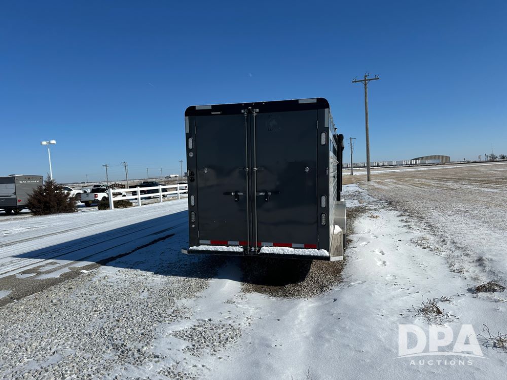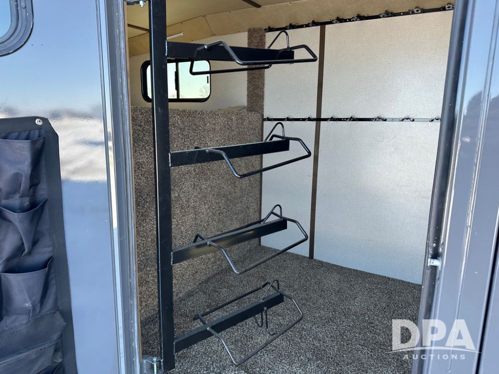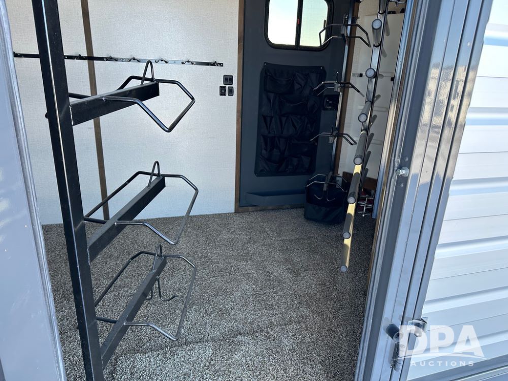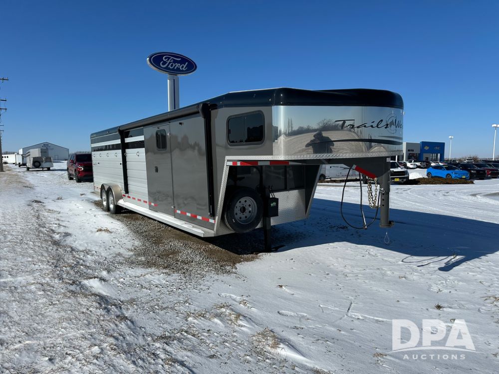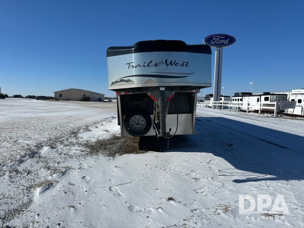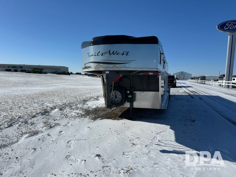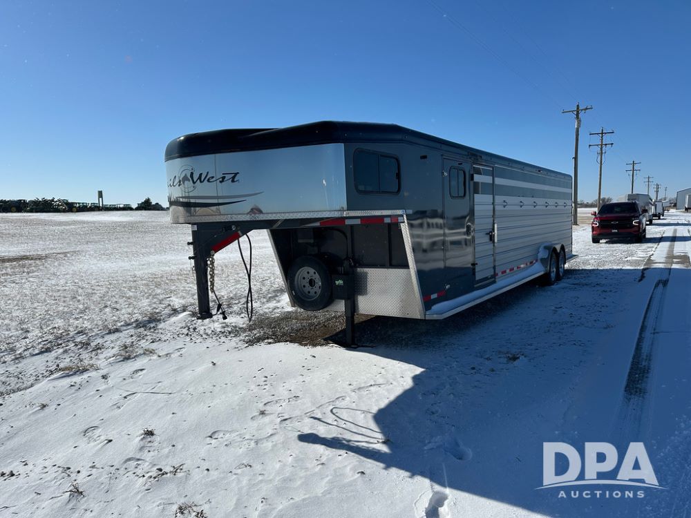 2022 Trails West Santa Fe Horse Trailer (DPA5032), 31ft gooseneck trailer, Super Tack Package, stock area 25.5x20 with cargo doors, slant cross gate, cargo doors and side gate, tack area 5x10 with tack door each side, double 6 place blanket rack, 4 place swing out saddle rack, ST215/75R17.5 LRH tires.