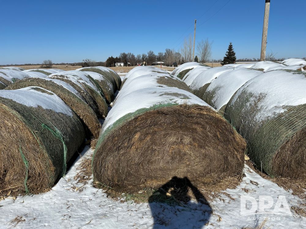 (6) Grass Round Hay Bales (CG434), grass round bales, row of 6.