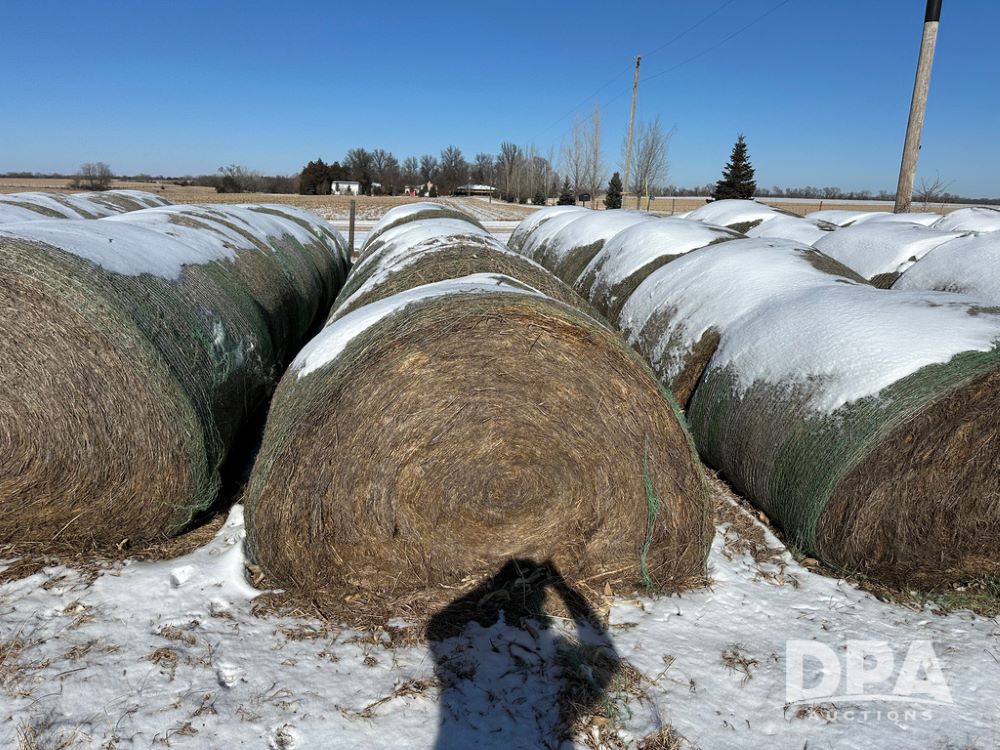 (6) Grass Round Hay Bales (CG435), grass round bales, row of 6.