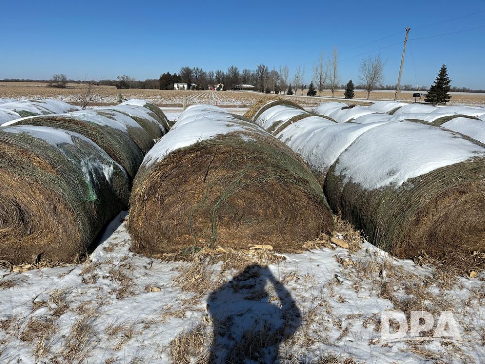 (6) Grass Round Hay Bales (CG440), grass round bales, row of 6.