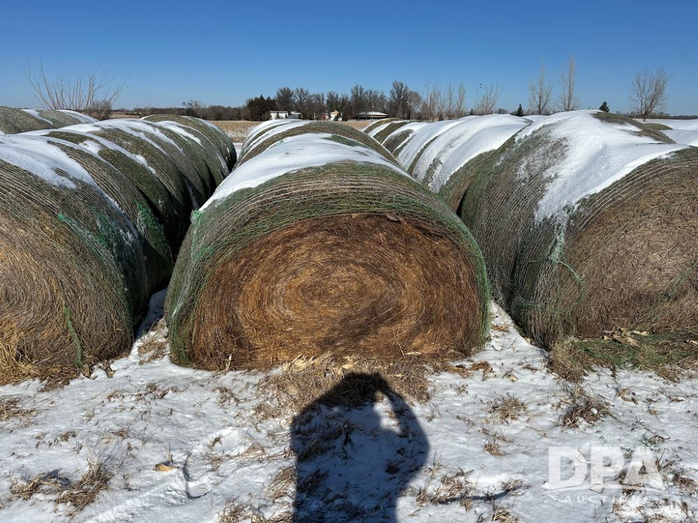 (6) Grass Round Hay Bales (CG448), grass round bales, row of 6.