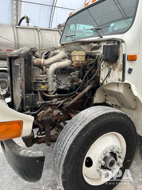 1995 International 4700 Tender Truck (LLD1634), Cummins diesel engine, automatic transmission, 10 ton dry fertilizer bed, auger, shows 156,688.