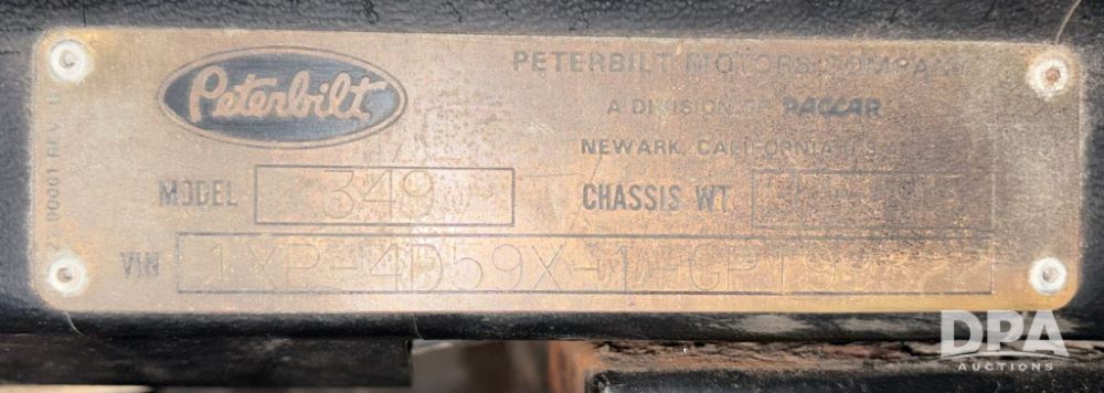 1986 Peterbilt 349 Day Cab Truck (LLD1640), Cummins diesel engine, 15 speed transmission, 24.5 tires, tandem axle, wet kit, dual fuel tanks, show 811,520 miles.