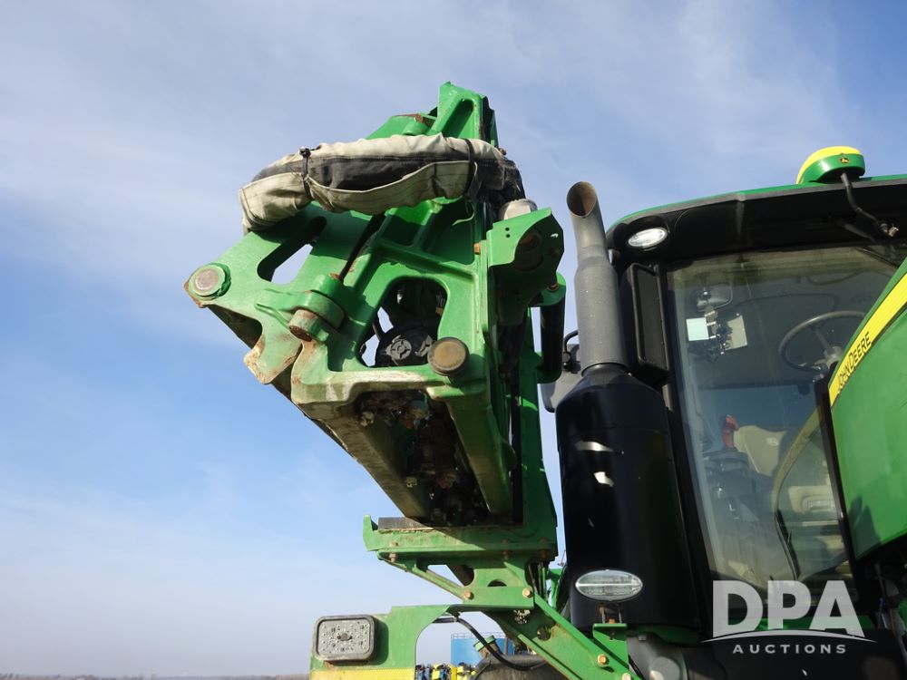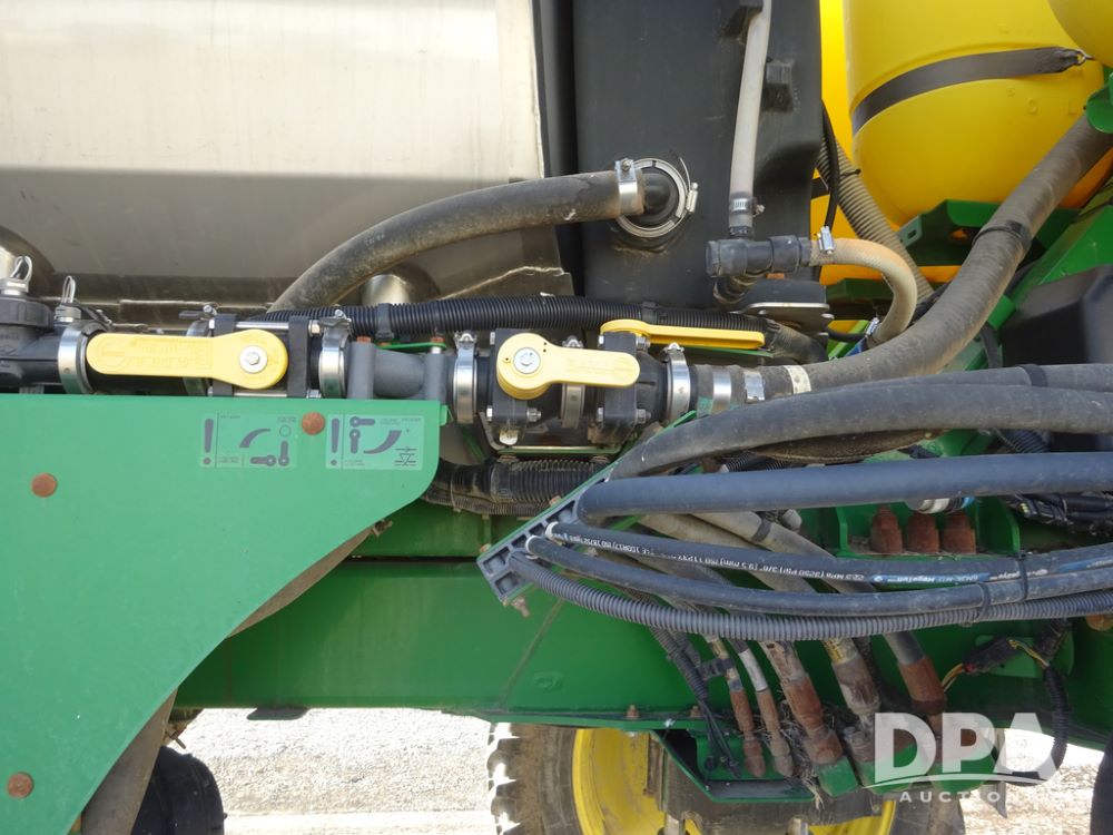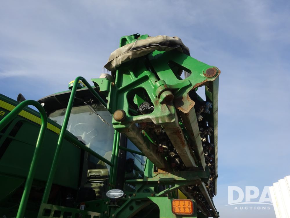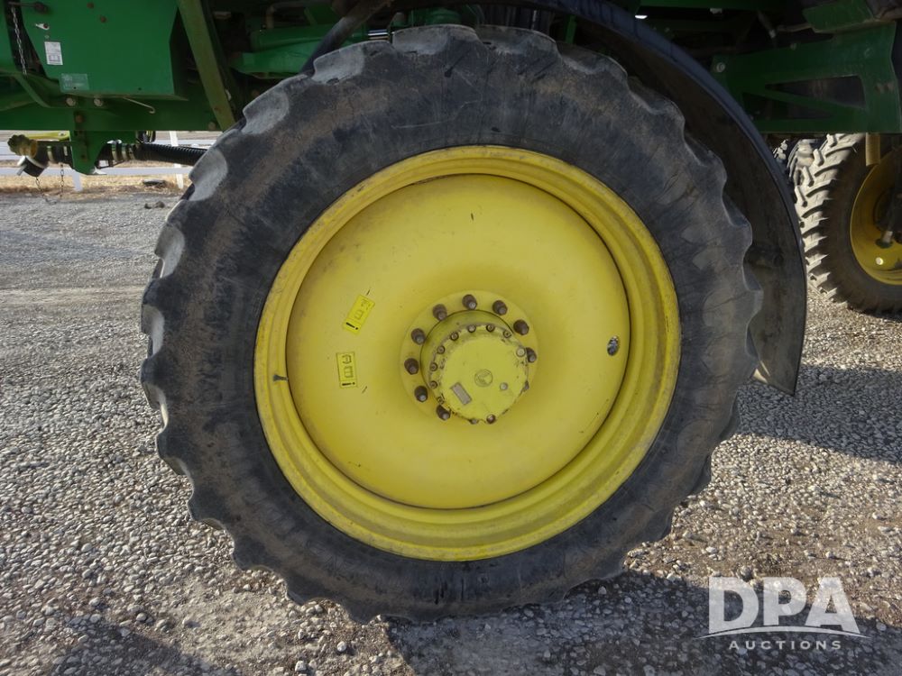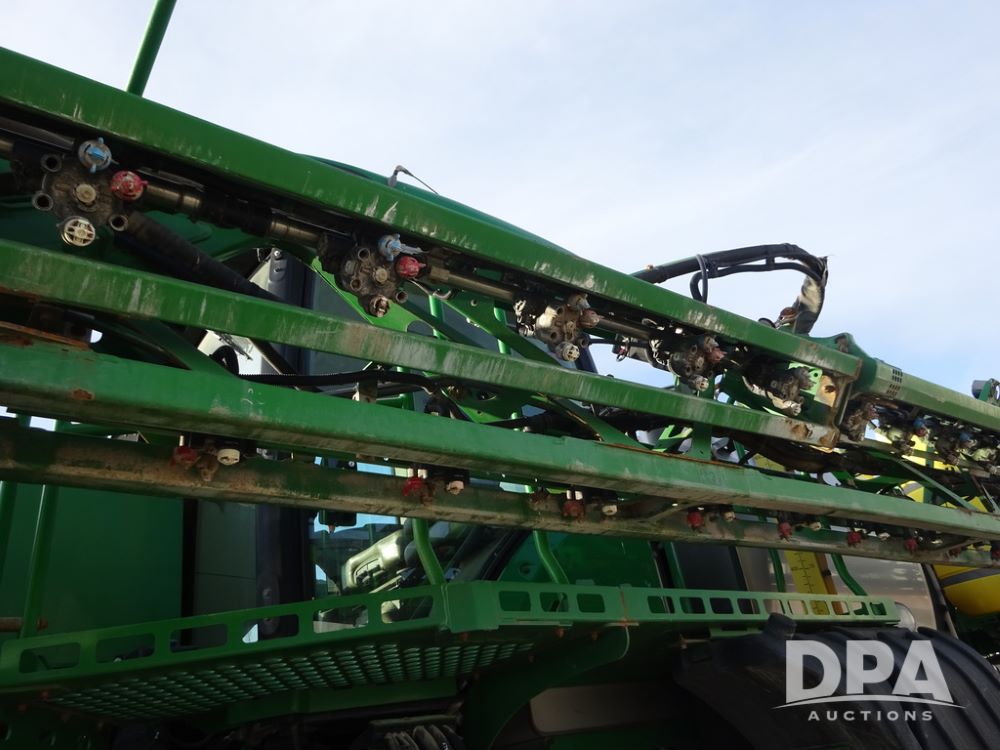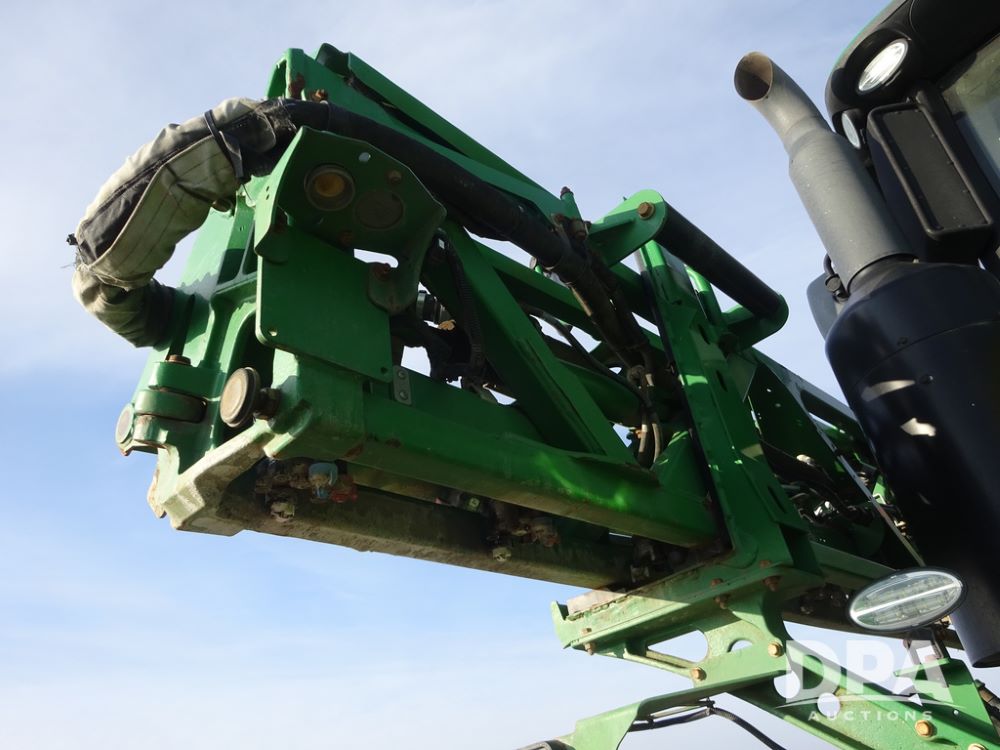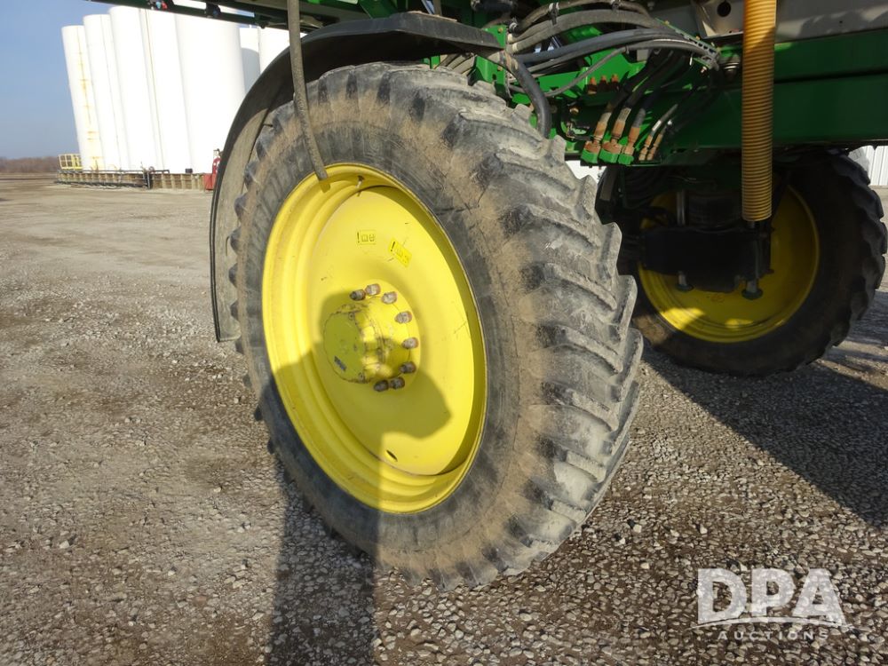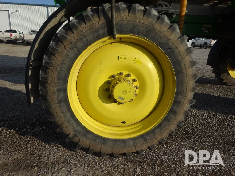 2019 John Deere R4038 Sprayer (PZ14367, Unit 3714), John Deere diesel engine (RG6090U066827), hydrostatic transmission, air conditioning, heat, Am/Fm radio, leather seat, buddy seat, beacon lights, 1000 gallon stainless steel liquid system, 100' boom, rear poly rinse tank, 4 - 50 gallon poly direct injection tanks, 2 - Raven Sidekick Pro pumps, stainless steel chemical inductor, automatic solution control, front fill, Firestone & Michelin IF380/90R46 tires, fenders, John Deere StarFire 6000 globe, John Deere monitor, shows 2,977 hours.