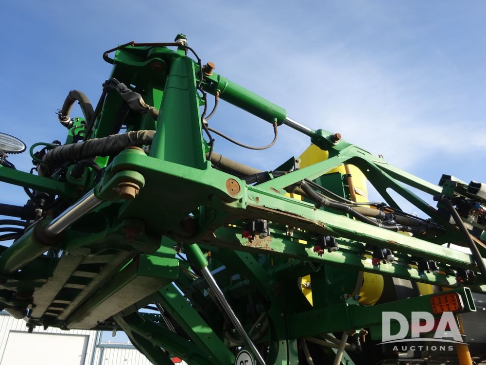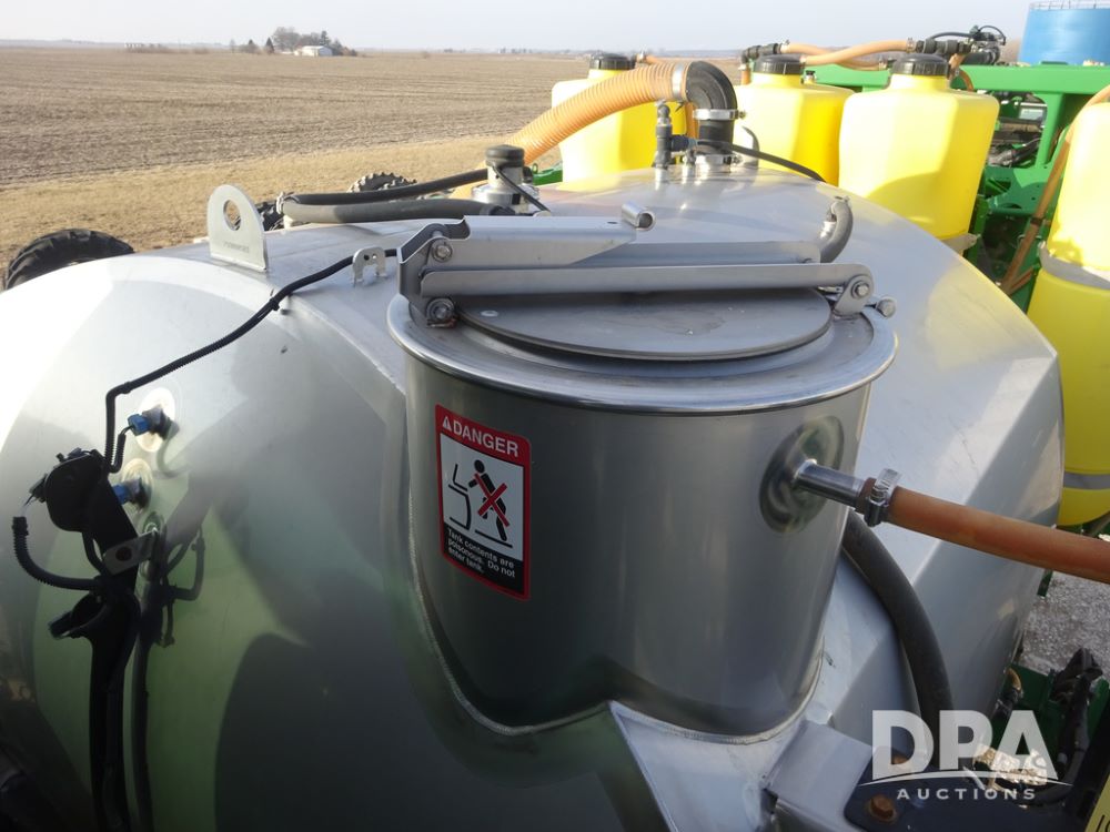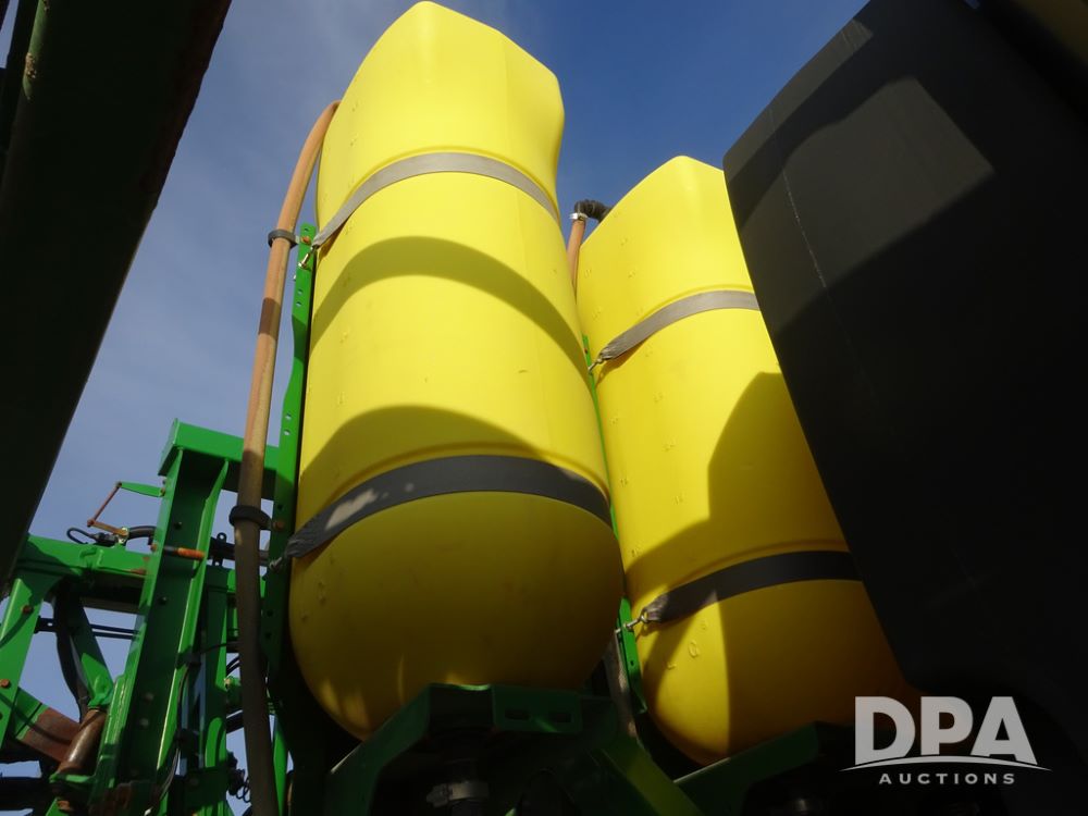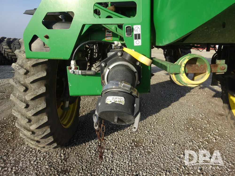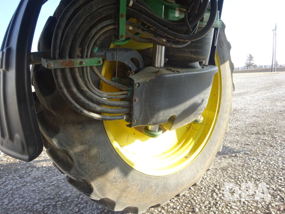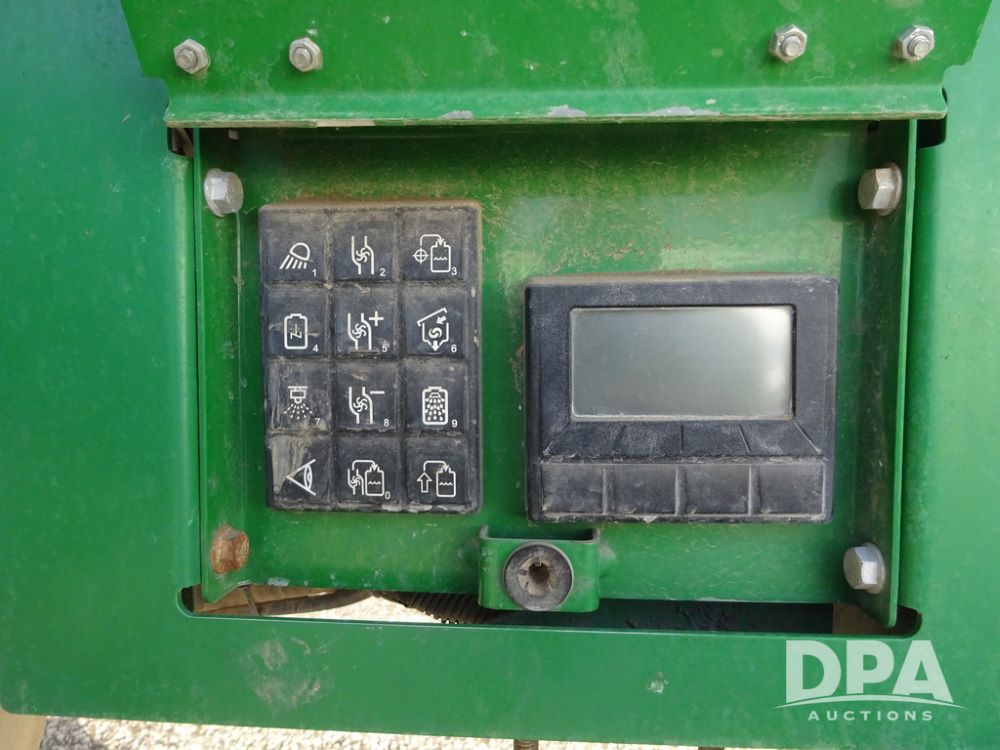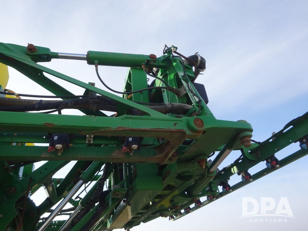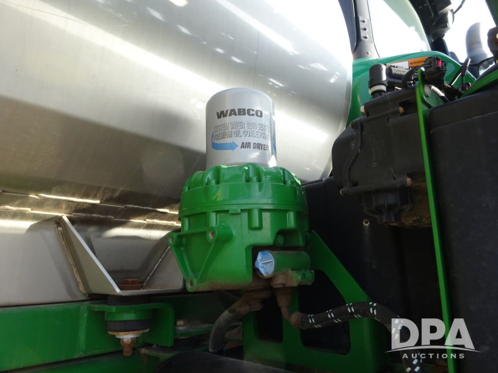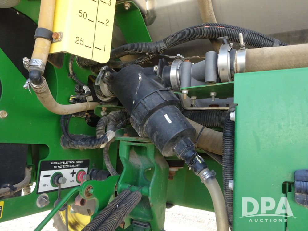 2019 John Deere R4038 Sprayer (PZ14367, Unit 3714), John Deere diesel engine (RG6090U066827), hydrostatic transmission, air conditioning, heat, Am/Fm radio, leather seat, buddy seat, beacon lights, 1000 gallon stainless steel liquid system, 100' boom, rear poly rinse tank, 4 - 50 gallon poly direct injection tanks, 2 - Raven Sidekick Pro pumps, stainless steel chemical inductor, automatic solution control, front fill, Firestone & Michelin IF380/90R46 tires, fenders, John Deere StarFire 6000 globe, John Deere monitor, shows 2,977 hours.