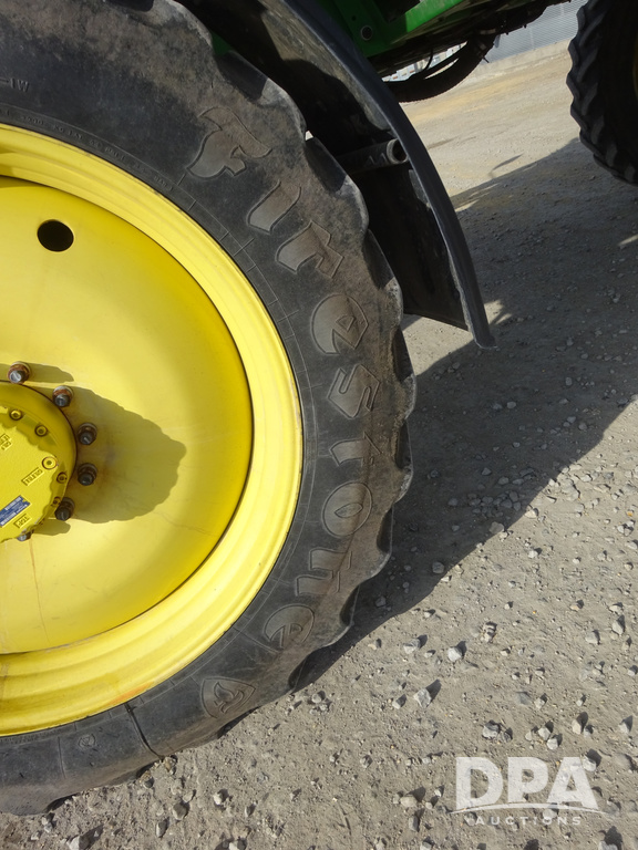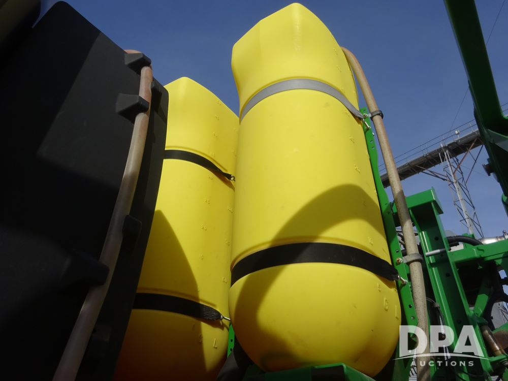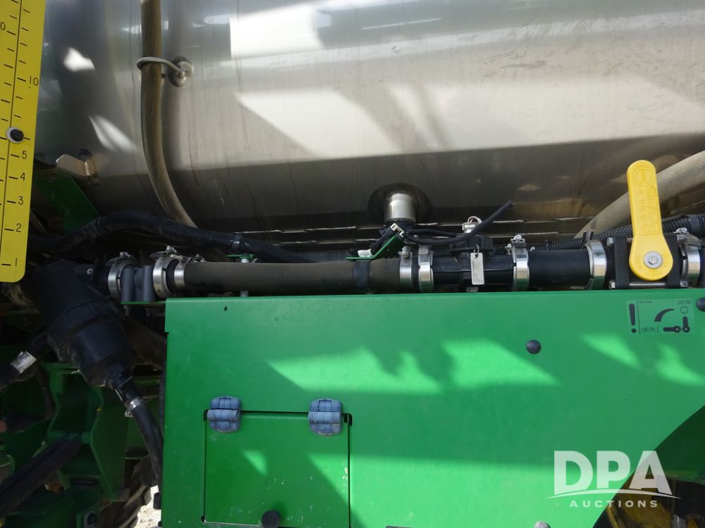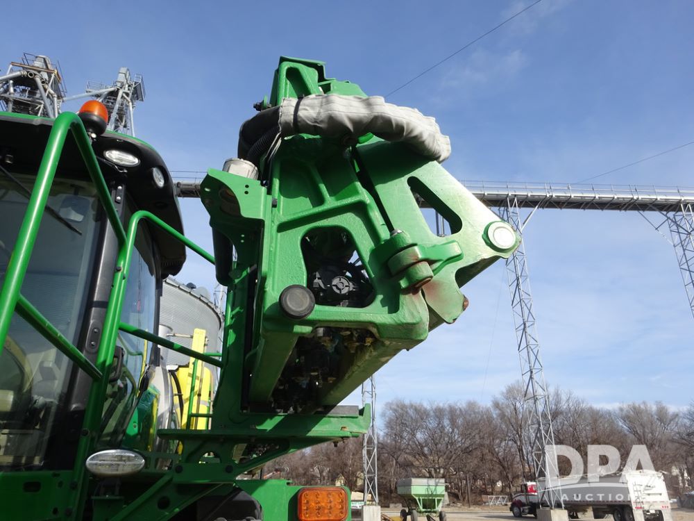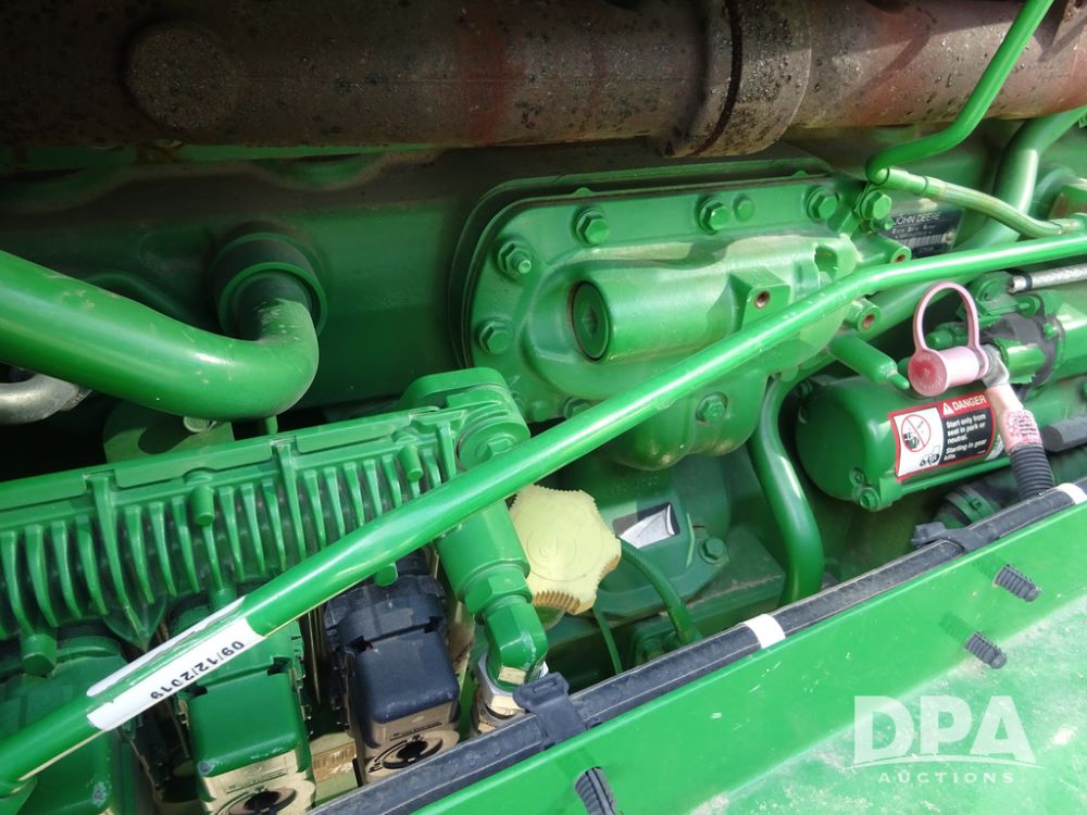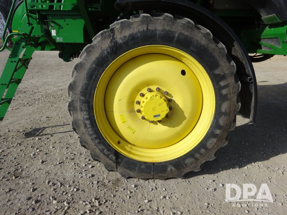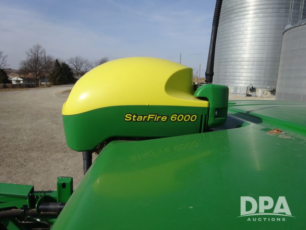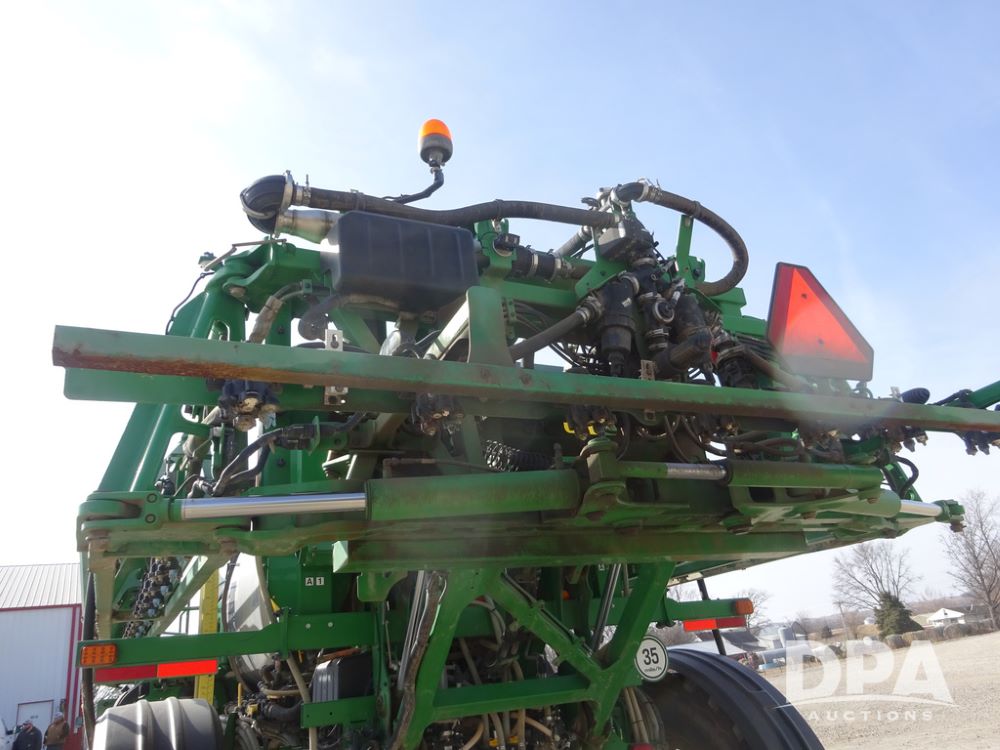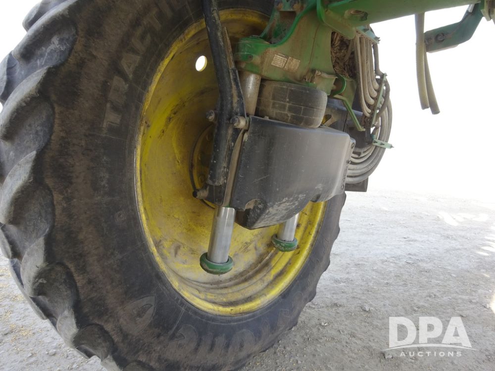 2020 John Deere R4038 Sprayer (PZ14369, Unit 3739), John Deere diesel engine (S/N RG6090U079131), hydrostatic transmission, air conditioning, heat, Am/Fm radio, leather seat, buddy seat, beacon lights, 1000 gallon stainless steel liquid system, 100' boom, rear poly rinse tank, 4 - 50 gallon poly direct injection tanks, 2 - Raven Sidekick Pro pumps, stainless steel chemical inductor, automatic solution control, front fill, Firestone IF380/90R46 tires, fenders, John Deere StarFire 6000 globe, John Deere monitor, shows 3,277 hours.
