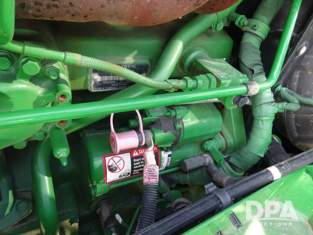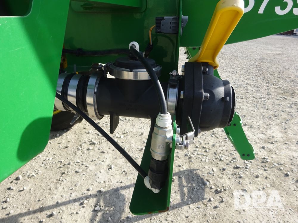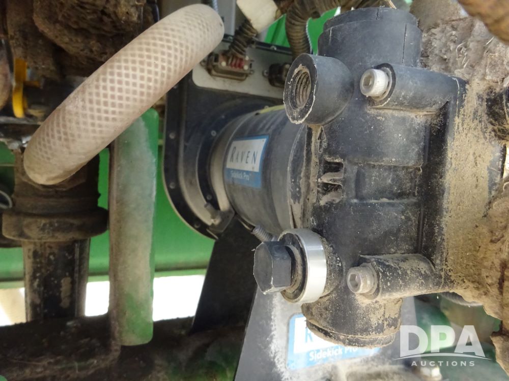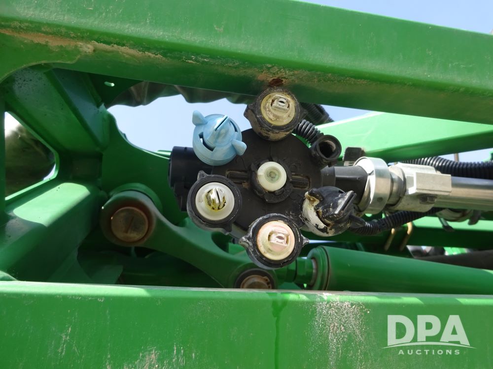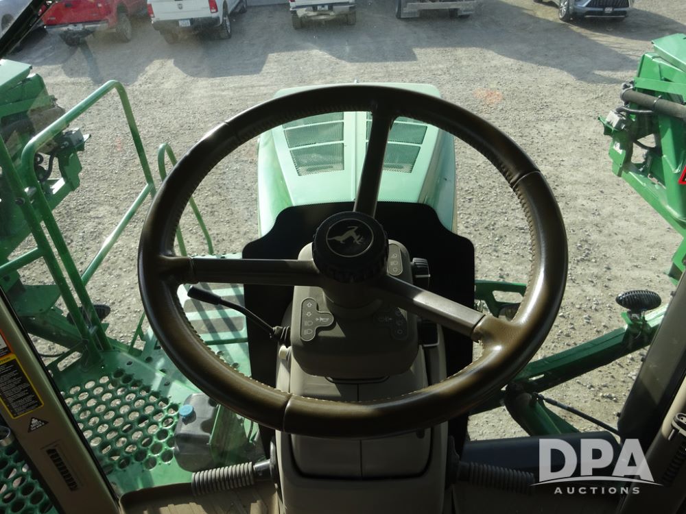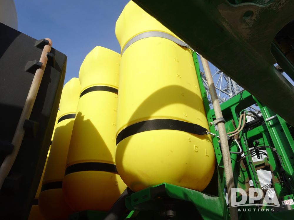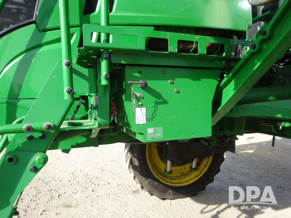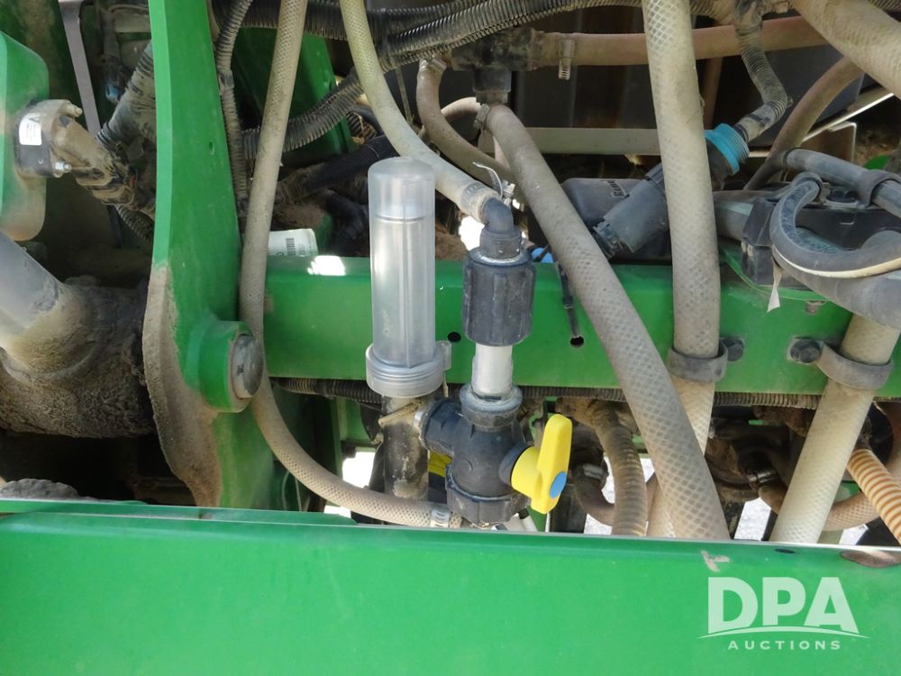 2020 John Deere R4038 Sprayer (PZ14369, Unit 3739), John Deere diesel engine (S/N RG6090U079131), hydrostatic transmission, air conditioning, heat, Am/Fm radio, leather seat, buddy seat, beacon lights, 1000 gallon stainless steel liquid system, 100' boom, rear poly rinse tank, 4 - 50 gallon poly direct injection tanks, 2 - Raven Sidekick Pro pumps, stainless steel chemical inductor, automatic solution control, front fill, Firestone IF380/90R46 tires, fenders, John Deere StarFire 6000 globe, John Deere monitor, shows 3,277 hours.