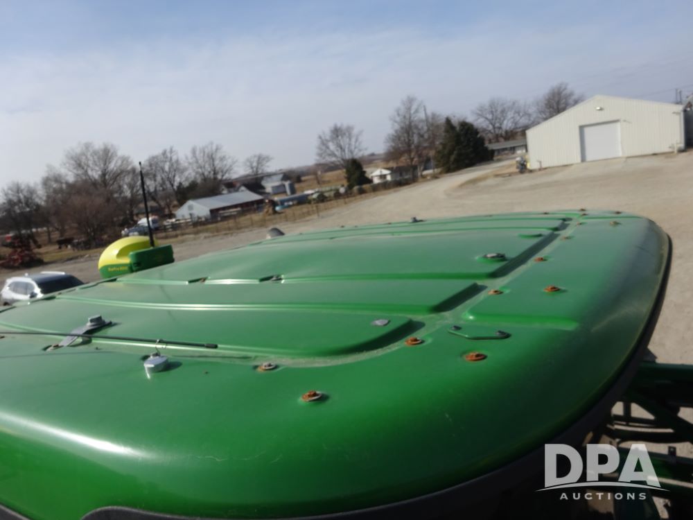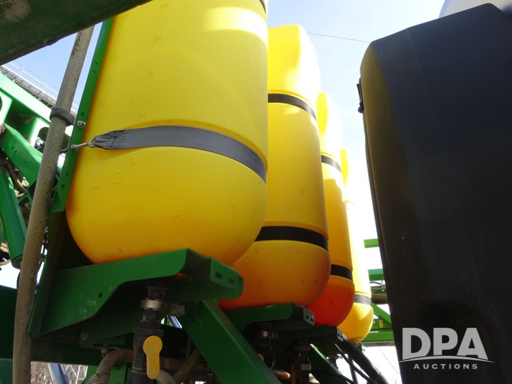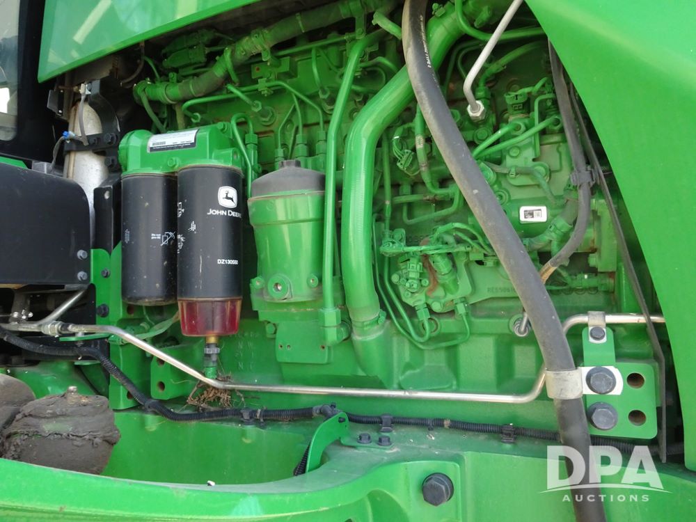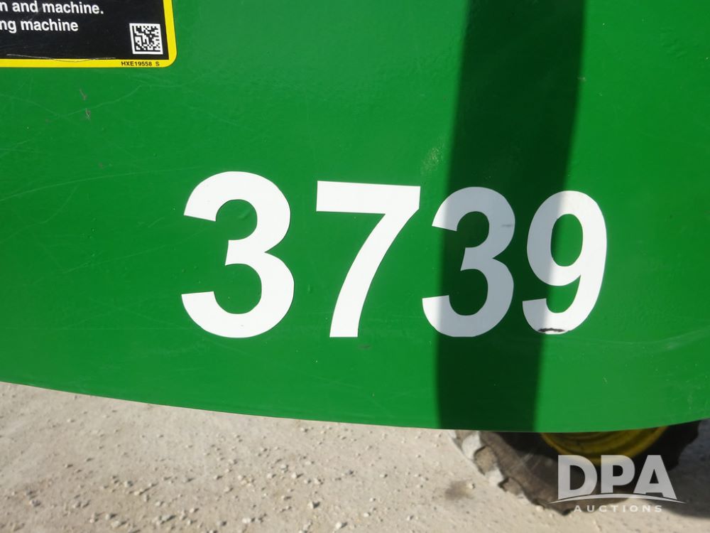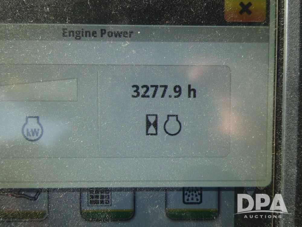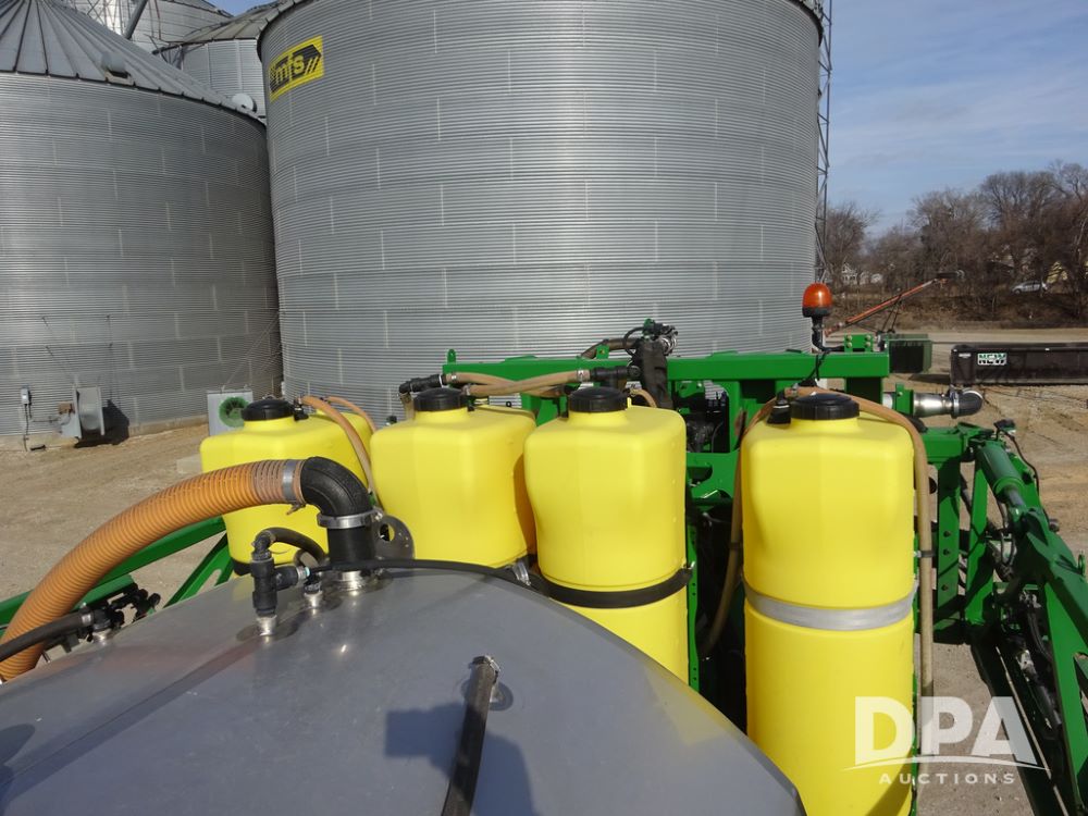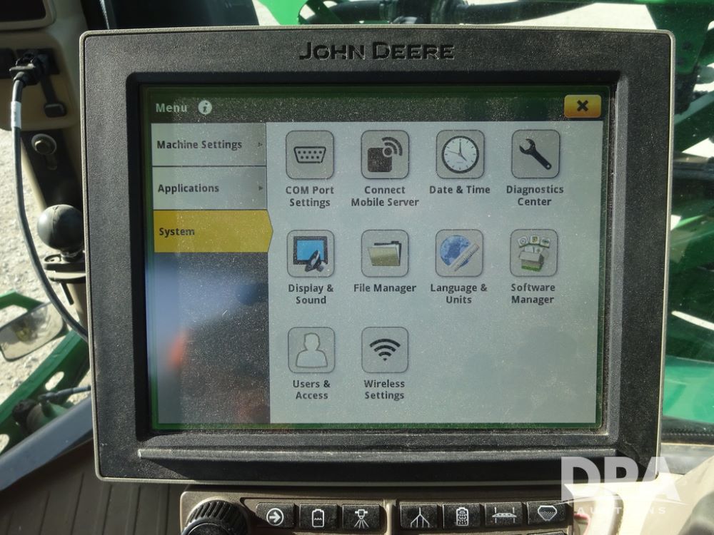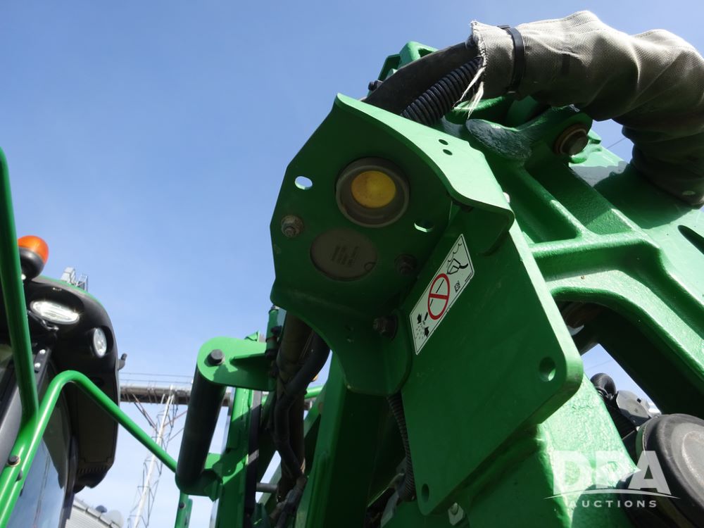 2020 John Deere R4038 Sprayer (PZ14369, Unit 3739), John Deere diesel engine (S/N RG6090U079131), hydrostatic transmission, air conditioning, heat, Am/Fm radio, leather seat, buddy seat, beacon lights, 1000 gallon stainless steel liquid system, 100' boom, rear poly rinse tank, 4 - 50 gallon poly direct injection tanks, 2 - Raven Sidekick Pro pumps, stainless steel chemical inductor, automatic solution control, front fill, Firestone IF380/90R46 tires, fenders, John Deere StarFire 6000 globe, John Deere monitor, shows 3,277 hours.