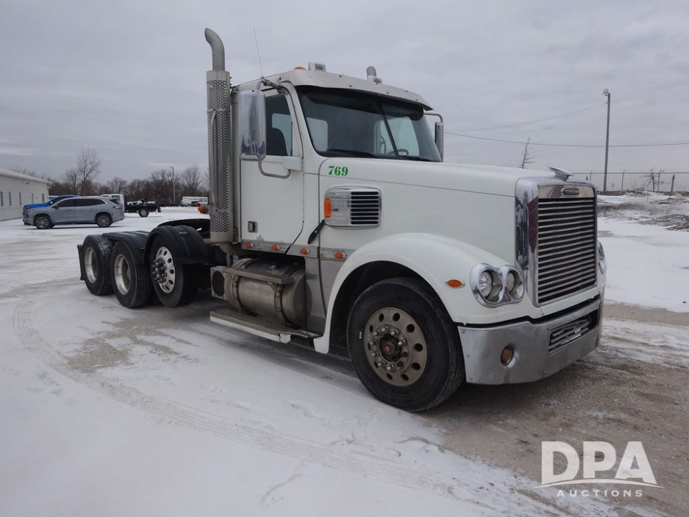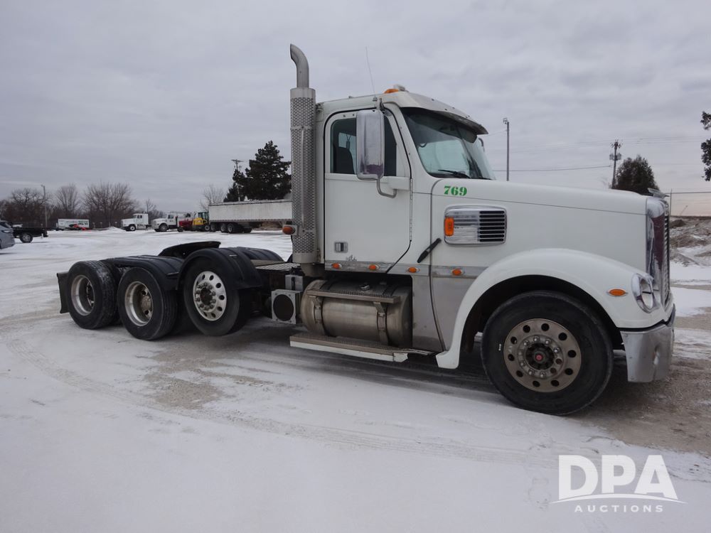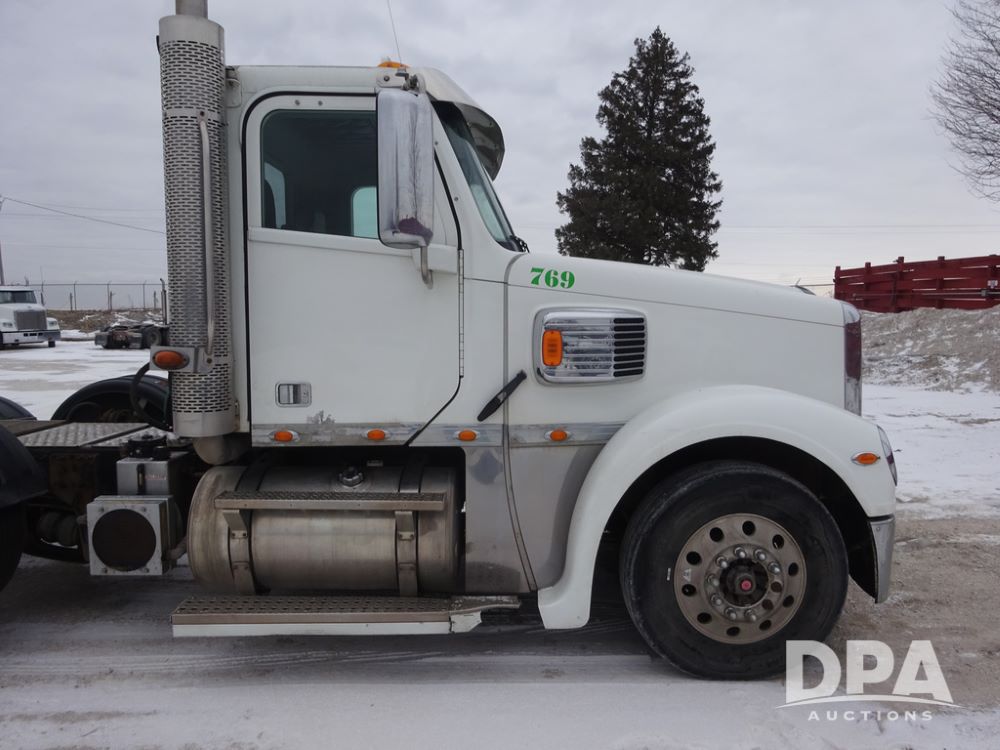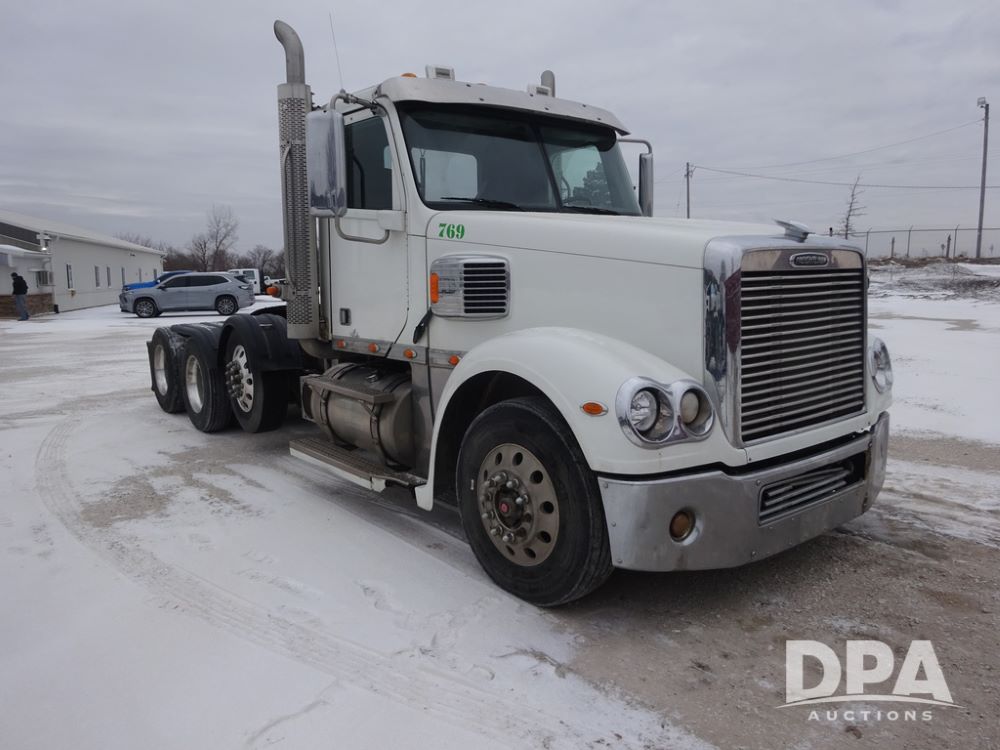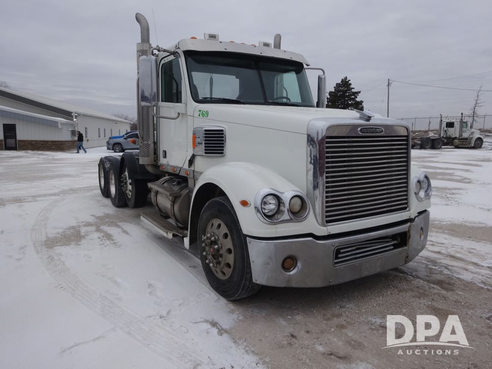 2018 Freightliner Coronado Day Cab Glider Truck (PZ14378, Unit 769), Detroit Series 60 diesel engine, Eaton Fuller 13 speed transmission, air conditioning, heat, Am/Fm CD radio, cruise control, engine brake, power windows & locks, 5th wheel, wet kit, tandem axle, full screw, air ride suspension, pusher axle, 275/80R22.5 tires, aluminum rims, quarter fenders, 295/75R22.5 pusher tires, fenders, shows 446,350 miles.