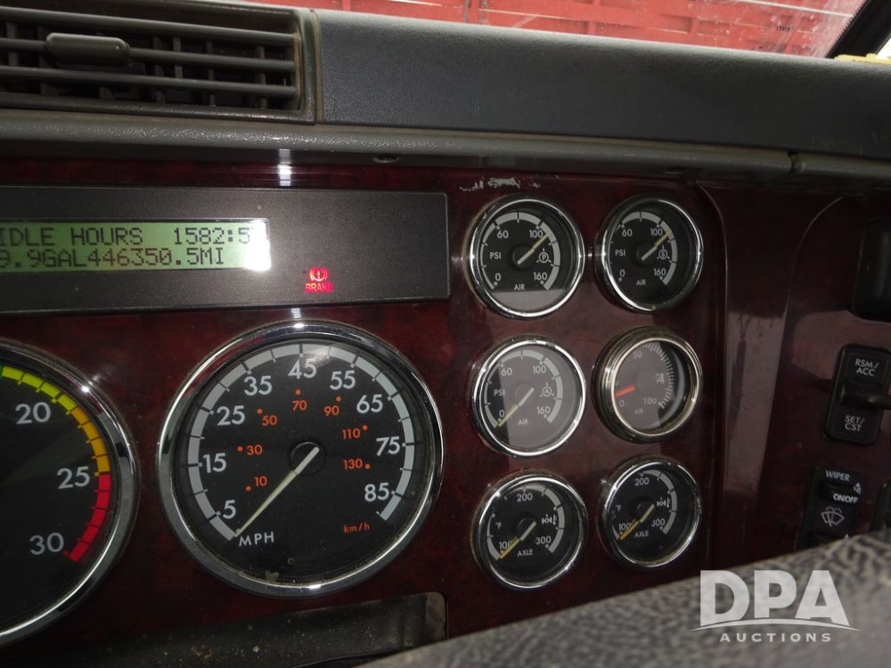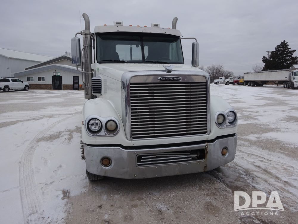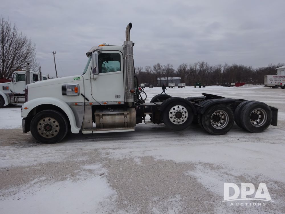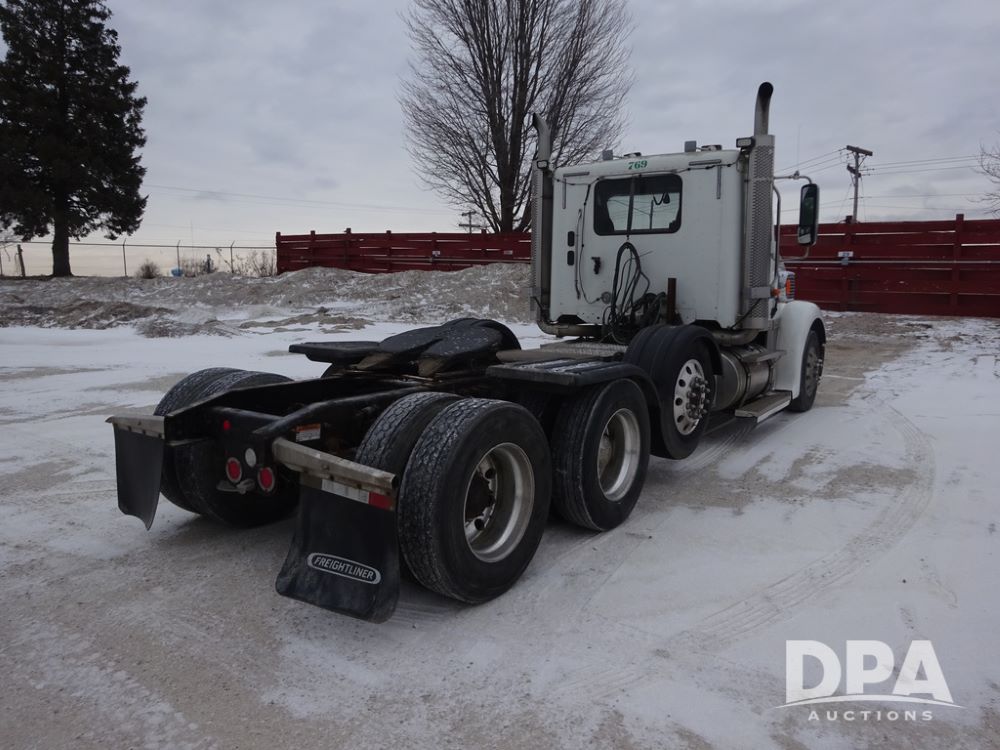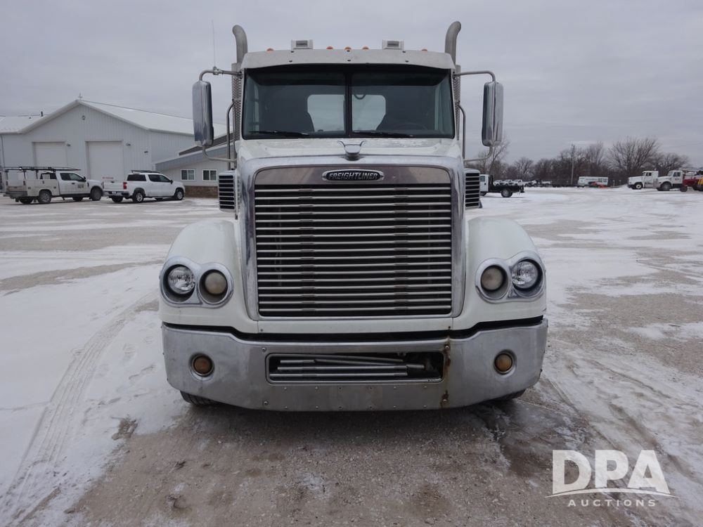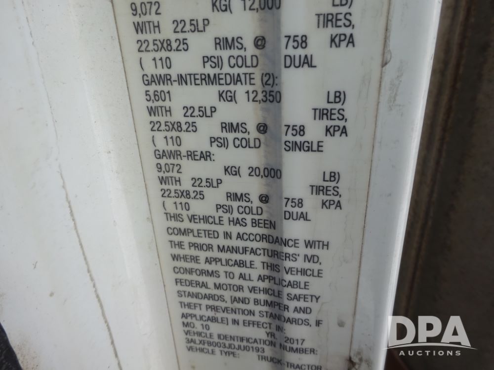 2018 Freightliner Coronado Day Cab Glider Truck (PZ14378, Unit 769), Detroit Series 60 diesel engine, Eaton Fuller 13 speed transmission, air conditioning, heat, Am/Fm CD radio, cruise control, engine brake, power windows & locks, 5th wheel, wet kit, tandem axle, full screw, air ride suspension, pusher axle, 275/80R22.5 tires, aluminum rims, quarter fenders, 295/75R22.5 pusher tires, fenders, shows 446,350 miles.