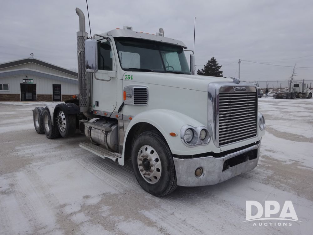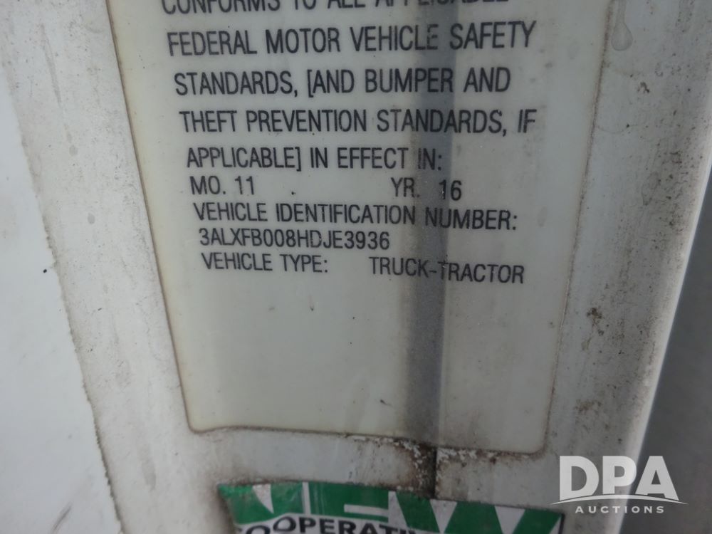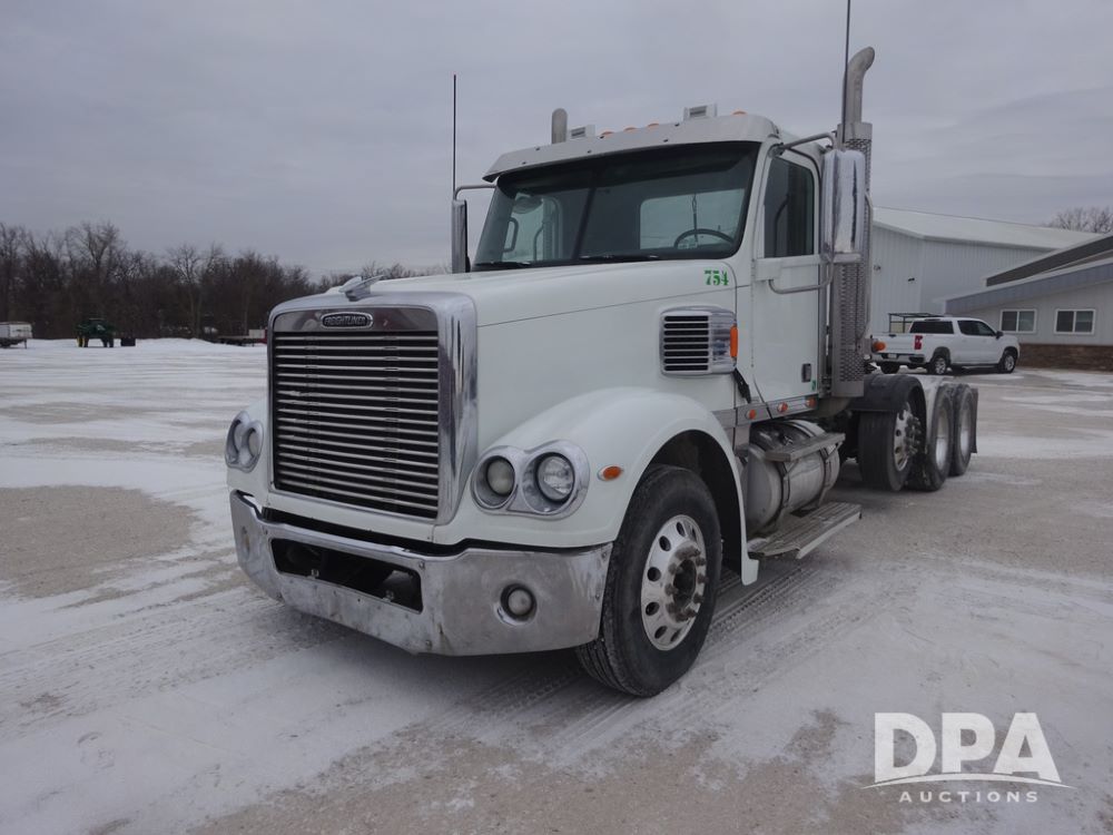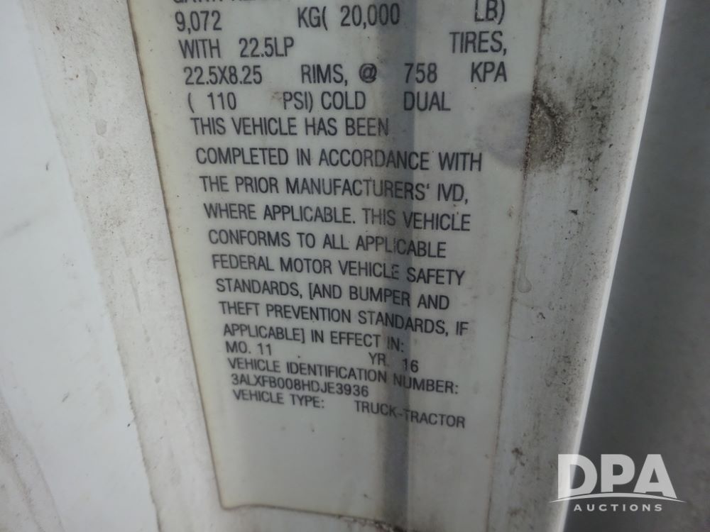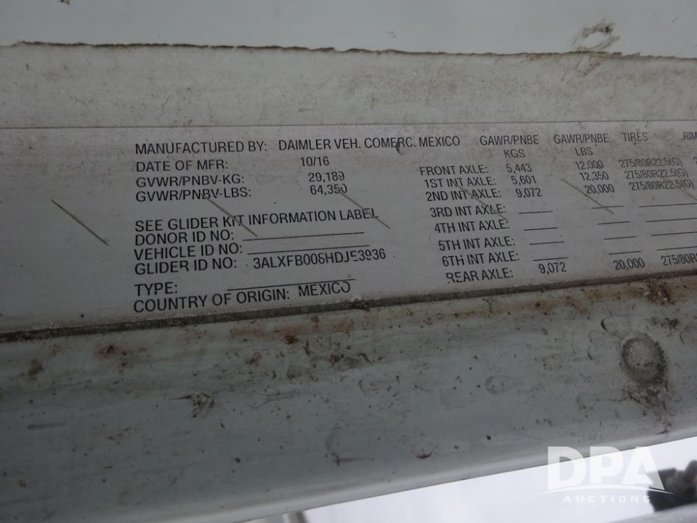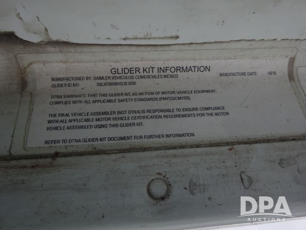 2017 Freightliner Coronado Day Cab Glider Truck (PZ14379, Unit 754), Detroit Series 60 diesel engine, Eaton Fuller 13 speed transmission, air conditioning, heat, Am/Fm CD radio, cruise control, engine brake, power windows & locks, 5th wheel, wet kit, tandem axle, full screw, air ride suspension, pusher axle, 295/75R22.5 front tires, aluminum rims, 275/80R22.5 rear tires, aluminum rims, quarter fenders, 275/70R22.5 pusher tires, aluminum rims, fenders, shows 524,698 miles.