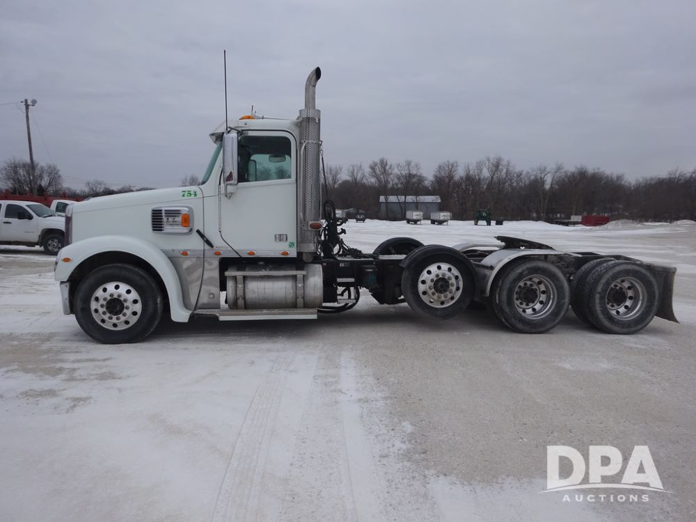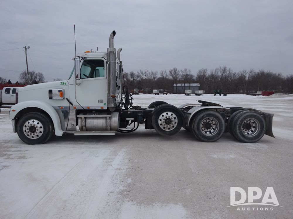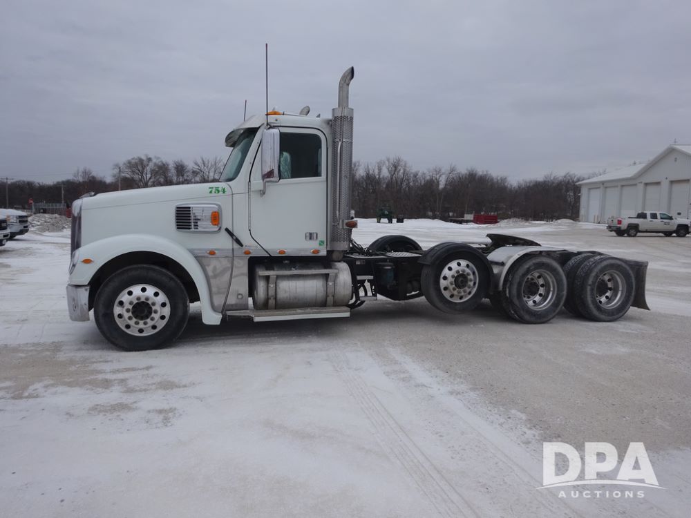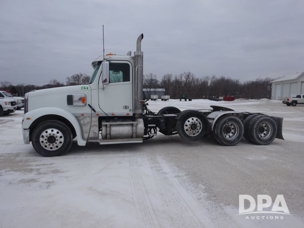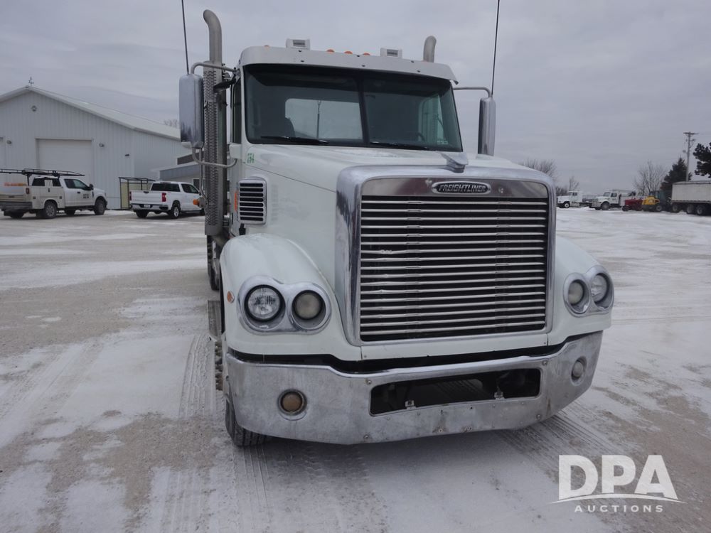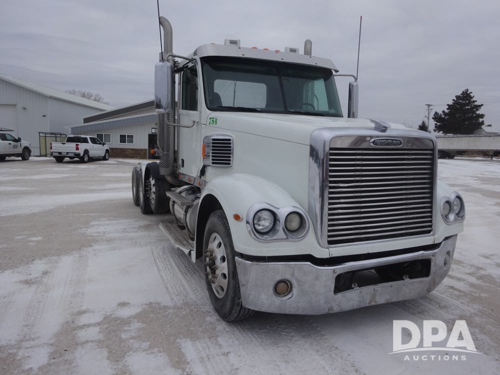 2017 Freightliner Coronado Day Cab Glider Truck (PZ14379, Unit 754), Detroit Series 60 diesel engine, Eaton Fuller 13 speed transmission, air conditioning, heat, Am/Fm CD radio, cruise control, engine brake, power windows & locks, 5th wheel, wet kit, tandem axle, full screw, air ride suspension, pusher axle, 295/75R22.5 front tires, aluminum rims, 275/80R22.5 rear tires, aluminum rims, quarter fenders, 275/70R22.5 pusher tires, aluminum rims, fenders, shows 524,698 miles.