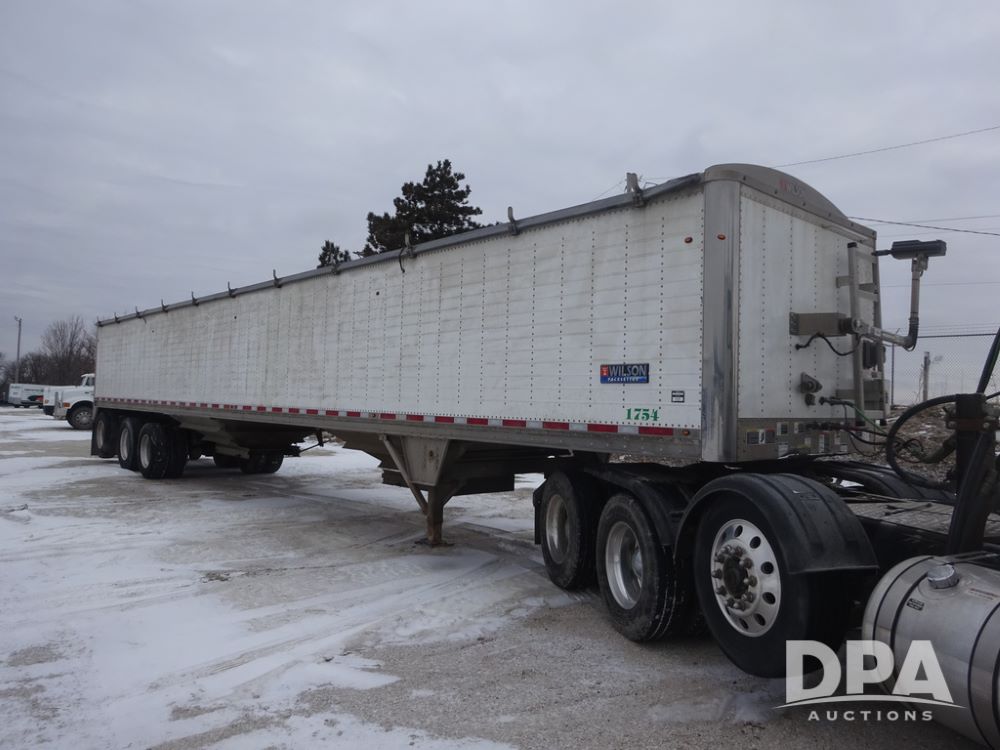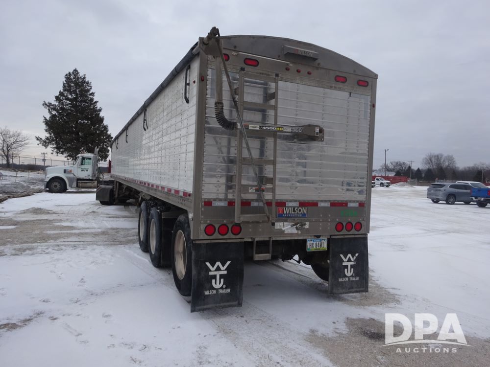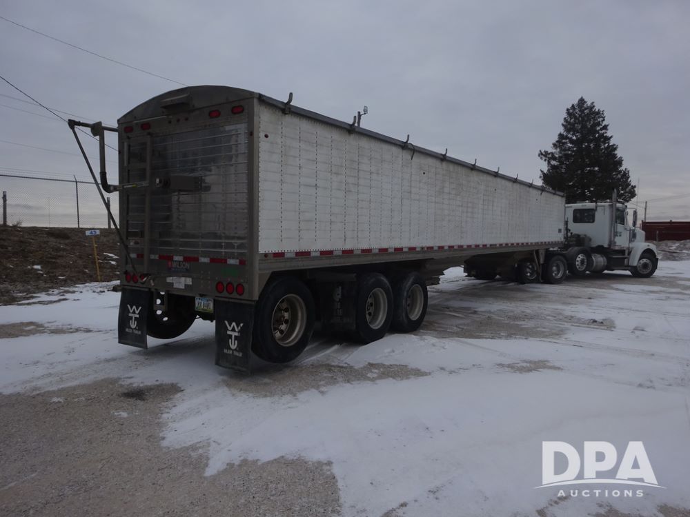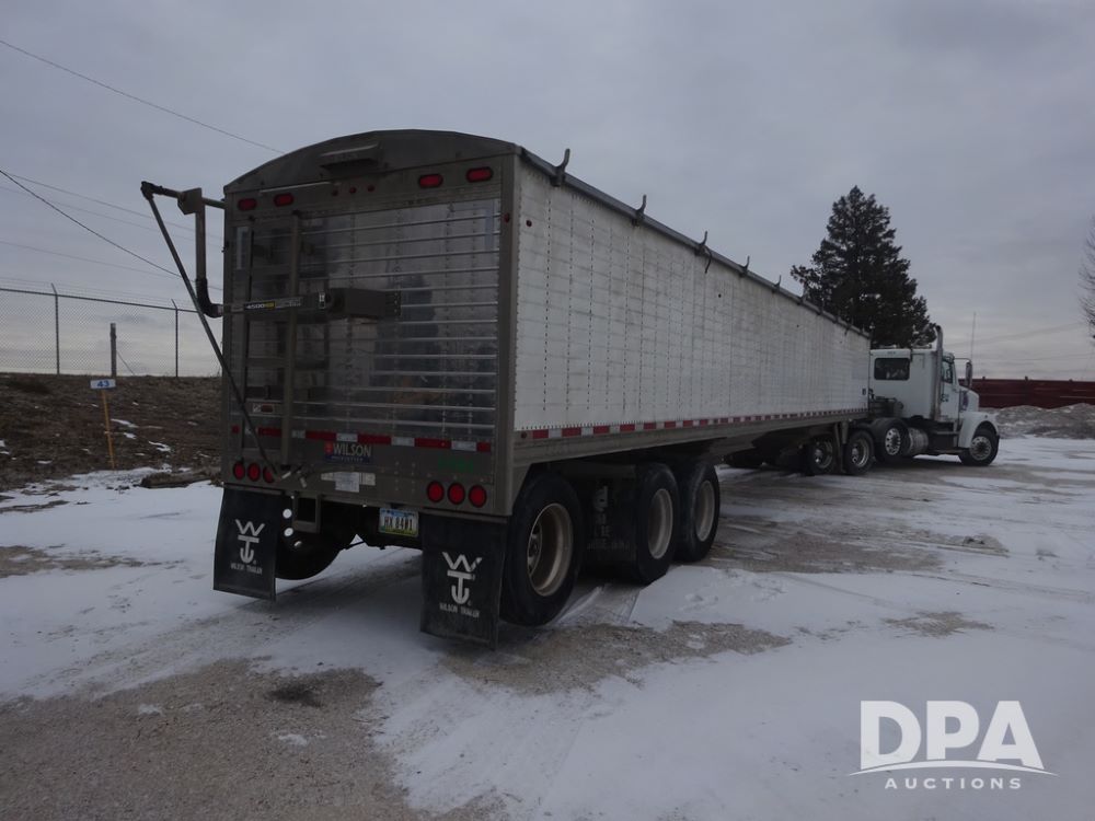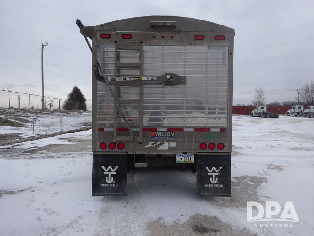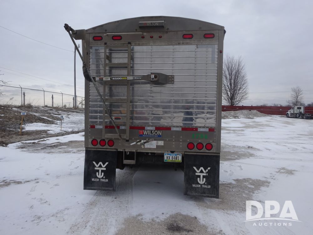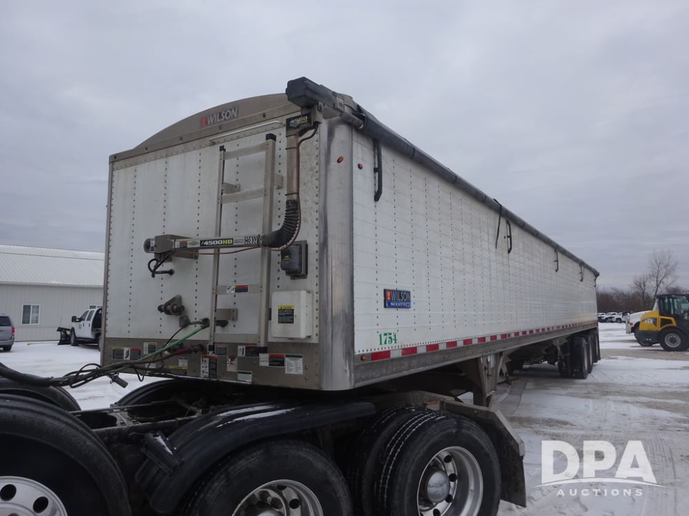 2019 Wilson PaceSetter Hopper Bottom Grain Trailer (PZ14382, Unit 1754), 2019 Wilson PaceSetter model DWH-650 aluminum hopper bottom grain trailer, ag hoppers, Shurco 4500 SeriesHD electric roll over tarp, triple axle, air ride suspension, 295/75R22.5 tires, aluminum rims.