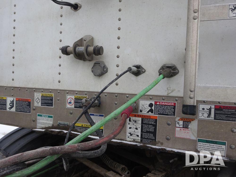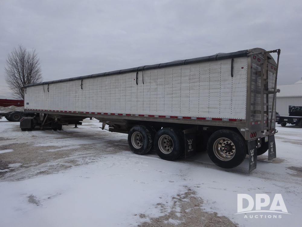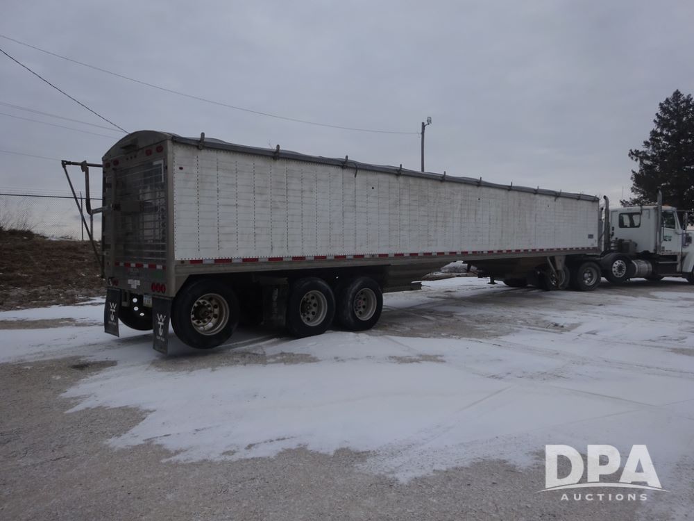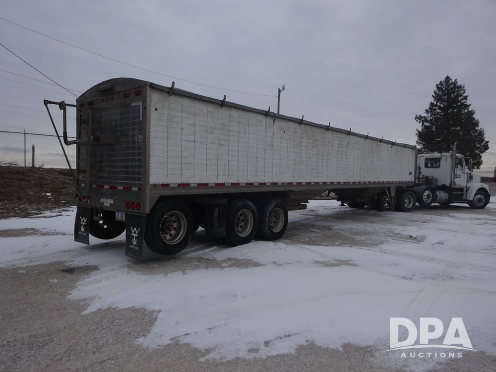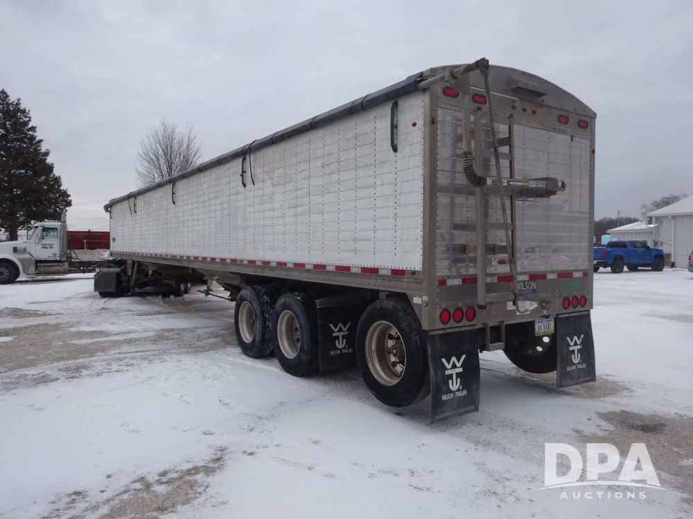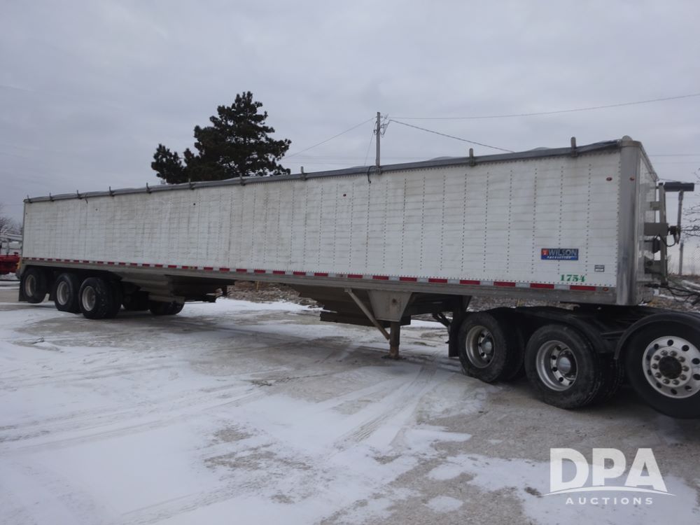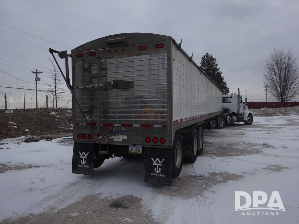2019 Wilson PaceSetter Hopper Bottom Grain Trailer (PZ14382, Unit 1754), 2019 Wilson PaceSetter model DWH-650 aluminum hopper bottom grain trailer, ag hoppers, Shurco 4500 SeriesHD electric roll over tarp, triple axle, air ride suspension, 295/75R22.5 tires, aluminum rims.