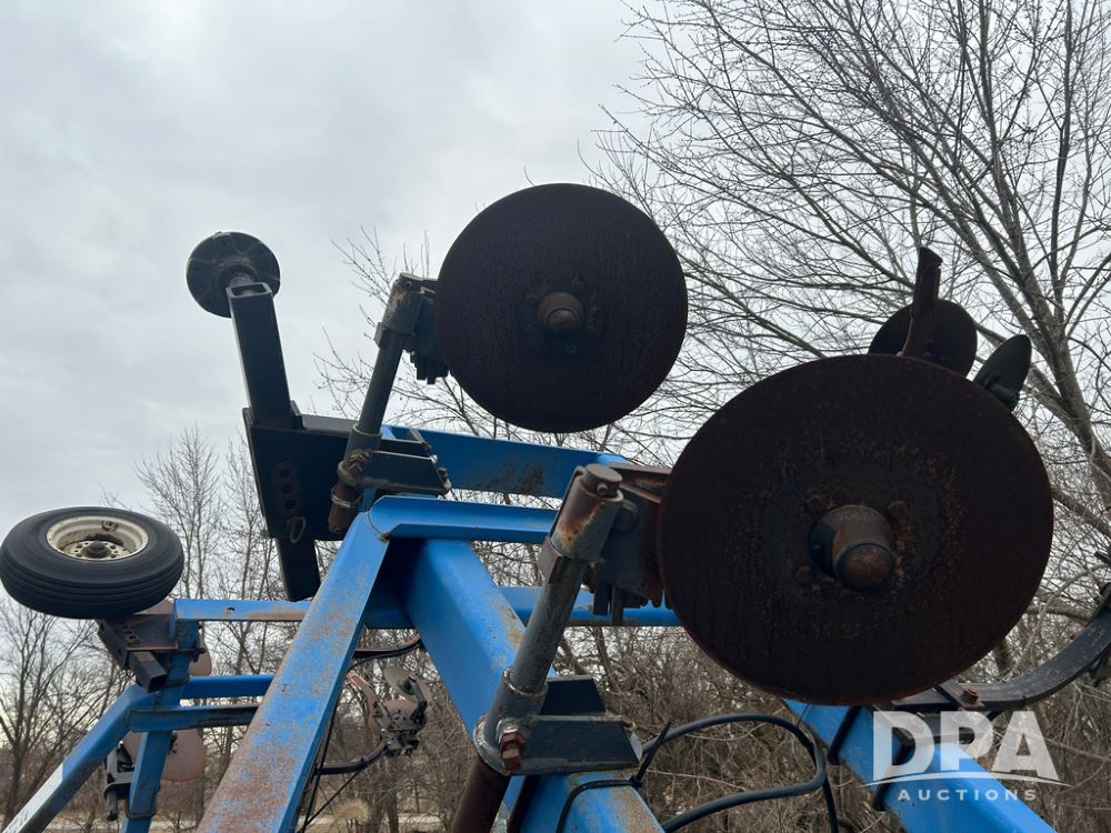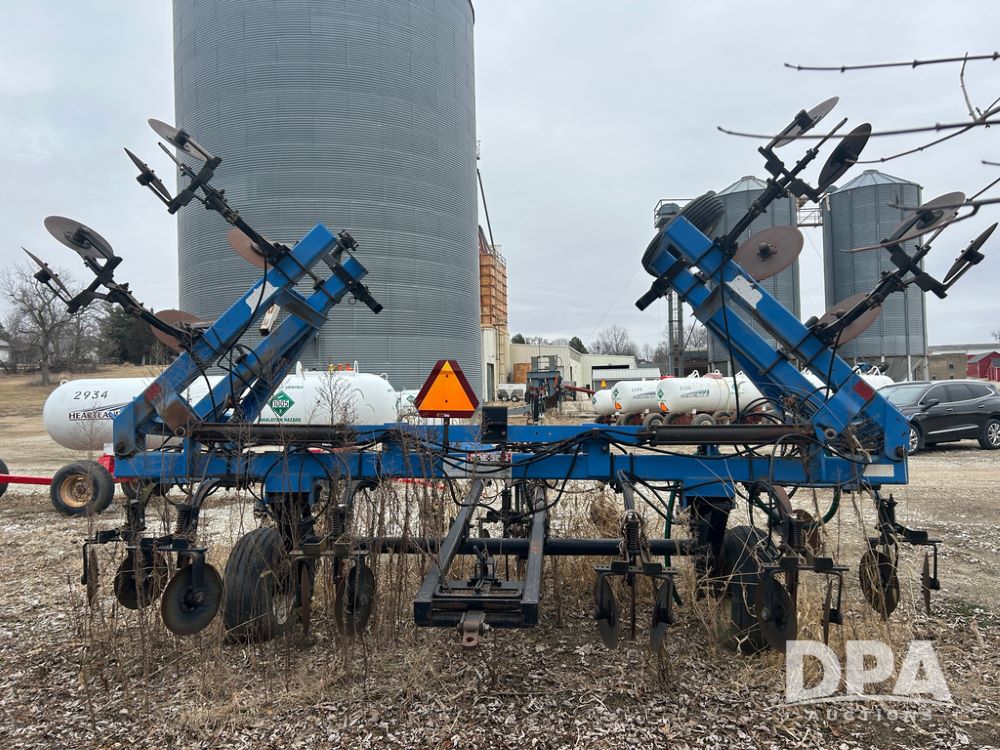 DMI 4250 Tool Bar (CP1532 Unit 766), 11 knife pull type tool bar, hitch will be put on, front ripple coulters, hydraulic wings, manual gauge wheels, double disc sealers.