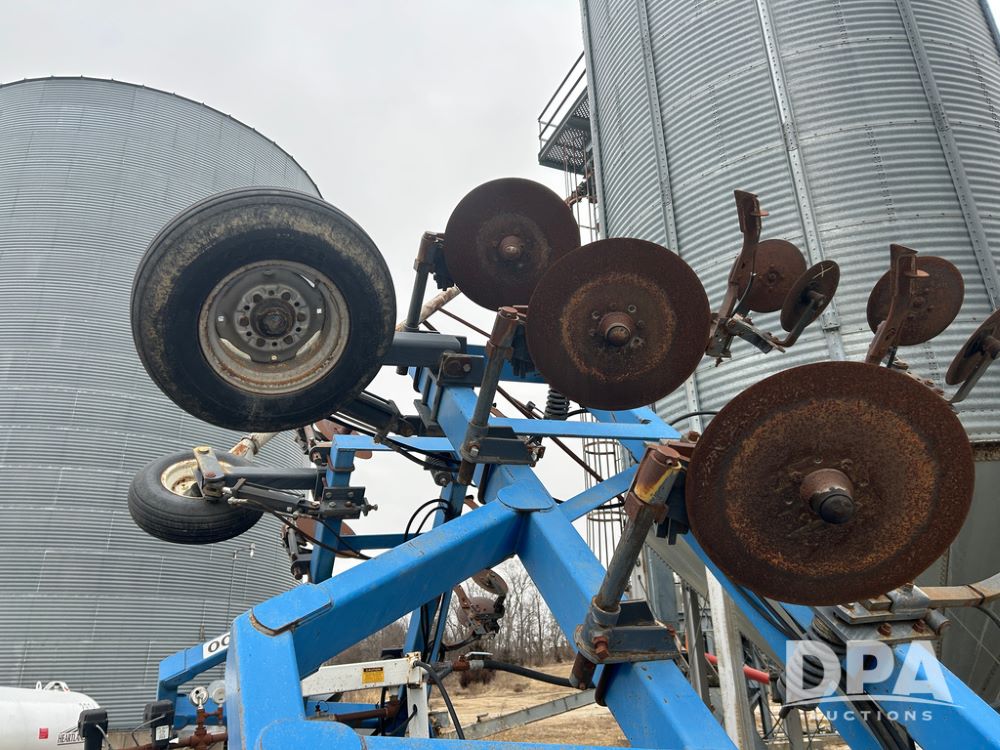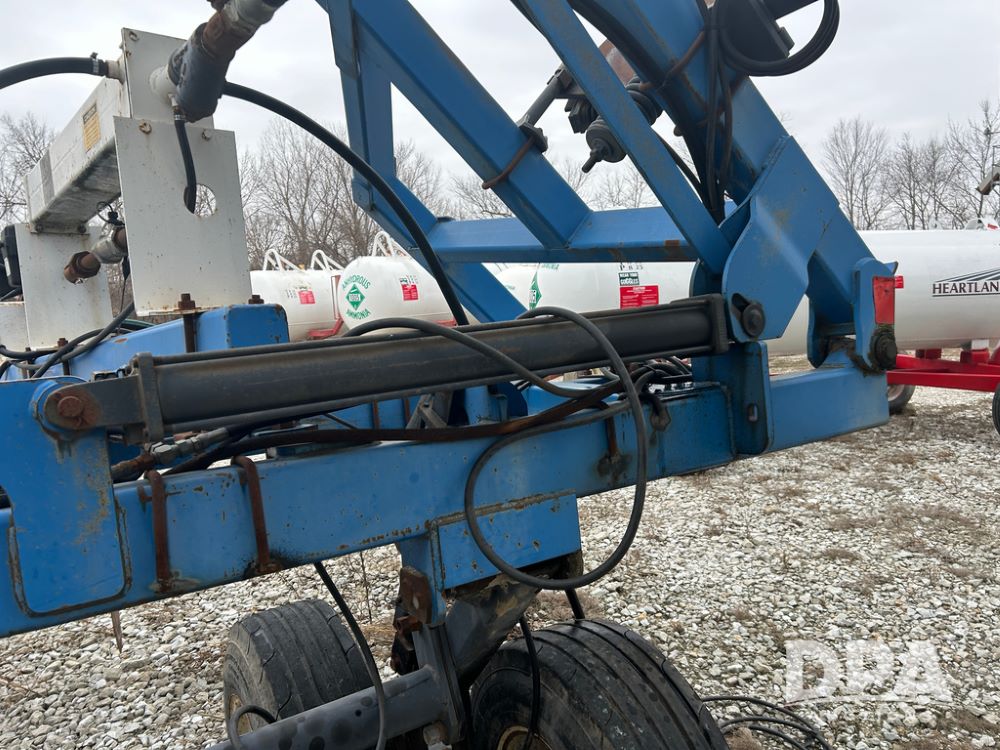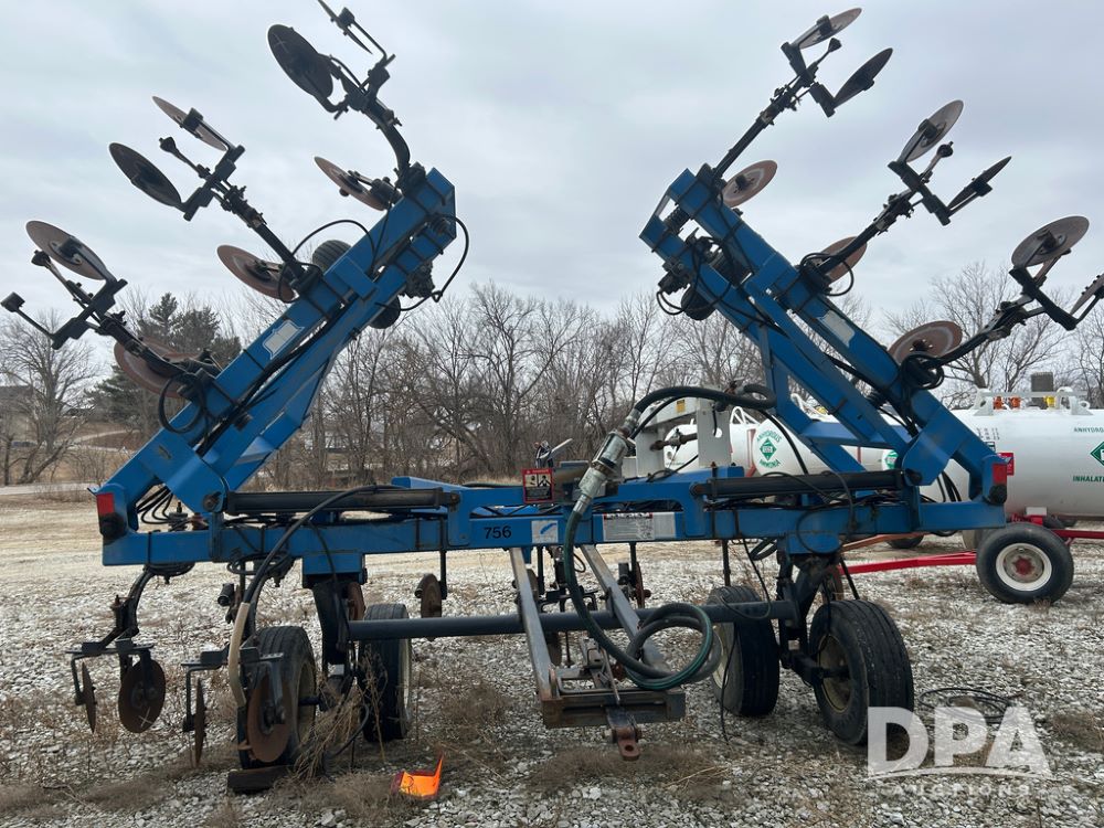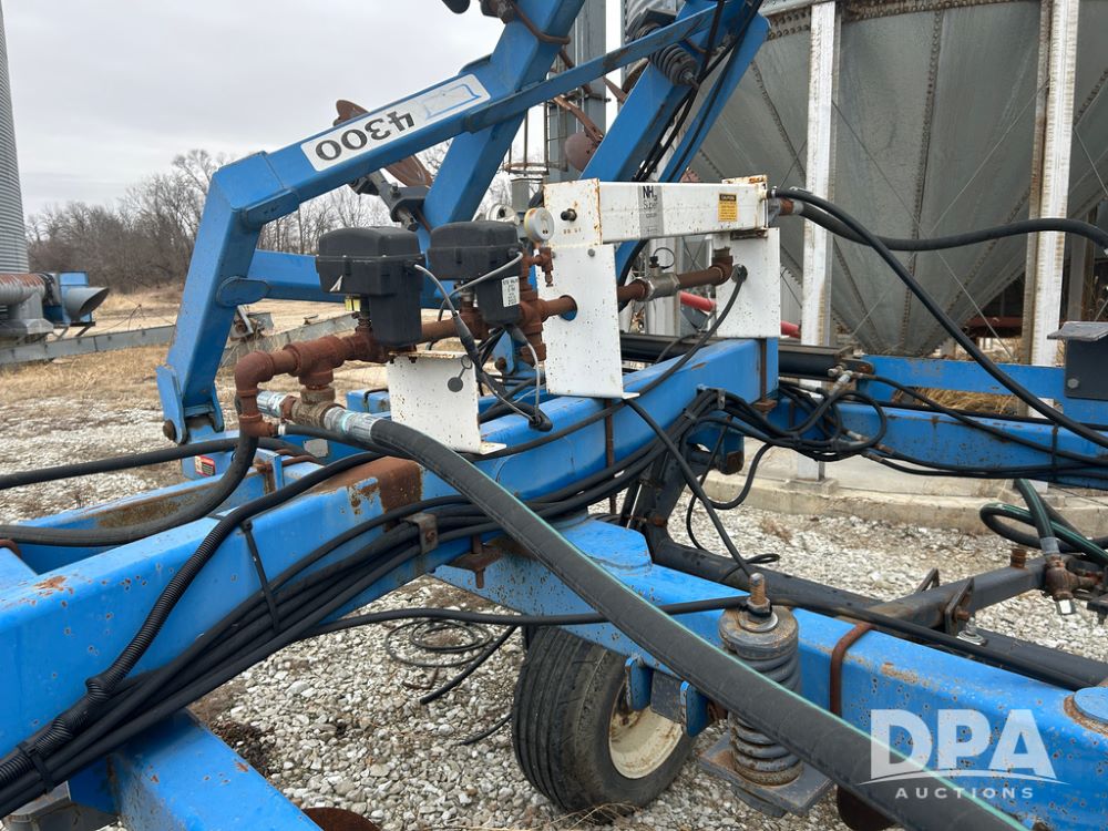 DMI 4300 Tool Bar (CP1533 Unit 756), 13 knife pull type tool bar, front coulters, double disc rear sealers, hydraulic wings and gauge wheels, Raven cooler, walking tandem main frame axle.