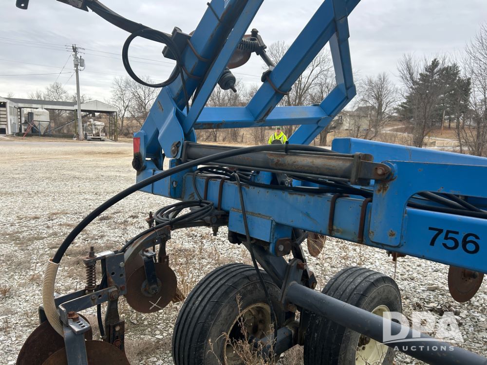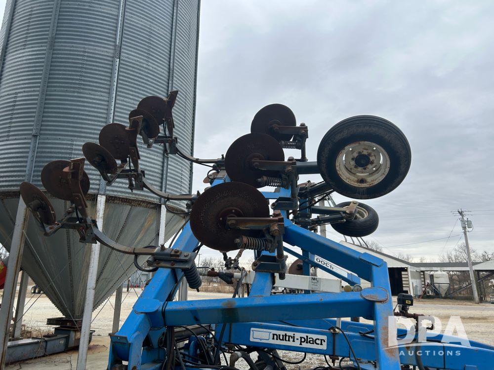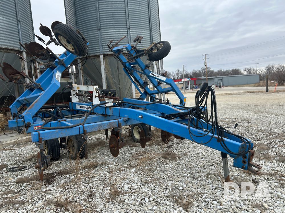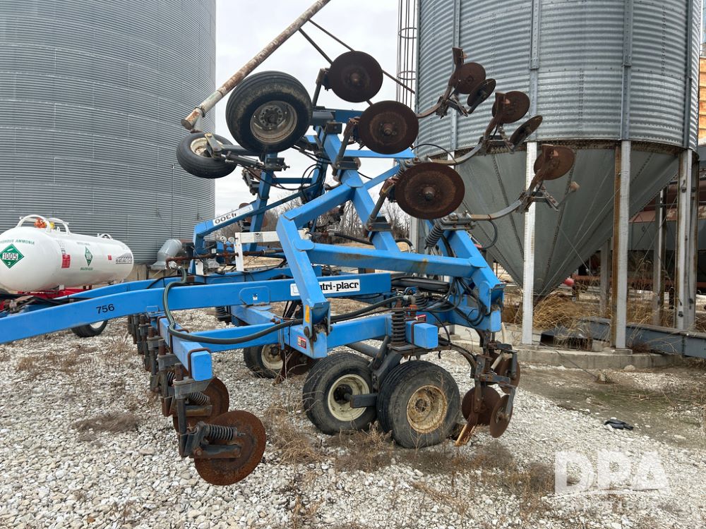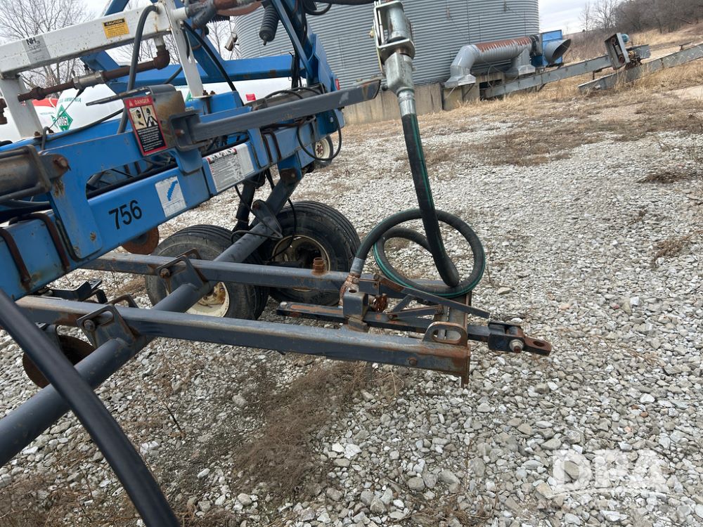 DMI 4300 Tool Bar (CP1533 Unit 756), 13 knife pull type tool bar, front coulters, double disc rear sealers, hydraulic wings and gauge wheels, Raven cooler, walking tandem main frame axle.