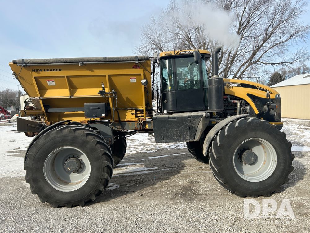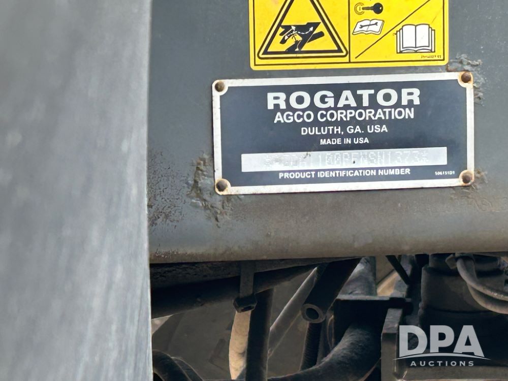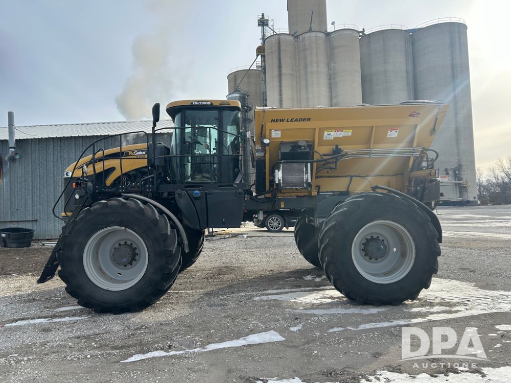 2015 RoGator 1100B Sprayer (CP1538 Unit 3083), diesel engine, hydrostatic drive, New Leader L4258 G4 stainless steel hydraulic dry spinner box, electric roll tarp, stainless steel Multiplier insert, belt/chain, Raven Viper IV controller, Raven Smart Trax, cab cam, cab heat/air conditioning, 710/70R38 flotation tires, shows 4,699 hours.