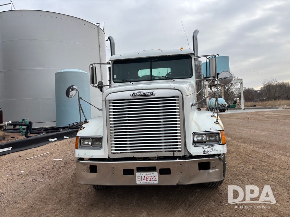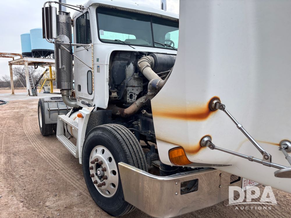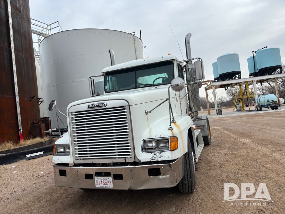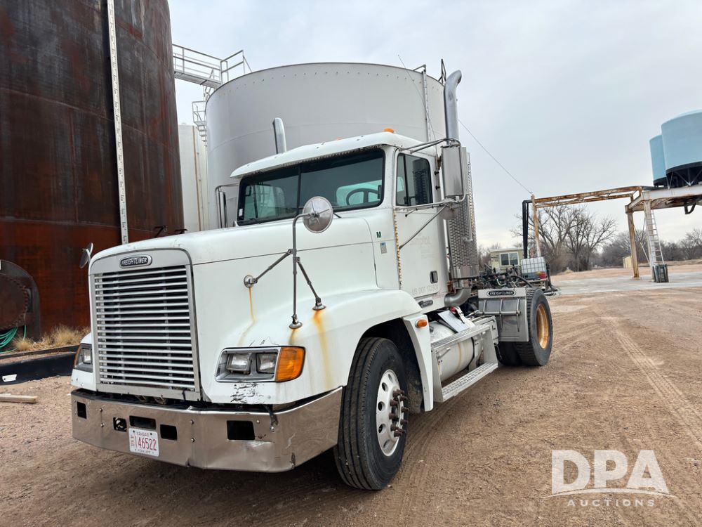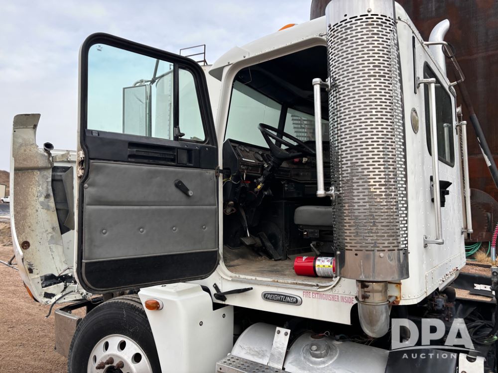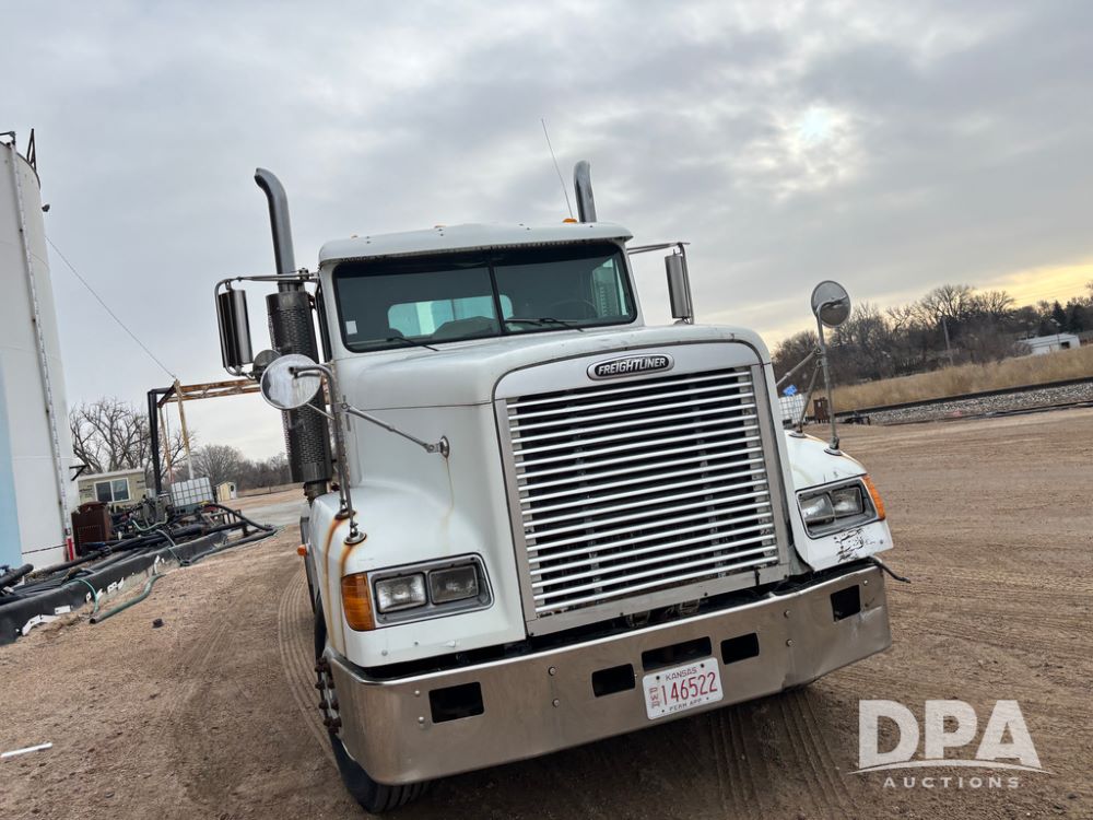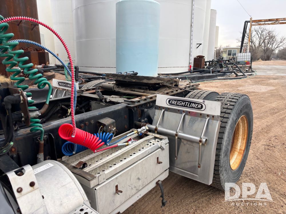 1999 Freightliner Truck (DR13139 Unit 153965), 12.7 liter Detroit diesel engine, Super 10 speed transmission, single axle, air ride suspension, air slide 5th wheel plate, dual aluminum fuel tanks, dual chrome stacks, engine brake, odometer reads 806,699 miles.