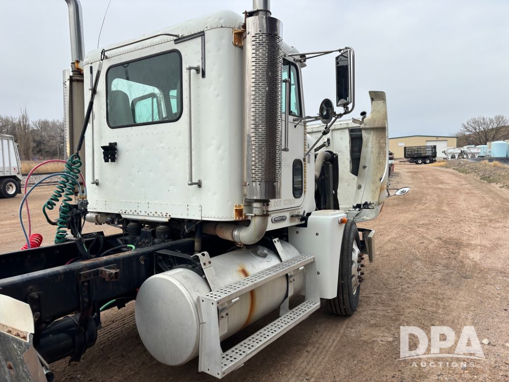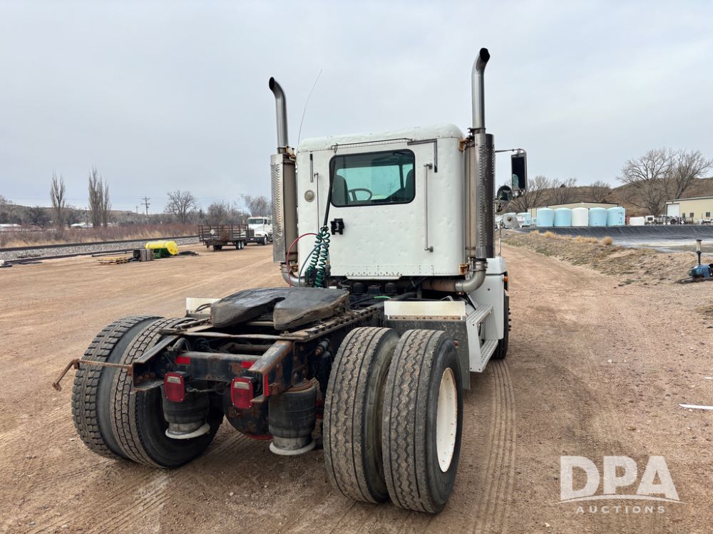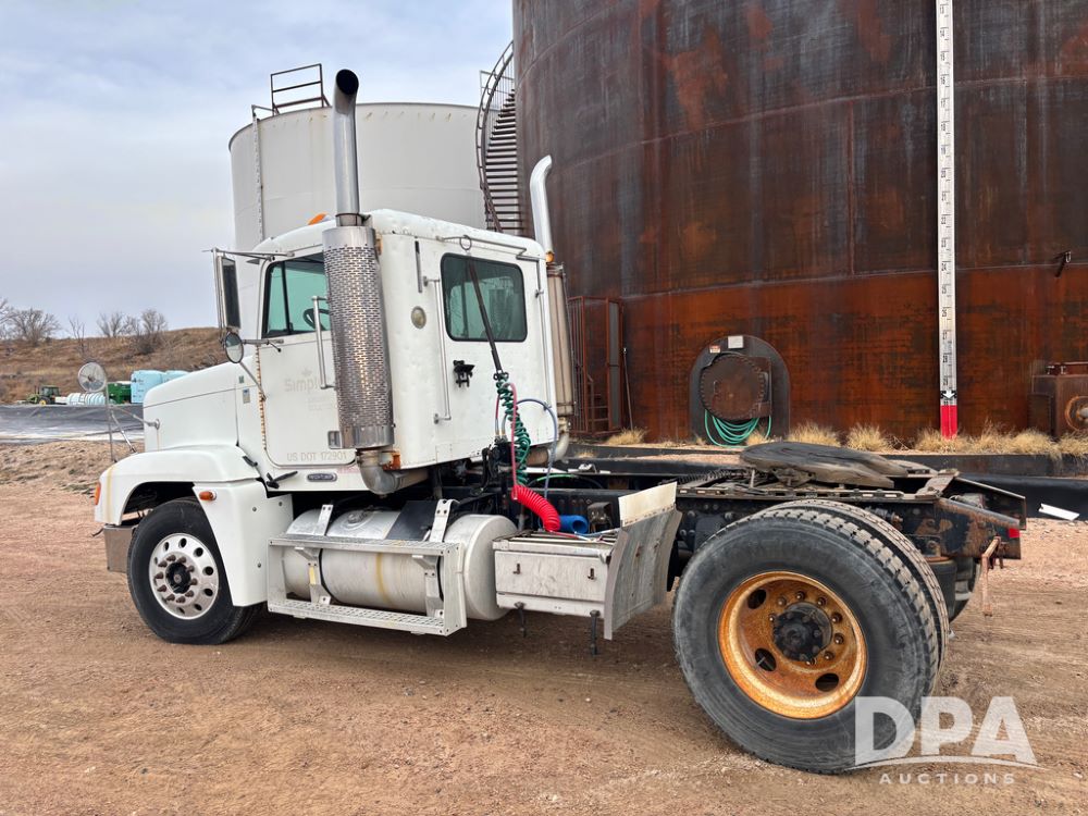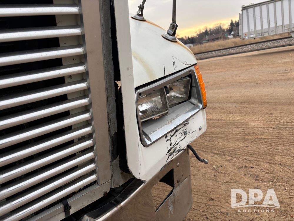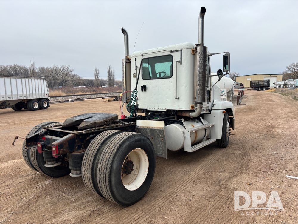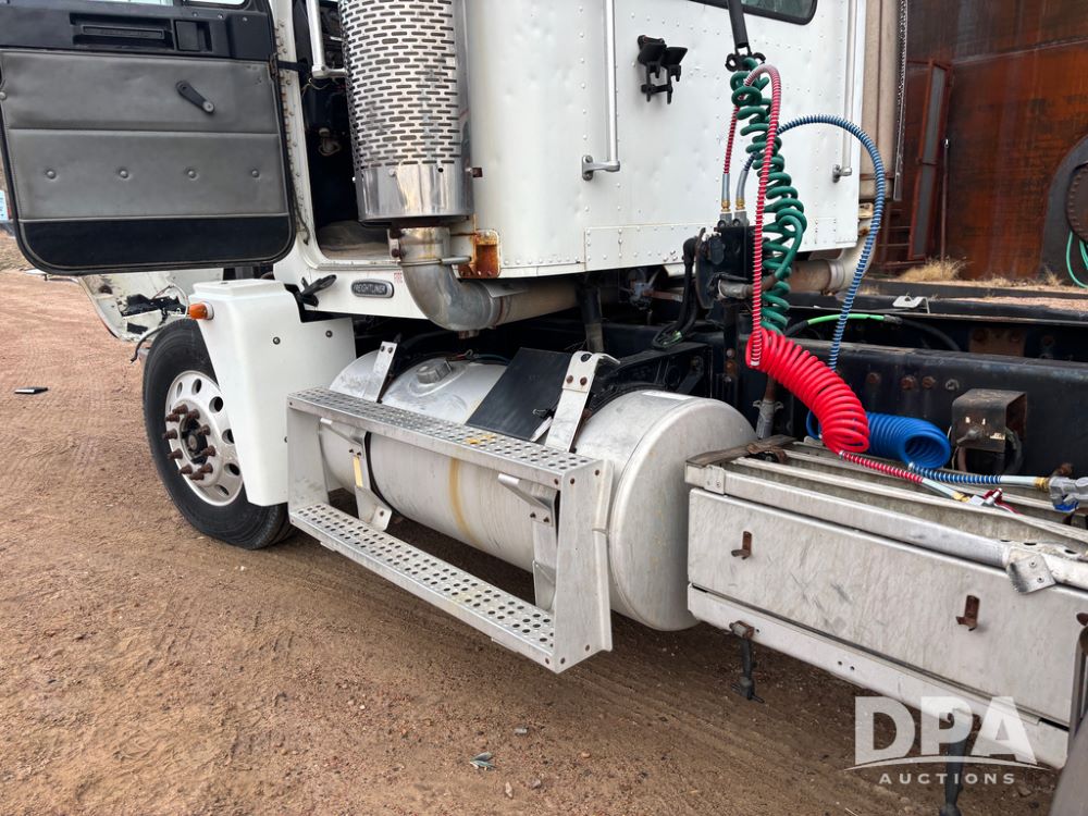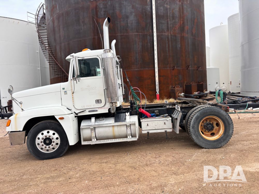 1999 Freightliner Truck (DR13139 Unit 153965), 12.7 liter Detroit diesel engine, Super 10 speed transmission, single axle, air ride suspension, air slide 5th wheel plate, dual aluminum fuel tanks, dual chrome stacks, engine brake, odometer reads 806,699 miles.