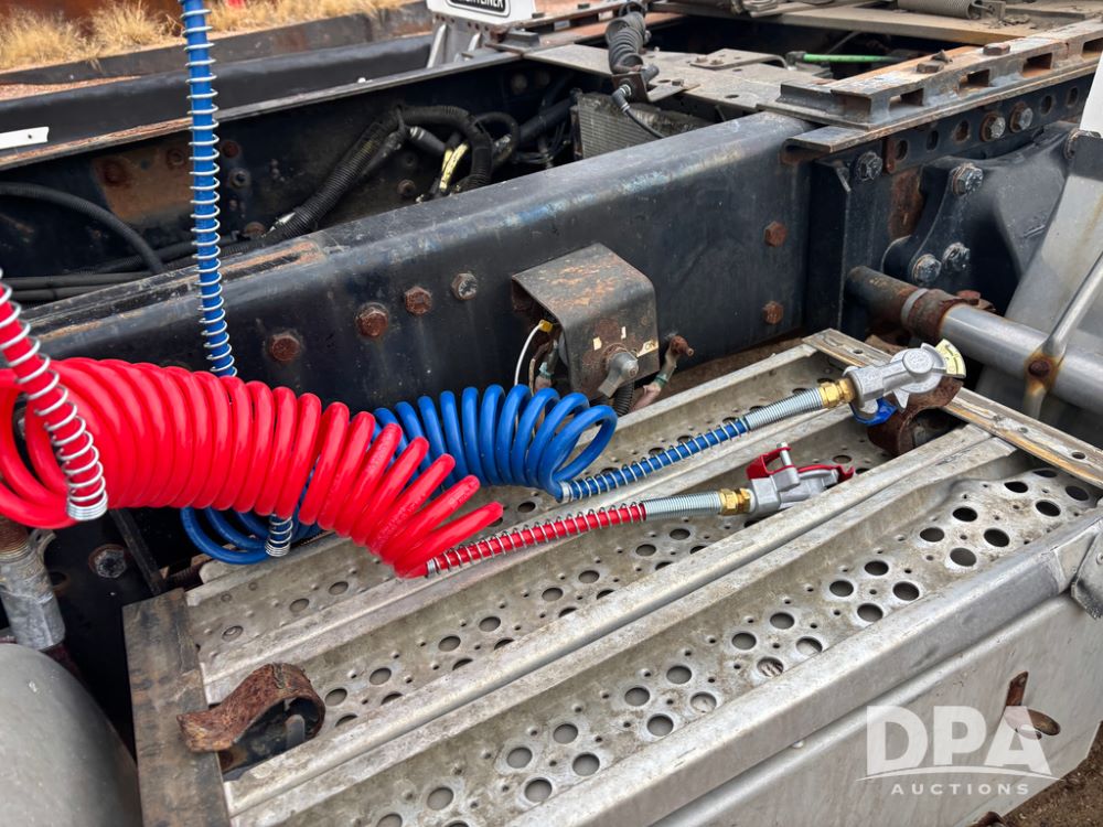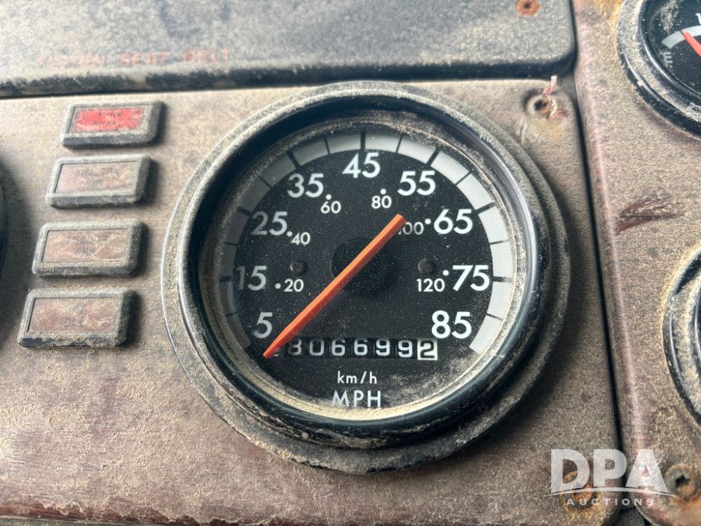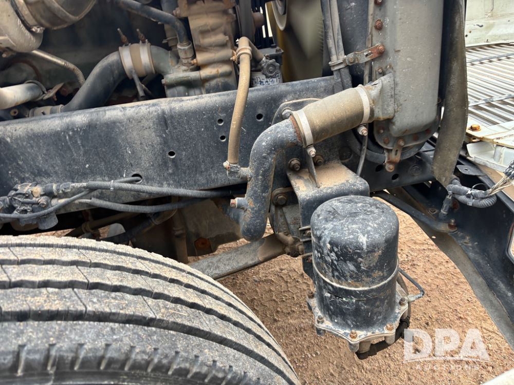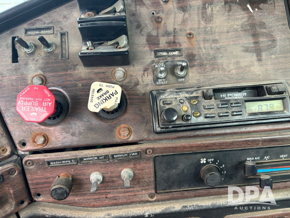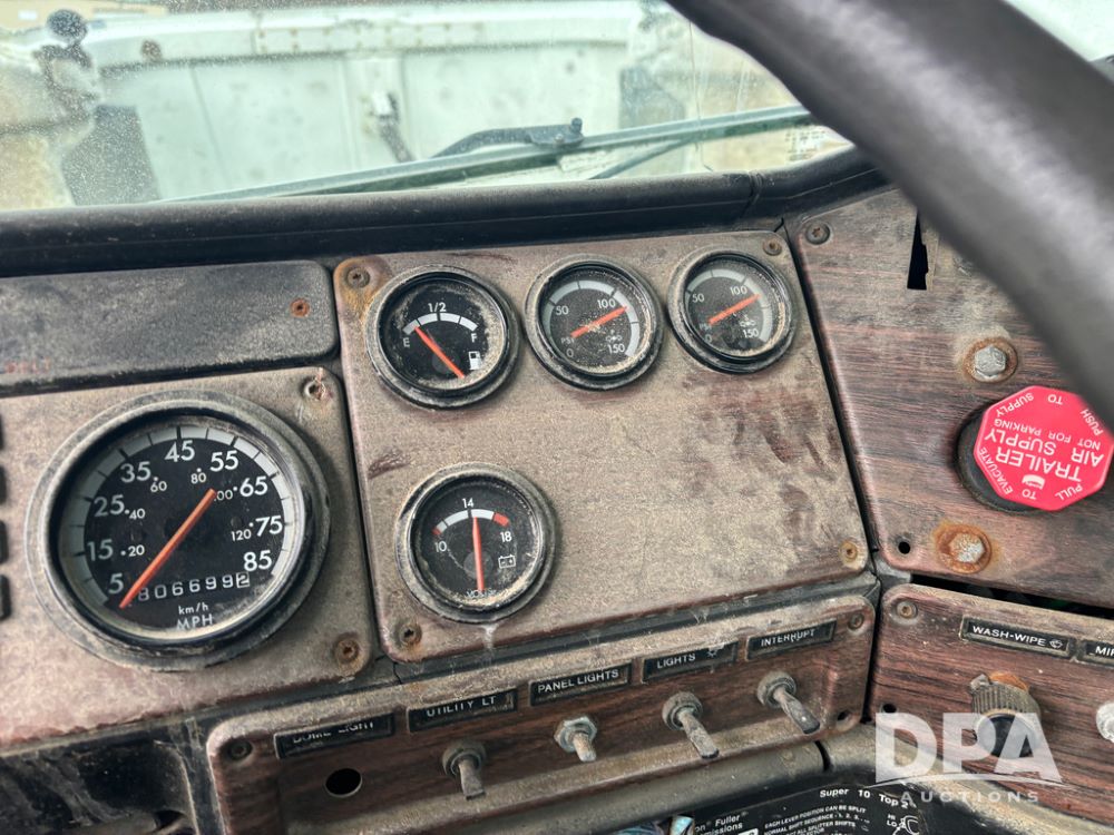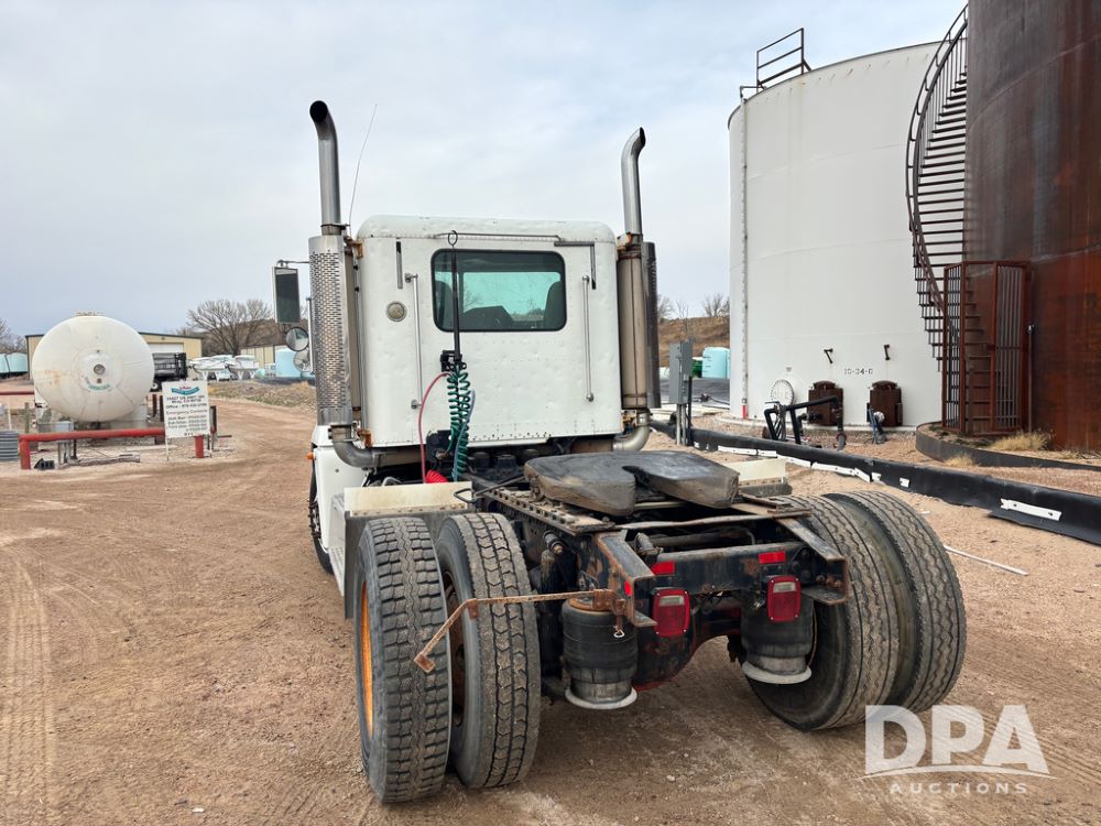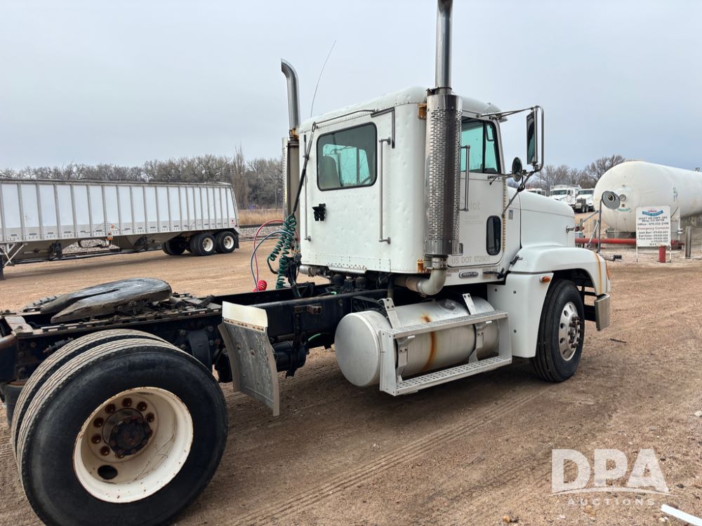 1999 Freightliner Truck (DR13139 Unit 153965), 12.7 liter Detroit diesel engine, Super 10 speed transmission, single axle, air ride suspension, air slide 5th wheel plate, dual aluminum fuel tanks, dual chrome stacks, engine brake, odometer reads 806,699 miles.