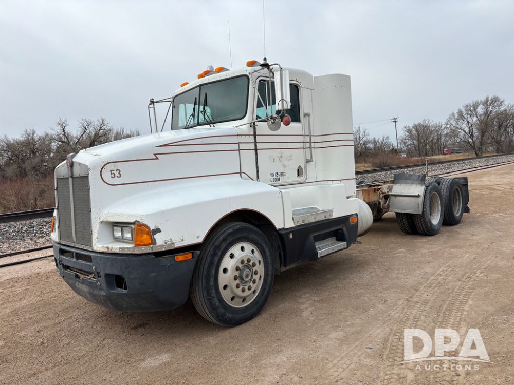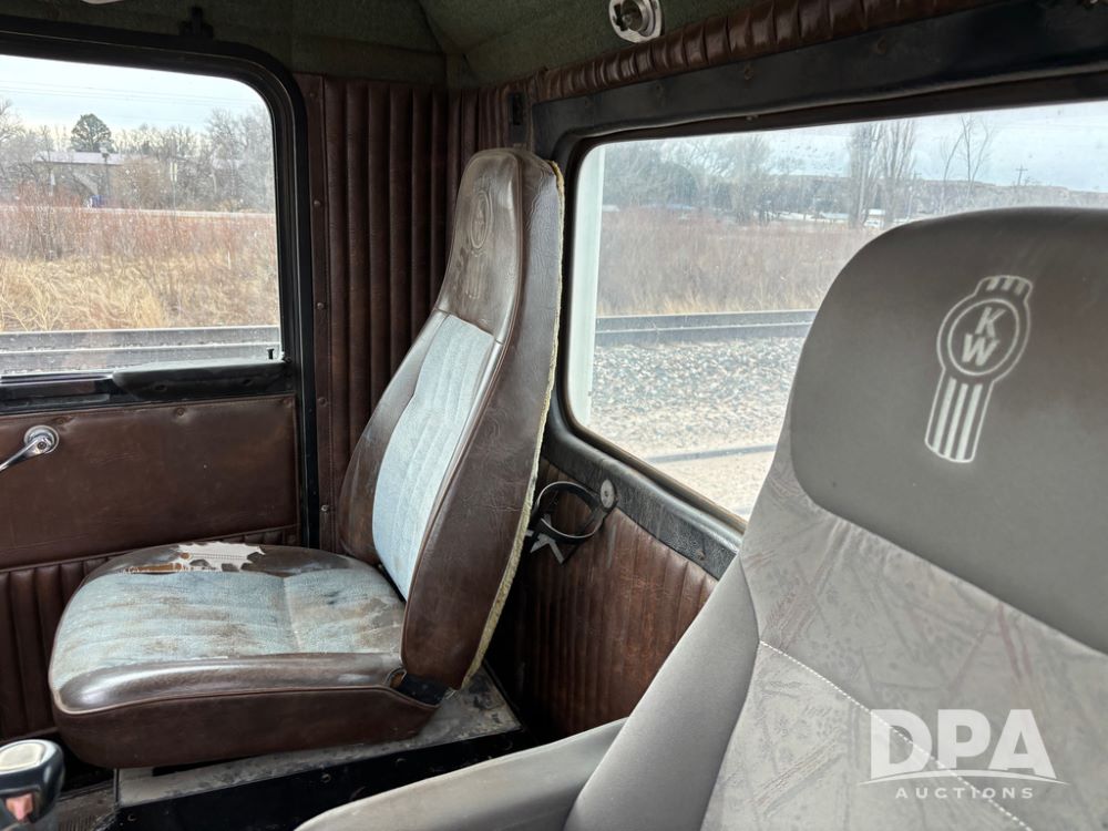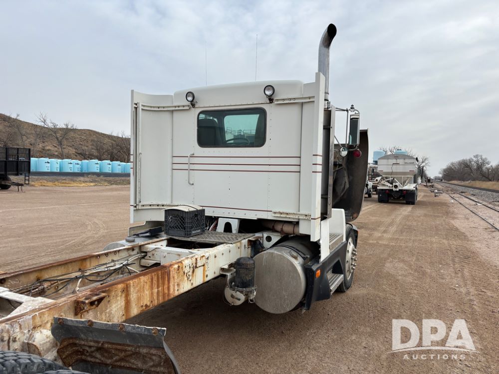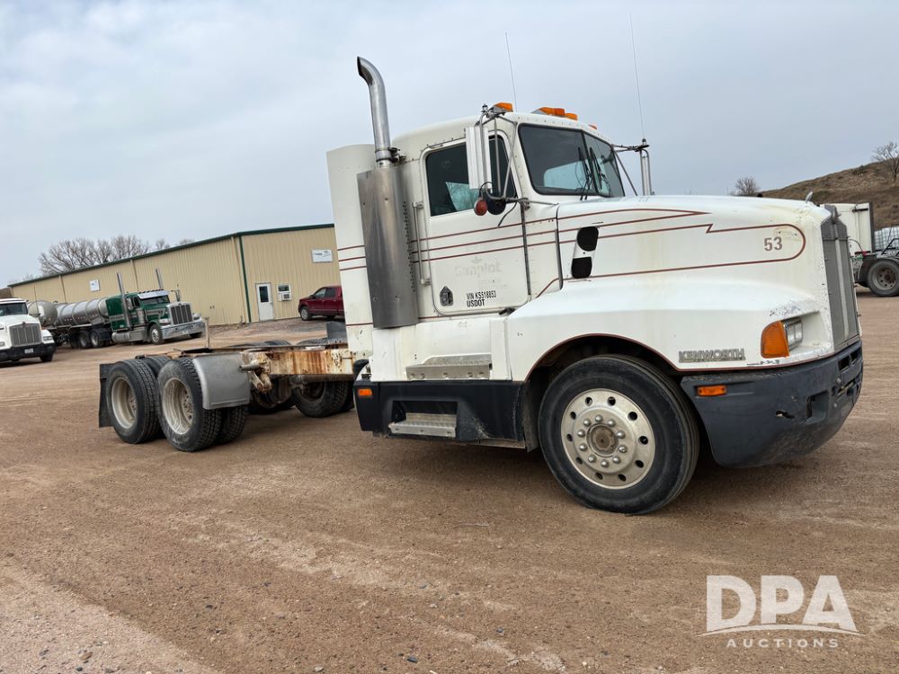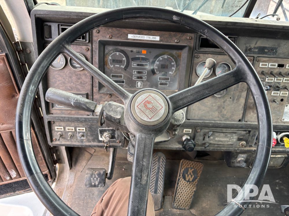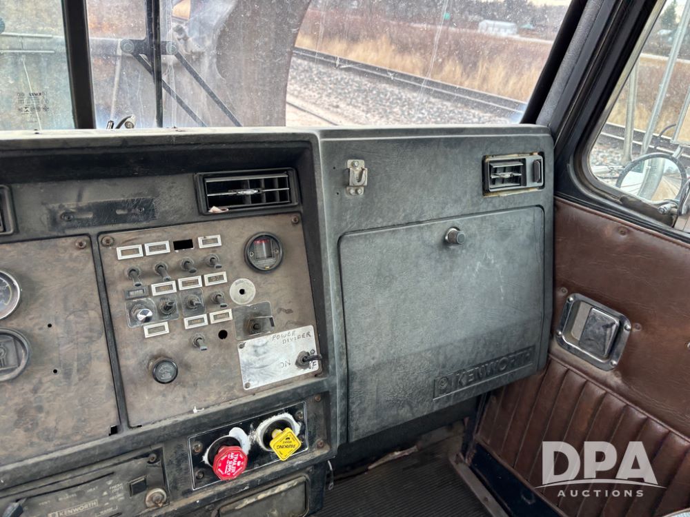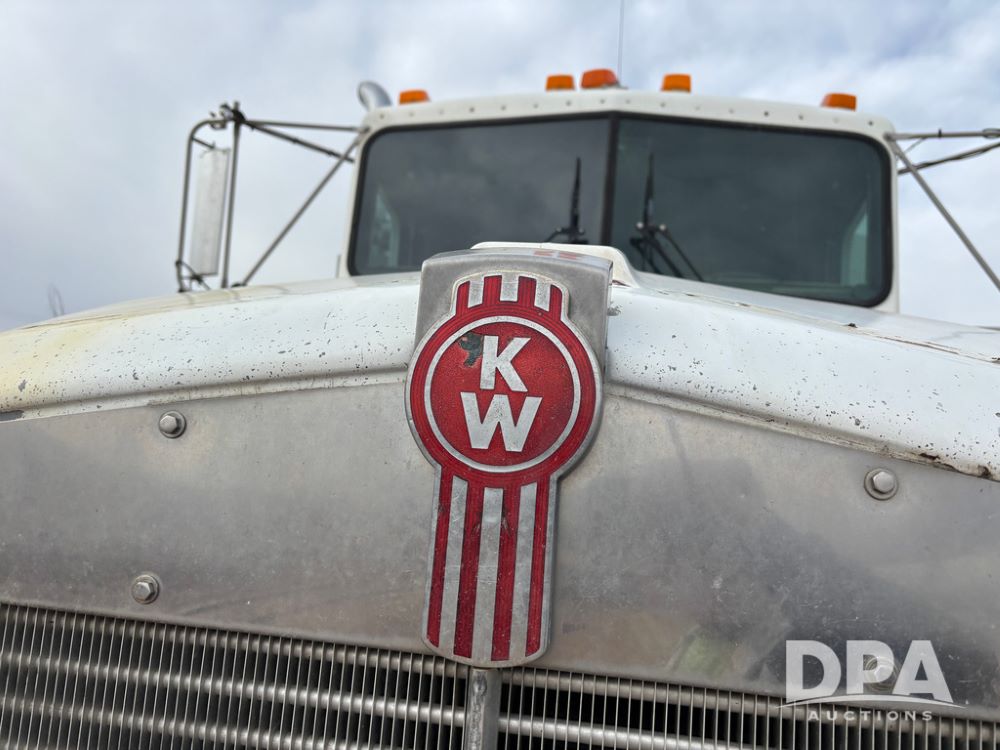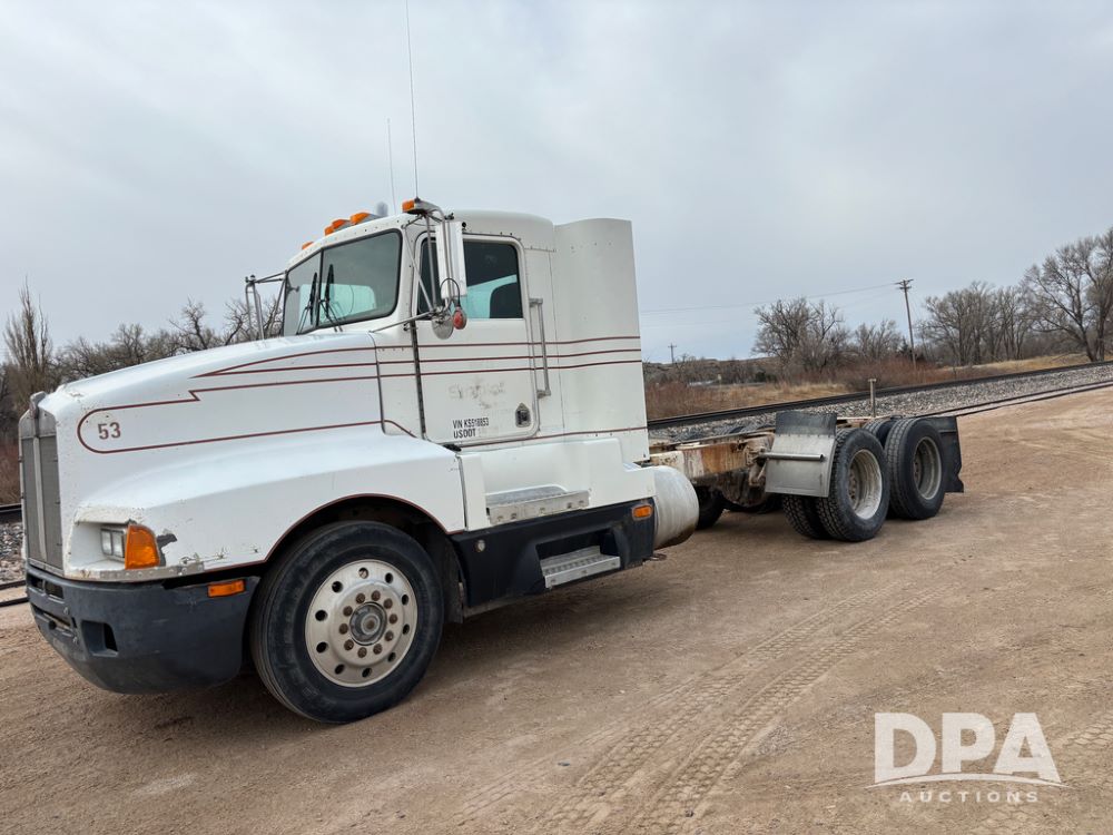 1989 Kenworth T600 Truck (DR13142 Unit 438146), C/C truck, Cat 3406 single turbo diesel engine, 13 speed transmission, tandem axle full crew, 232'' WB, day cab, dual aluminum fuel tanks, rear pintle hitch, engine brake, cab heat/air conditioning, 24.5 tires, all aluminum wheels, odometer reads 780,426 miles.
