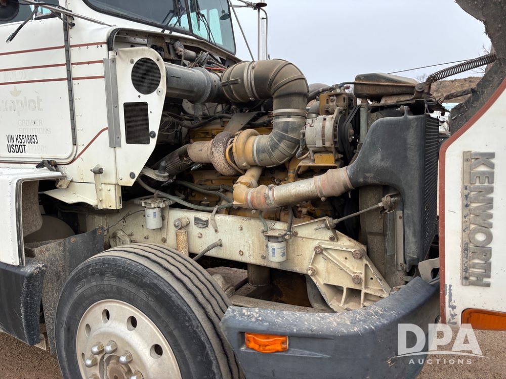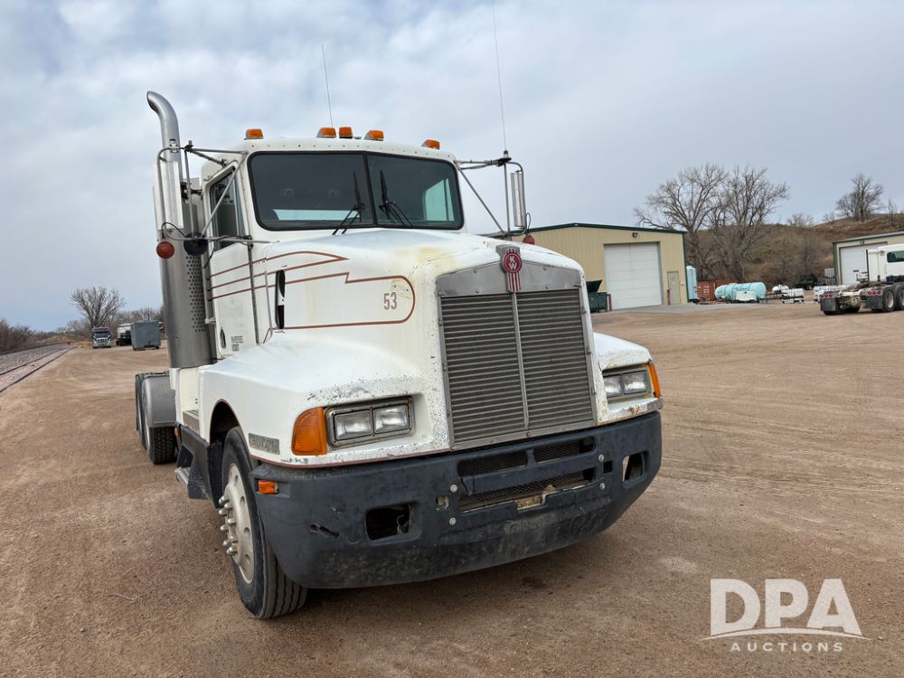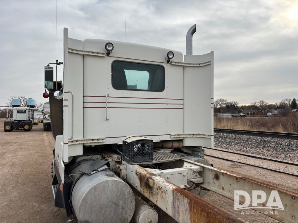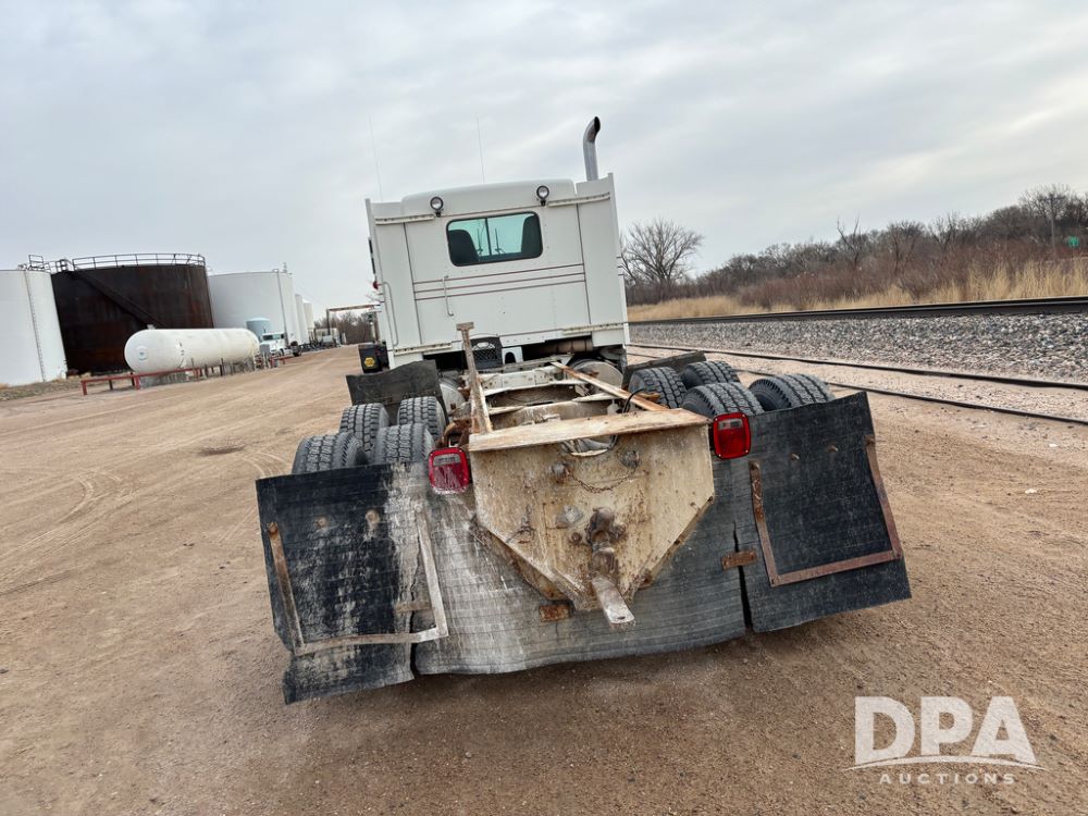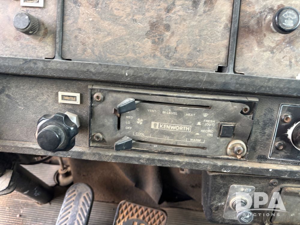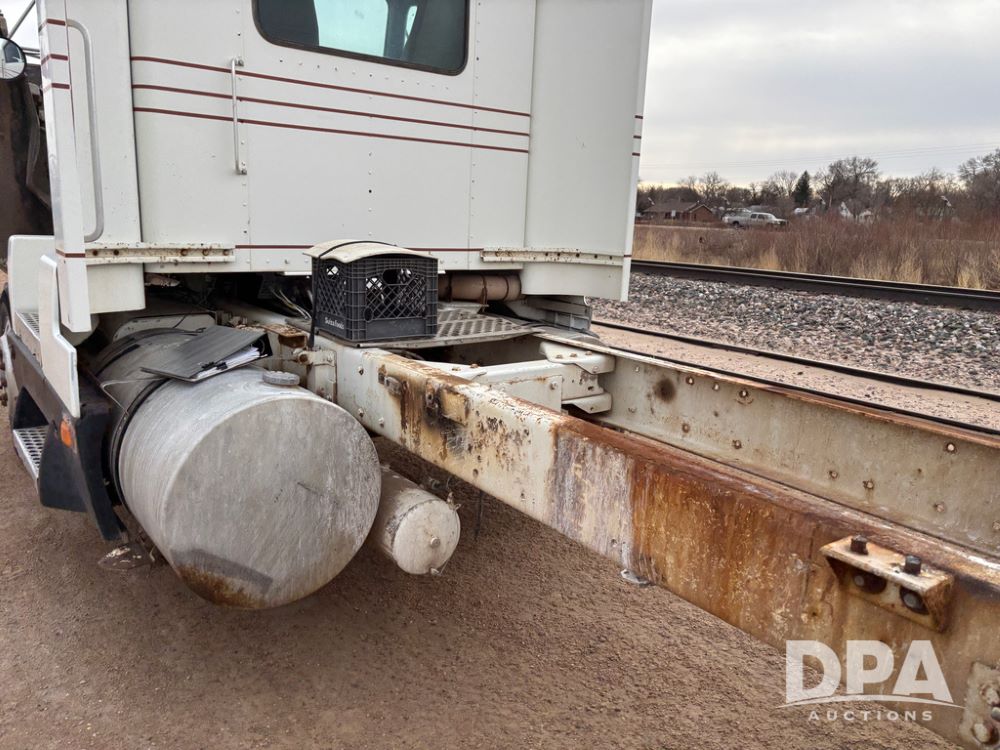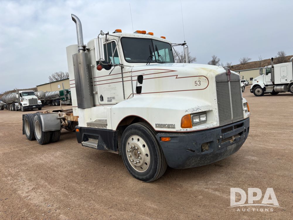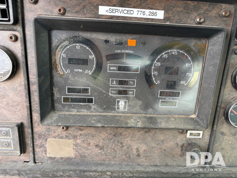 1989 Kenworth T600 Truck (DR13142 Unit 438146), C/C truck, Cat 3406 single turbo diesel engine, 13 speed transmission, tandem axle full crew, 232'' WB, day cab, dual aluminum fuel tanks, rear pintle hitch, engine brake, cab heat/air conditioning, 24.5 tires, all aluminum wheels, odometer reads 780,426 miles.